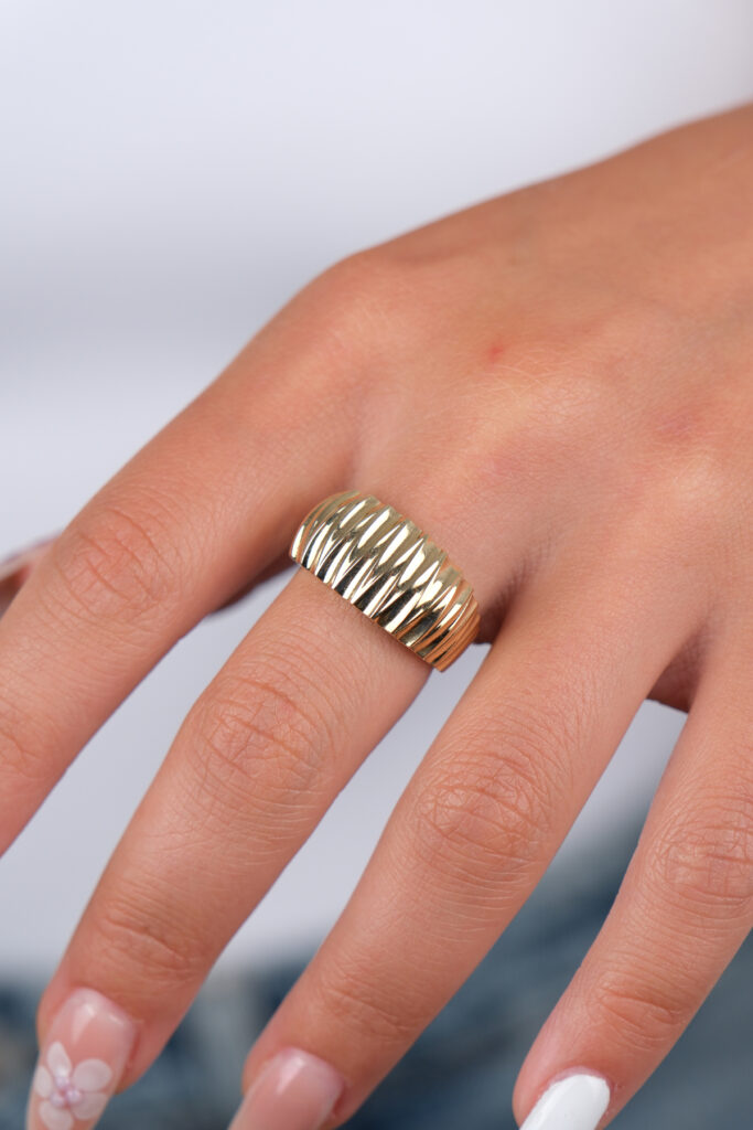 14 Ayar Altın kalın Çizgili Yüzük 809