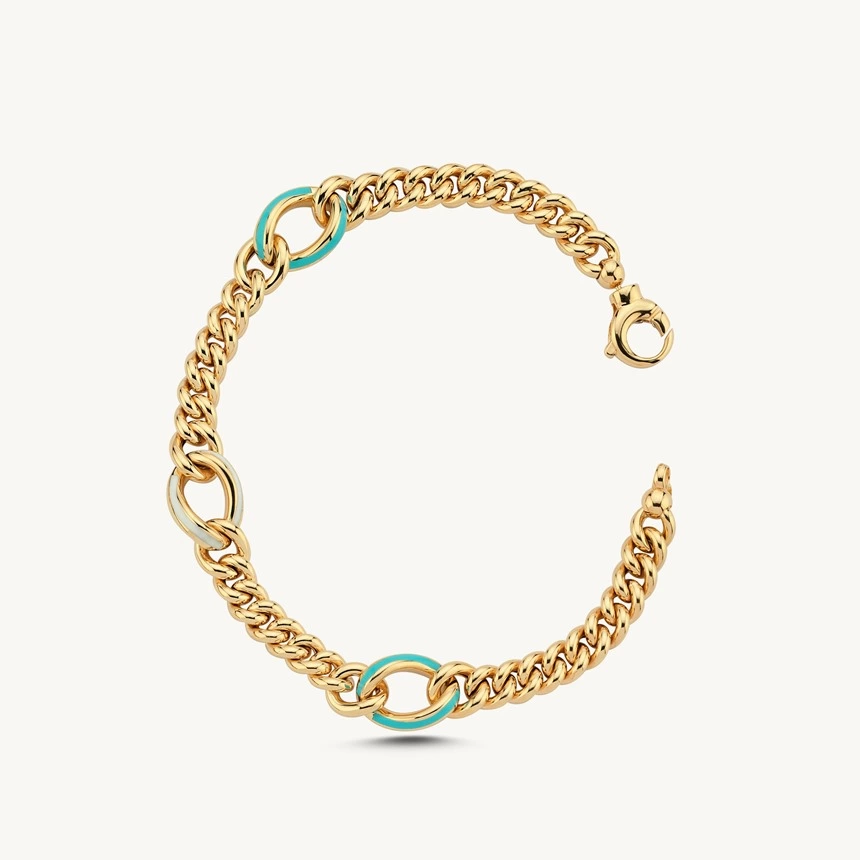 14 Ayar Altın Cetaş Mavi Mineli Zincir Bileklik 423