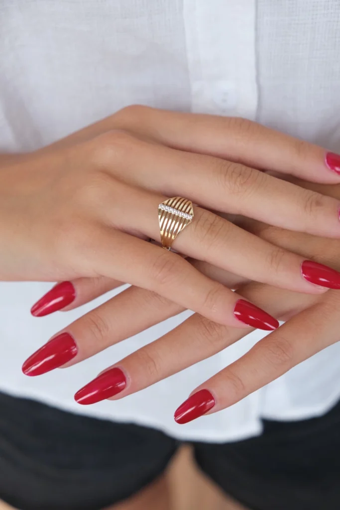 14 Ayar Altın Sıralı Çizgi Yüzük 201