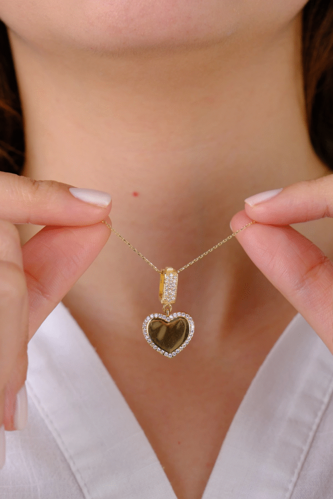 14 Ayar Altın Taşlı Kalpli Charm 154