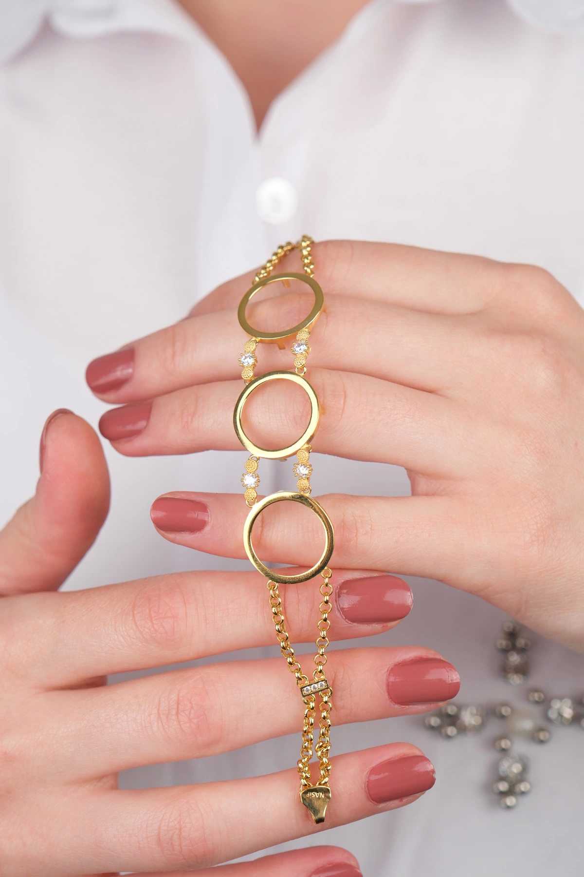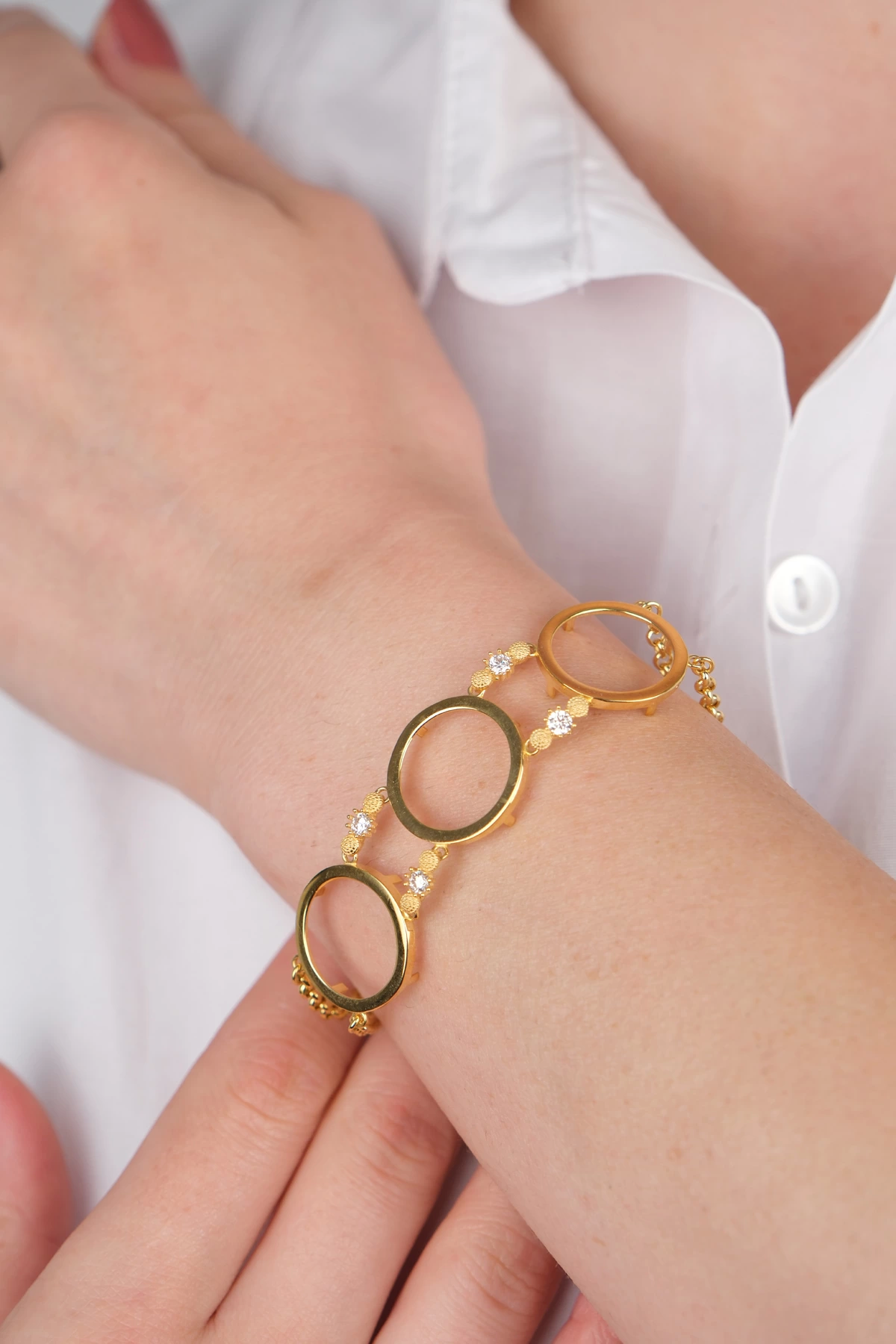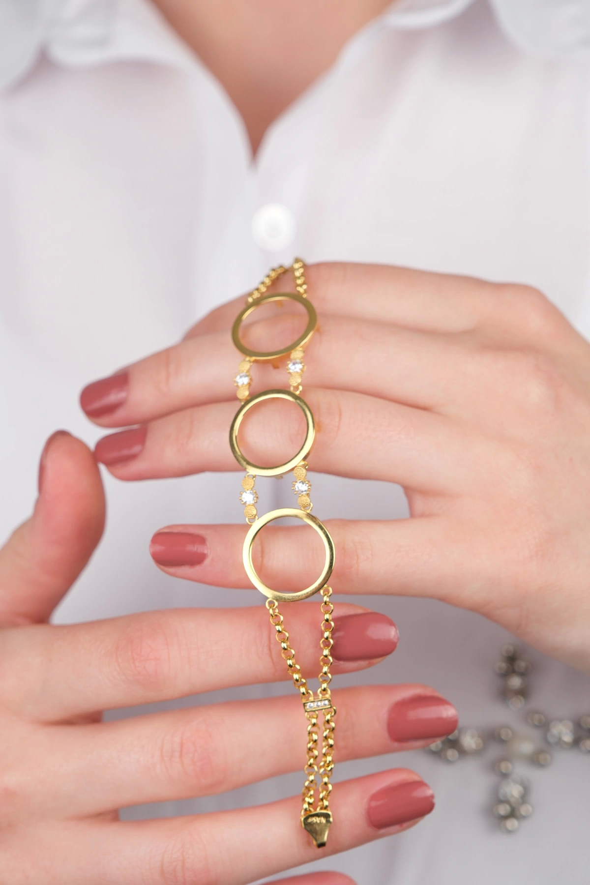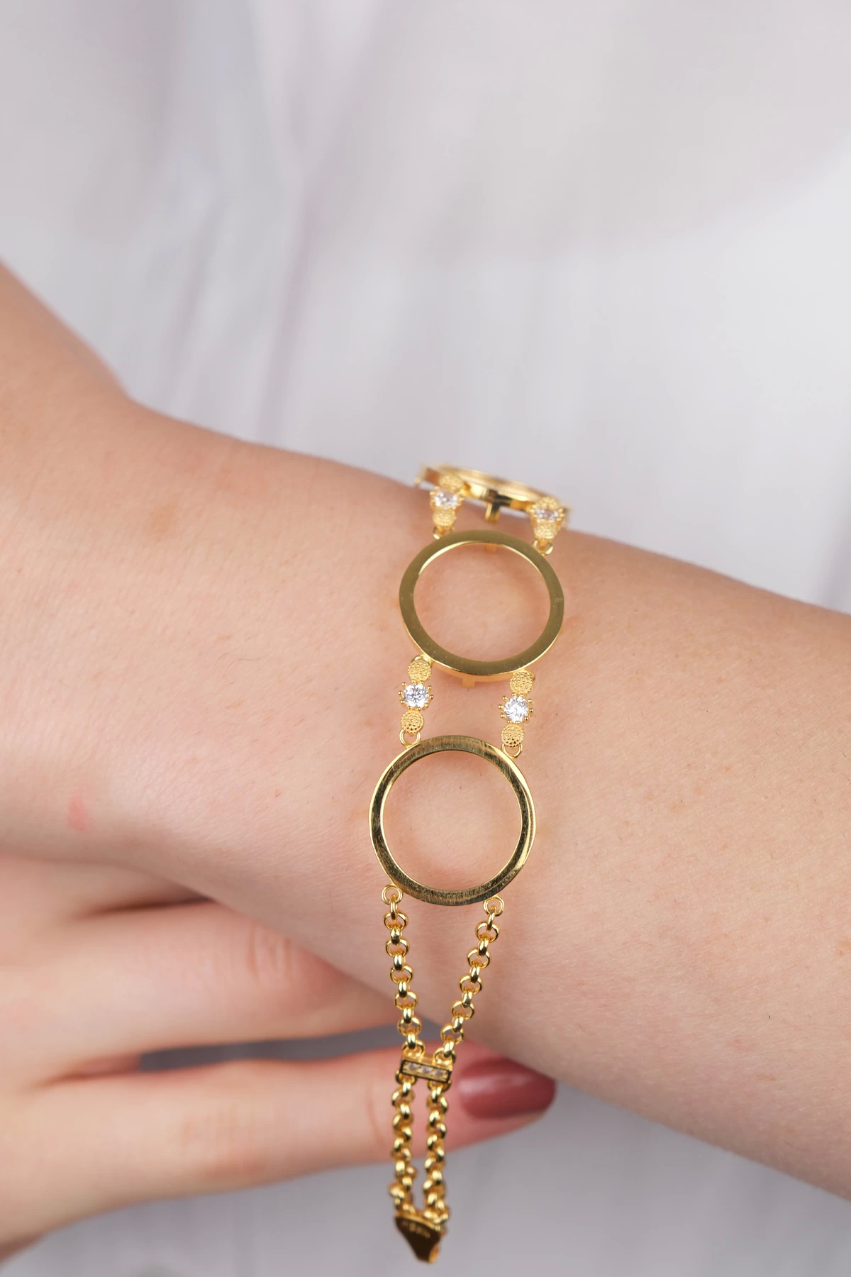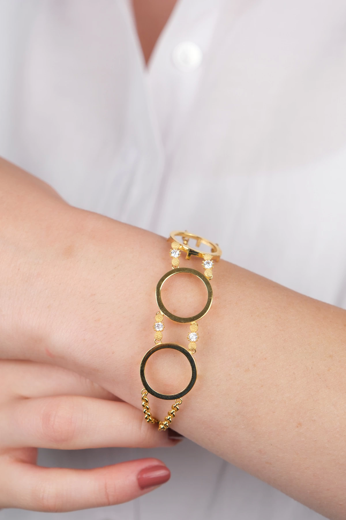 14 Ayar Altın Taşlı Kalpli İnce Gurmet Zincir Bileklik 808
