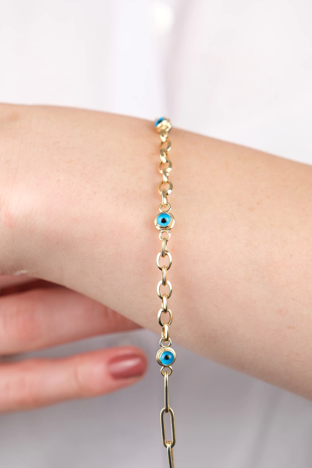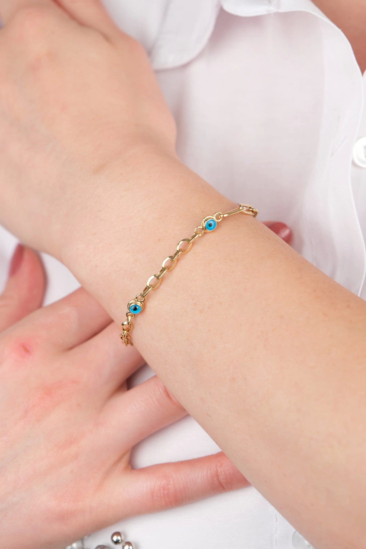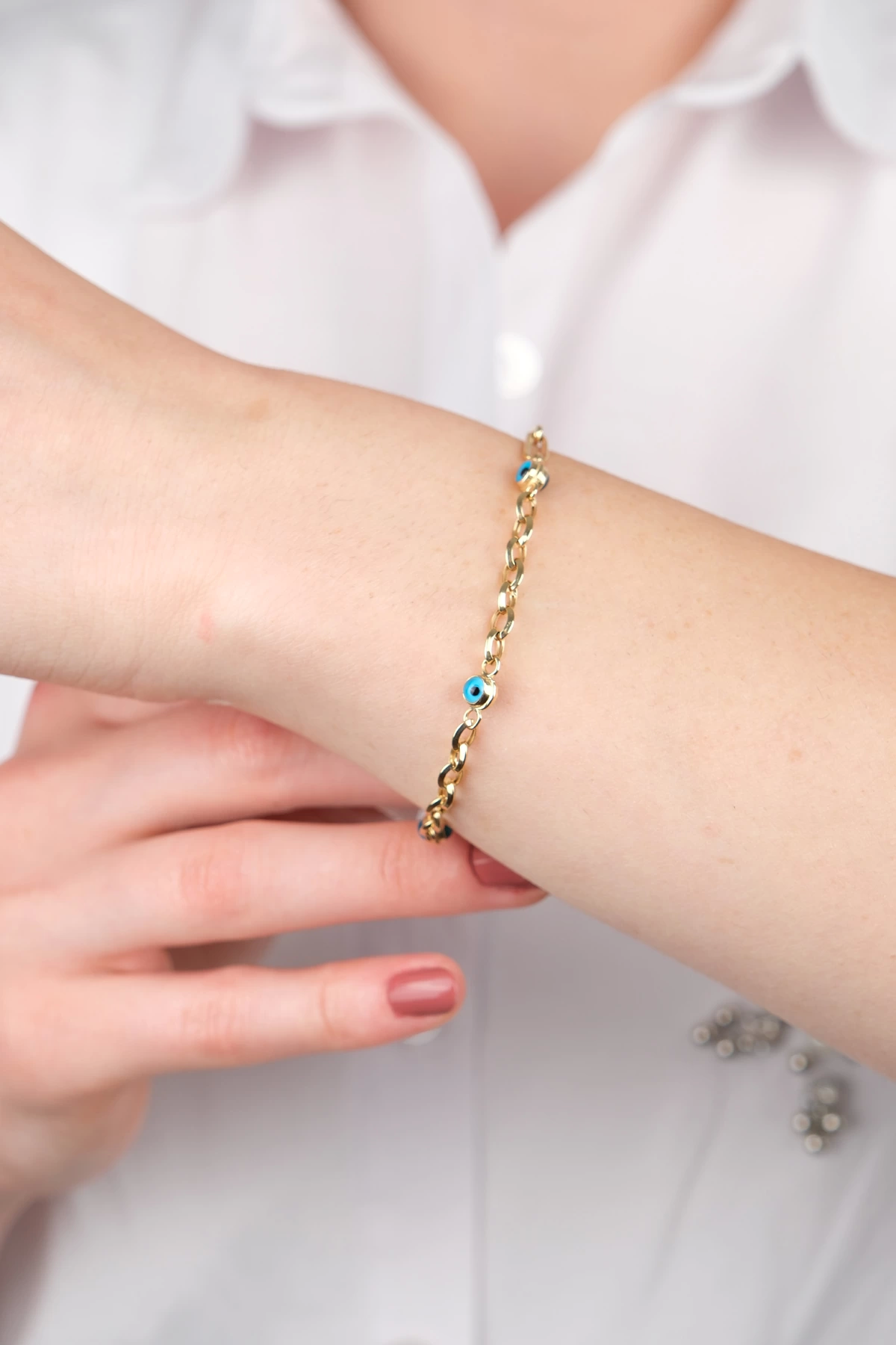 14 Ayar Altın Ataç Nazar Boncuklu Zincir Bileklik 475-1869