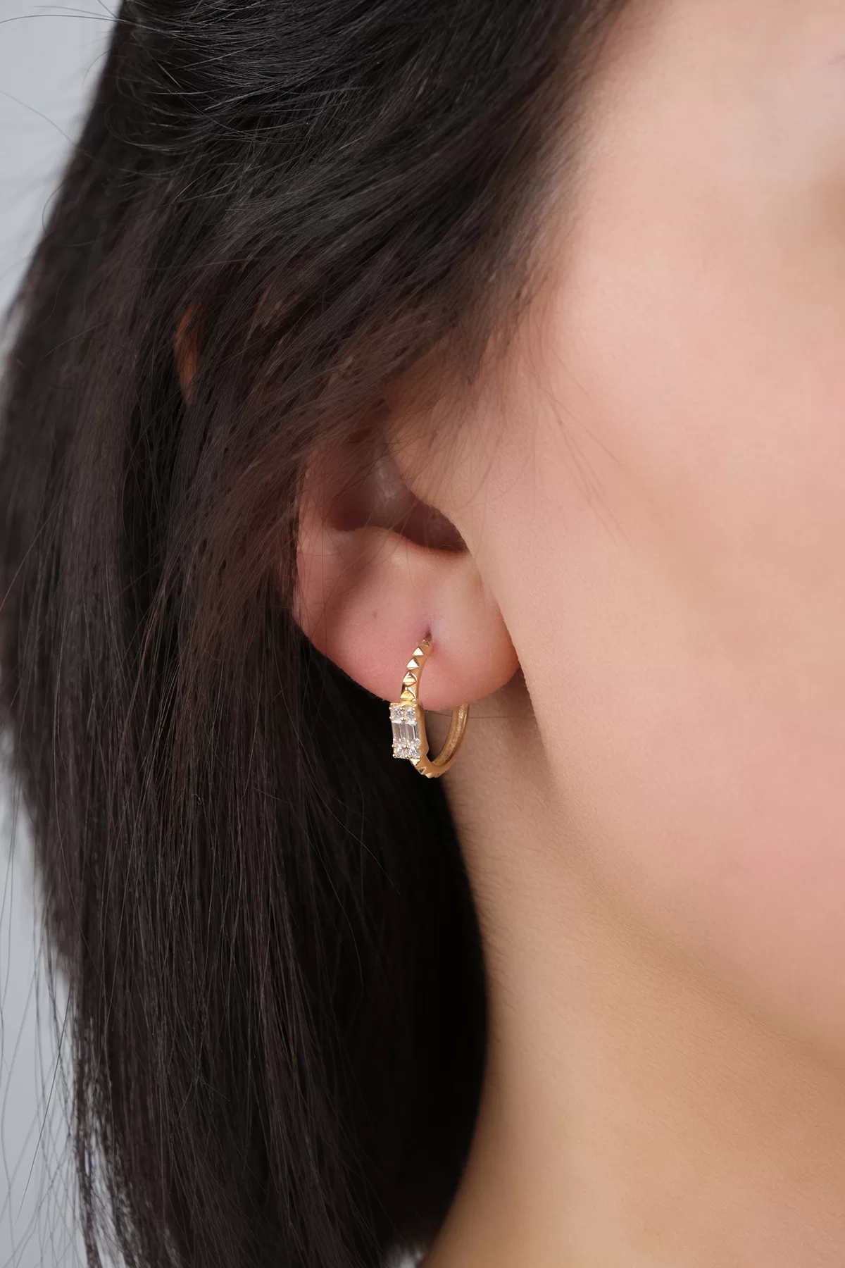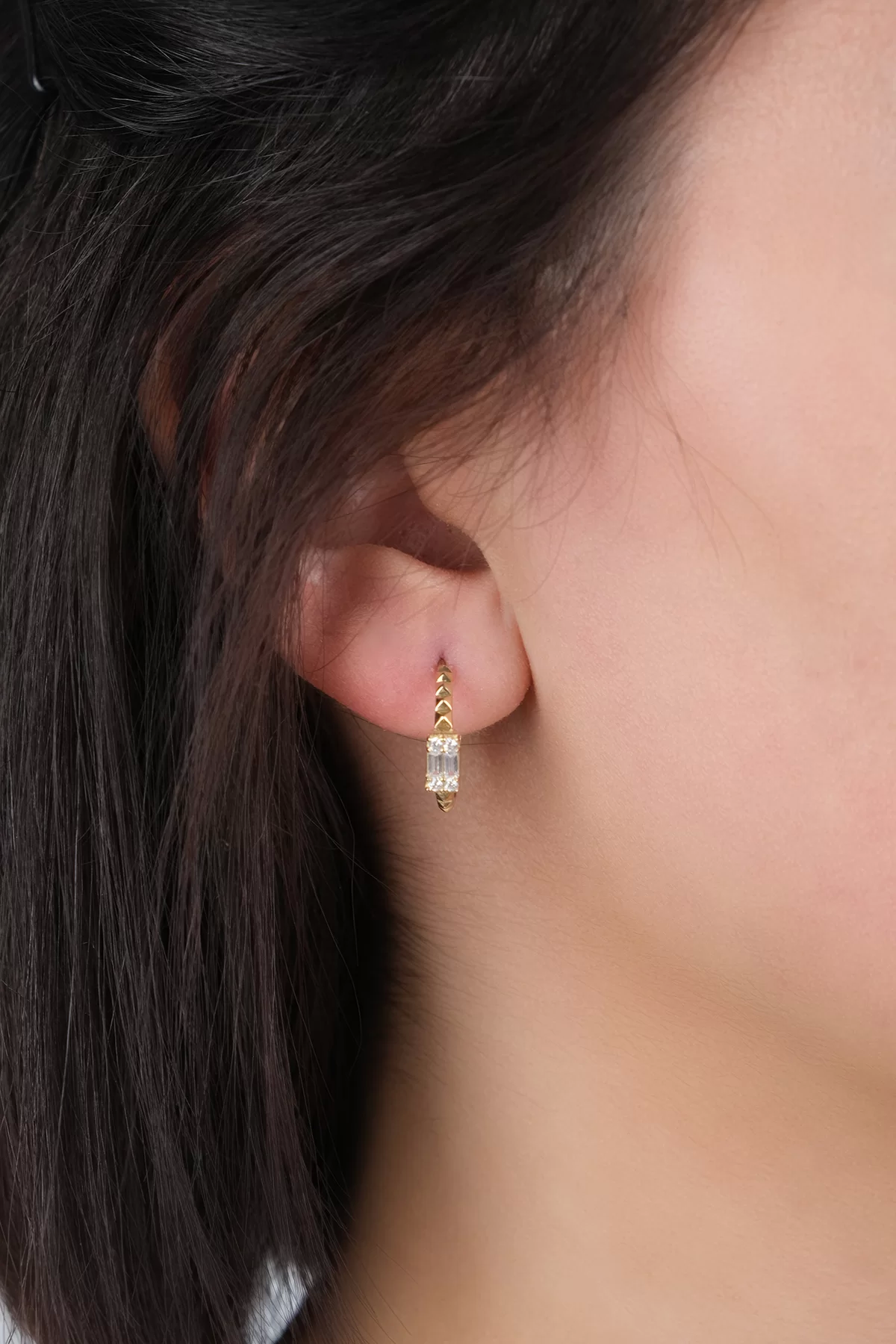 14 Ayar Altın Baget Taşlı Halka Küpe 75