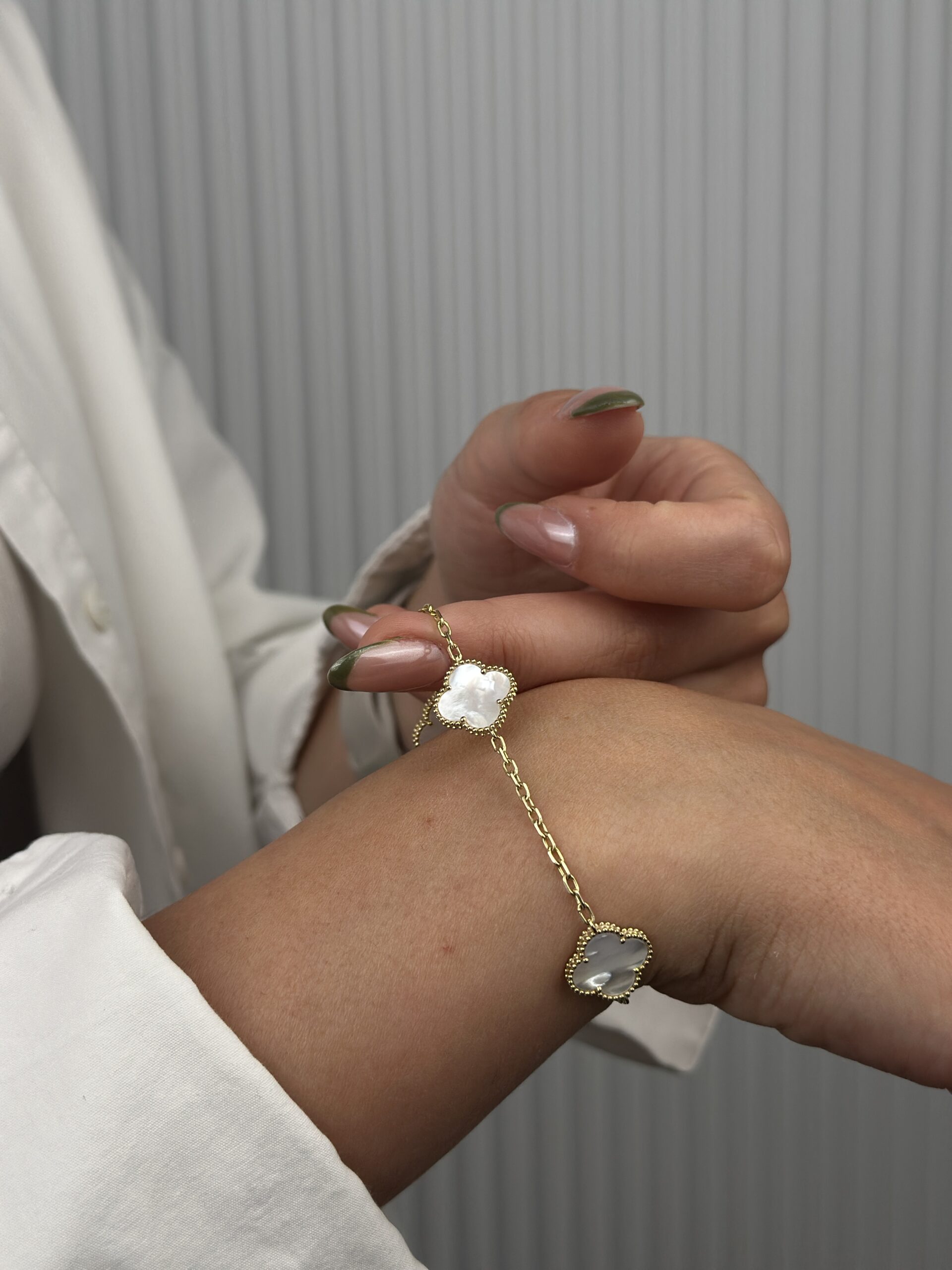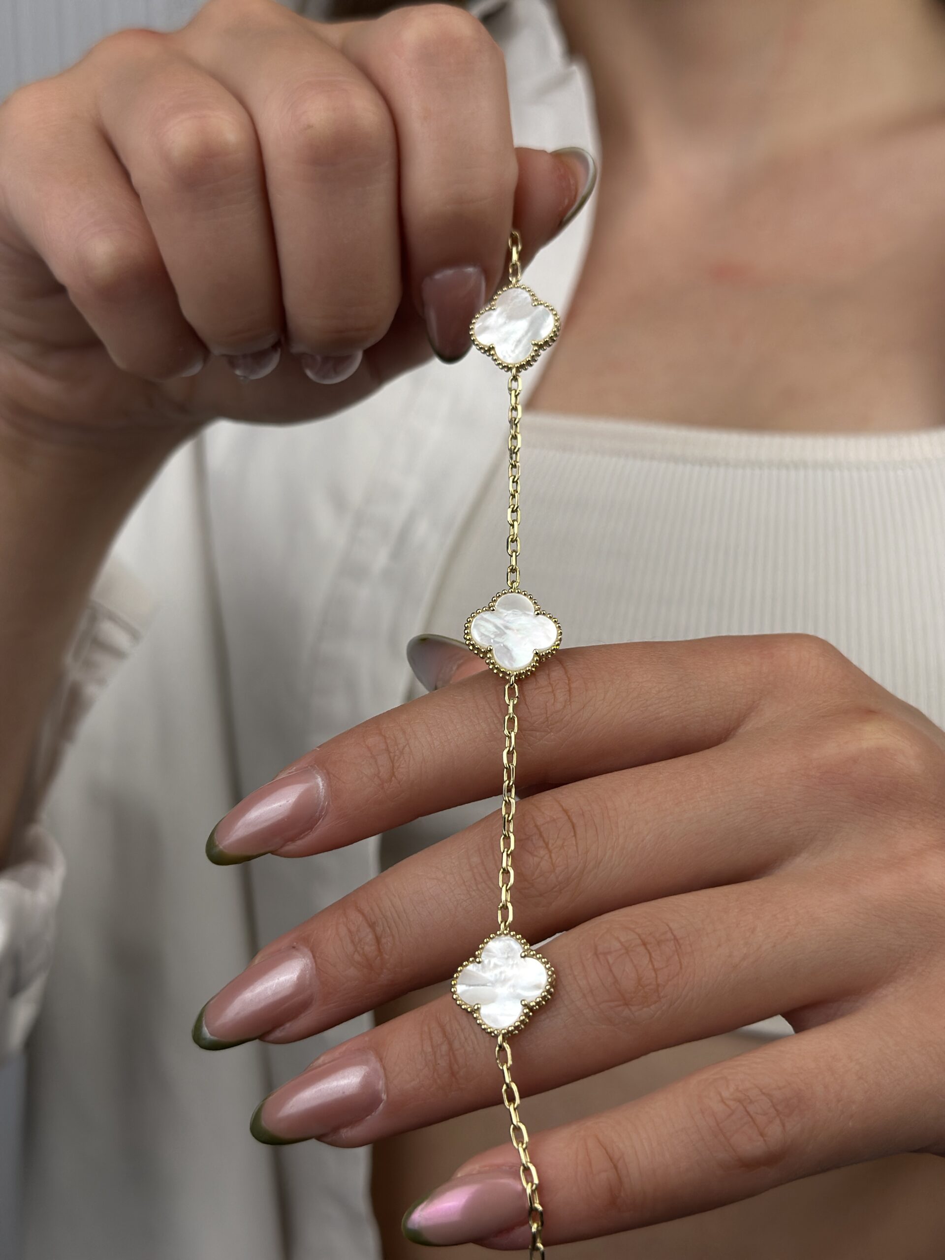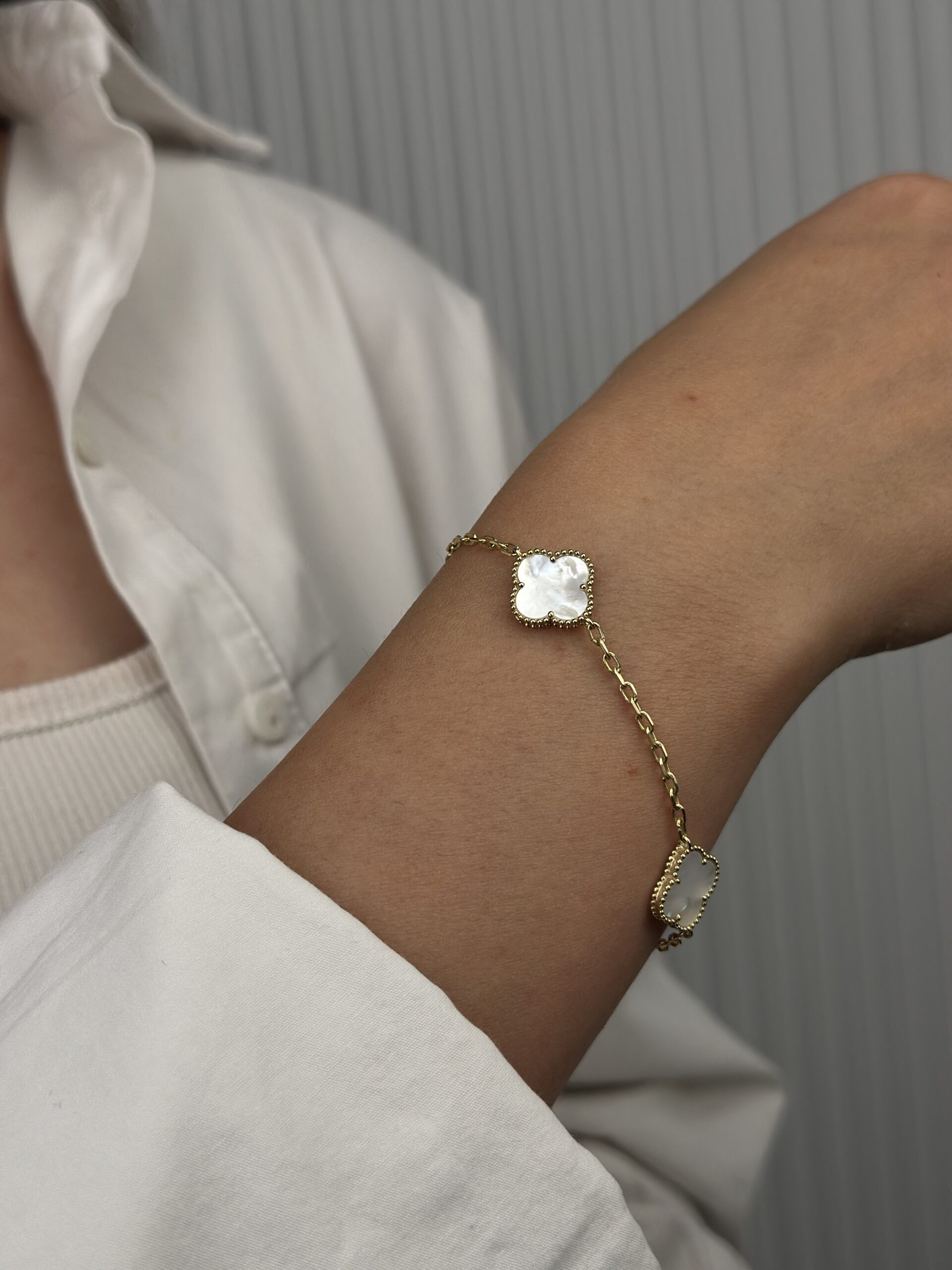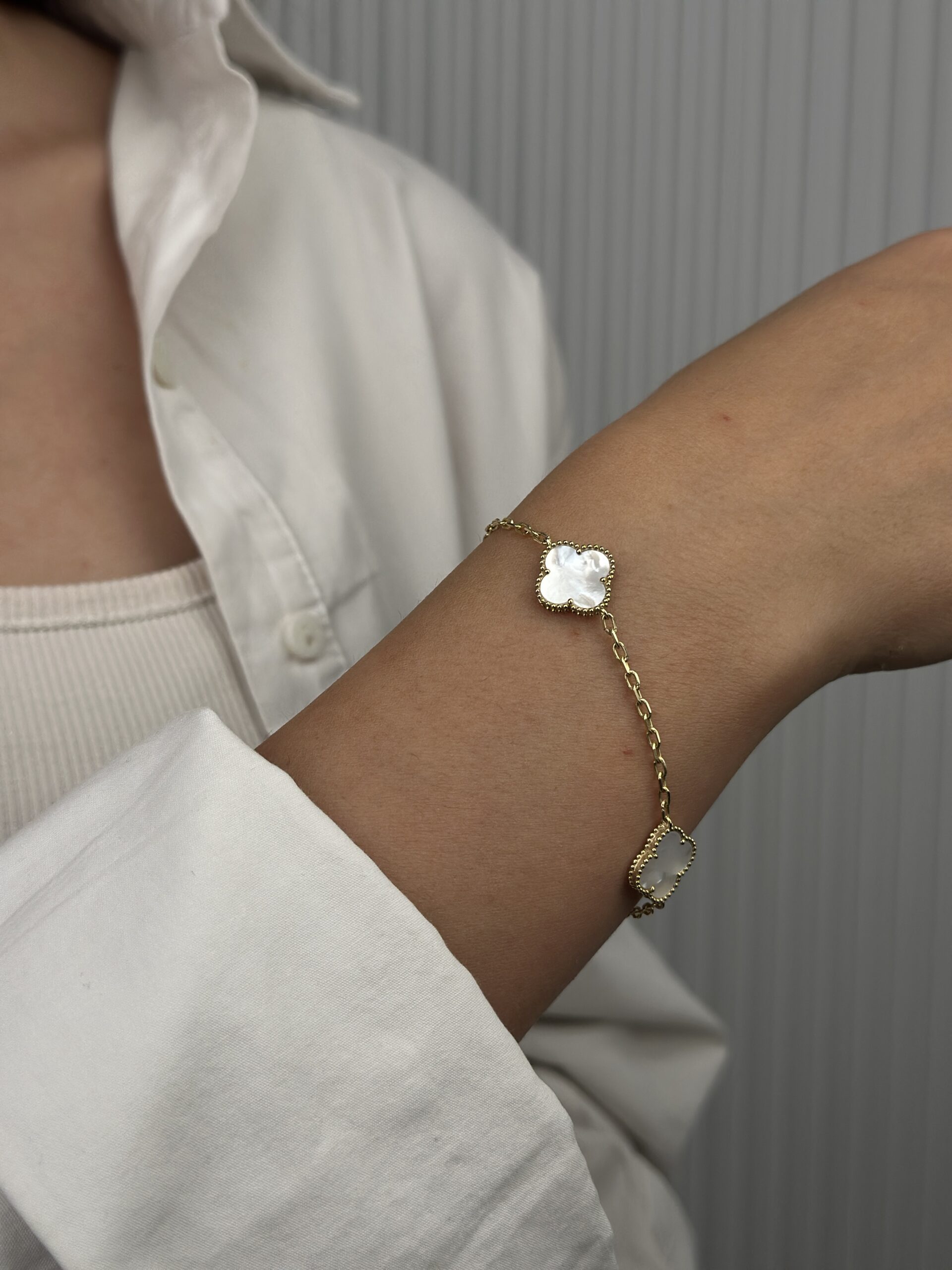 14 Ayar Altın Beyaz Yonca Bileklik 1046