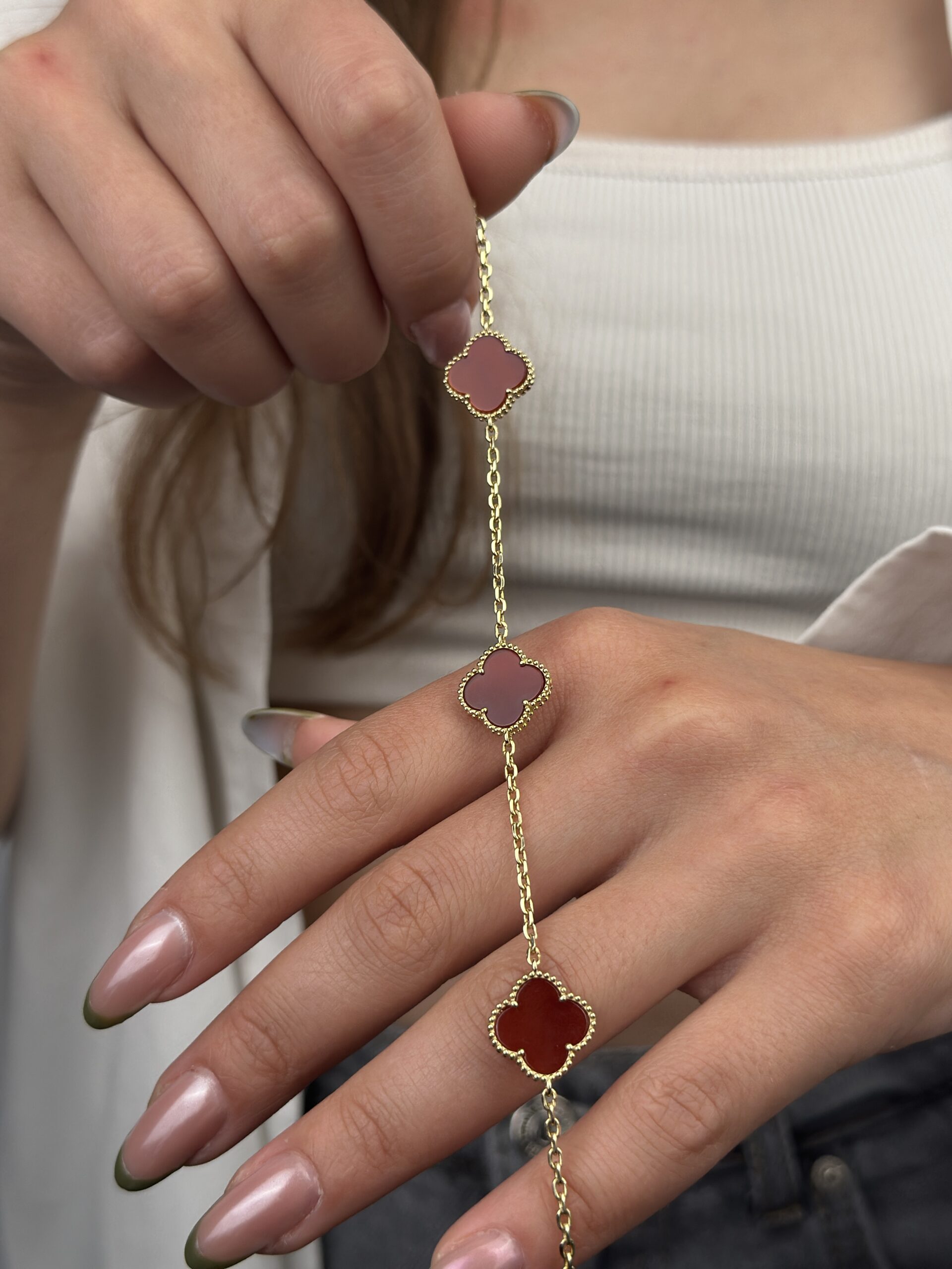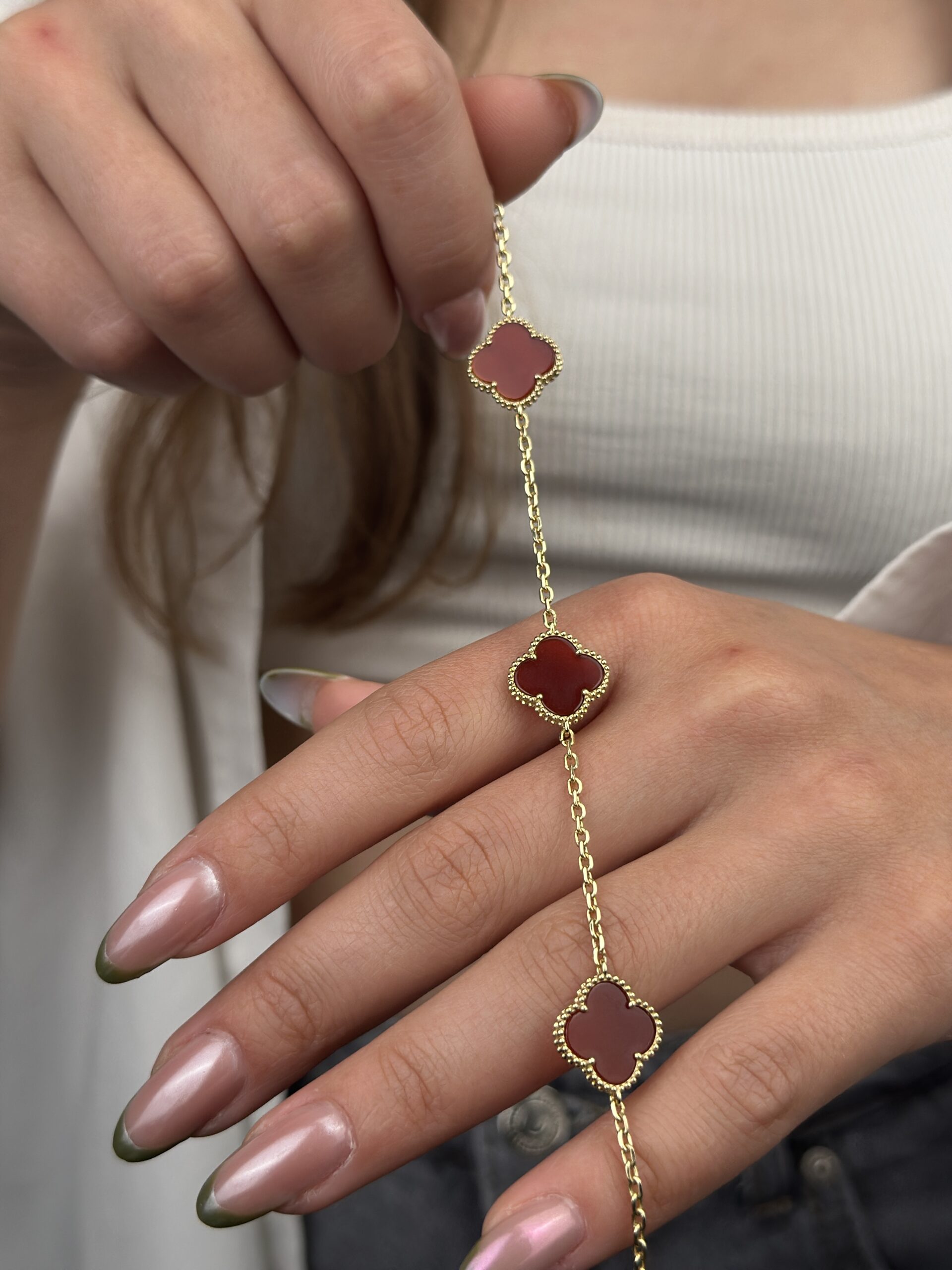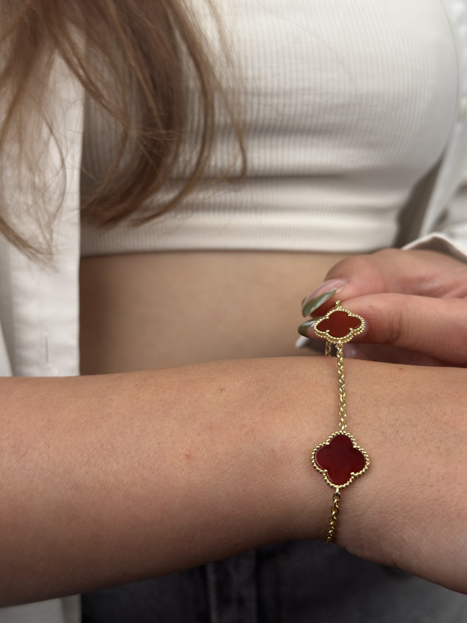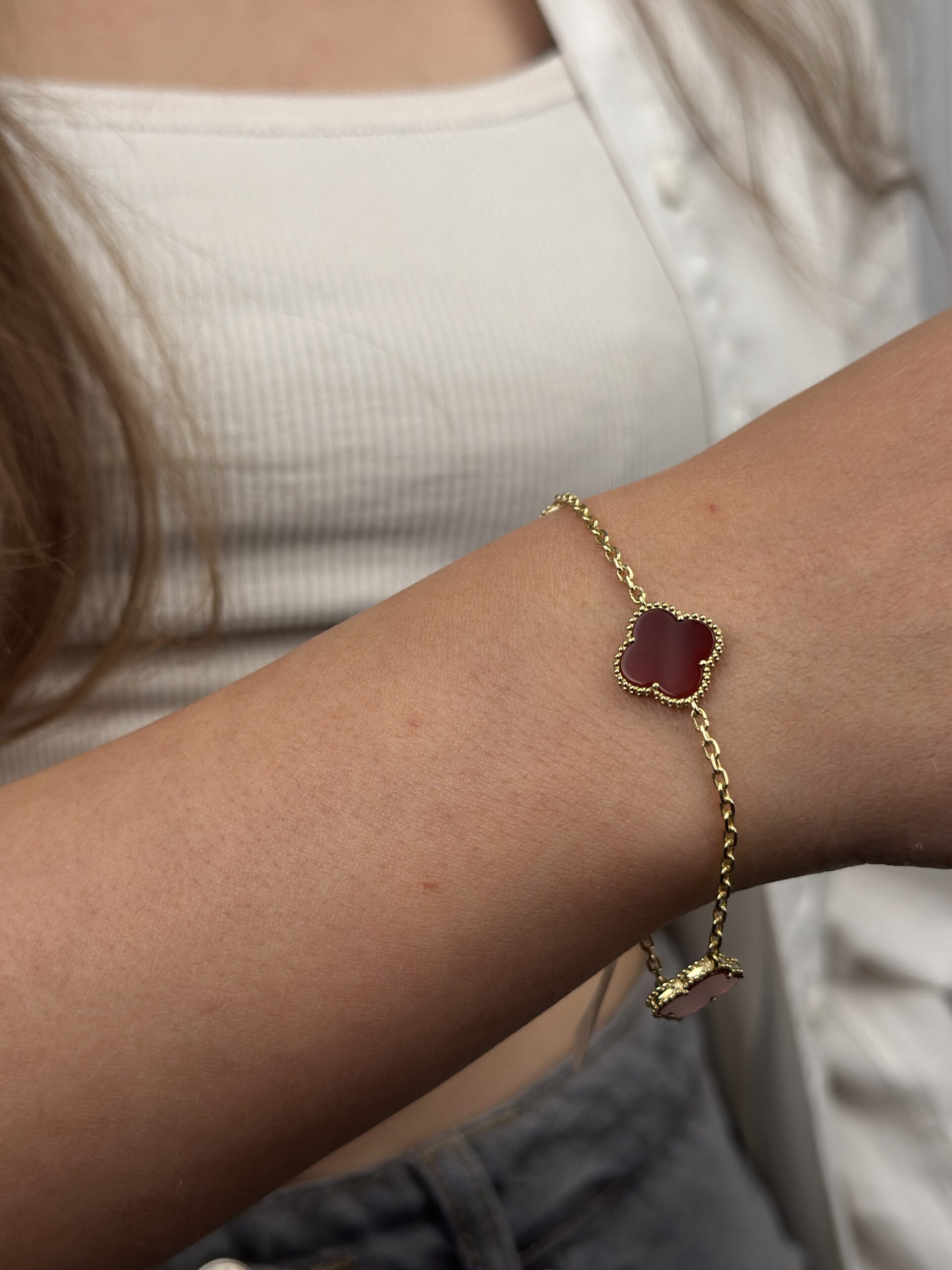14 Ayar Altın Bordo Yonca Bileklik 931