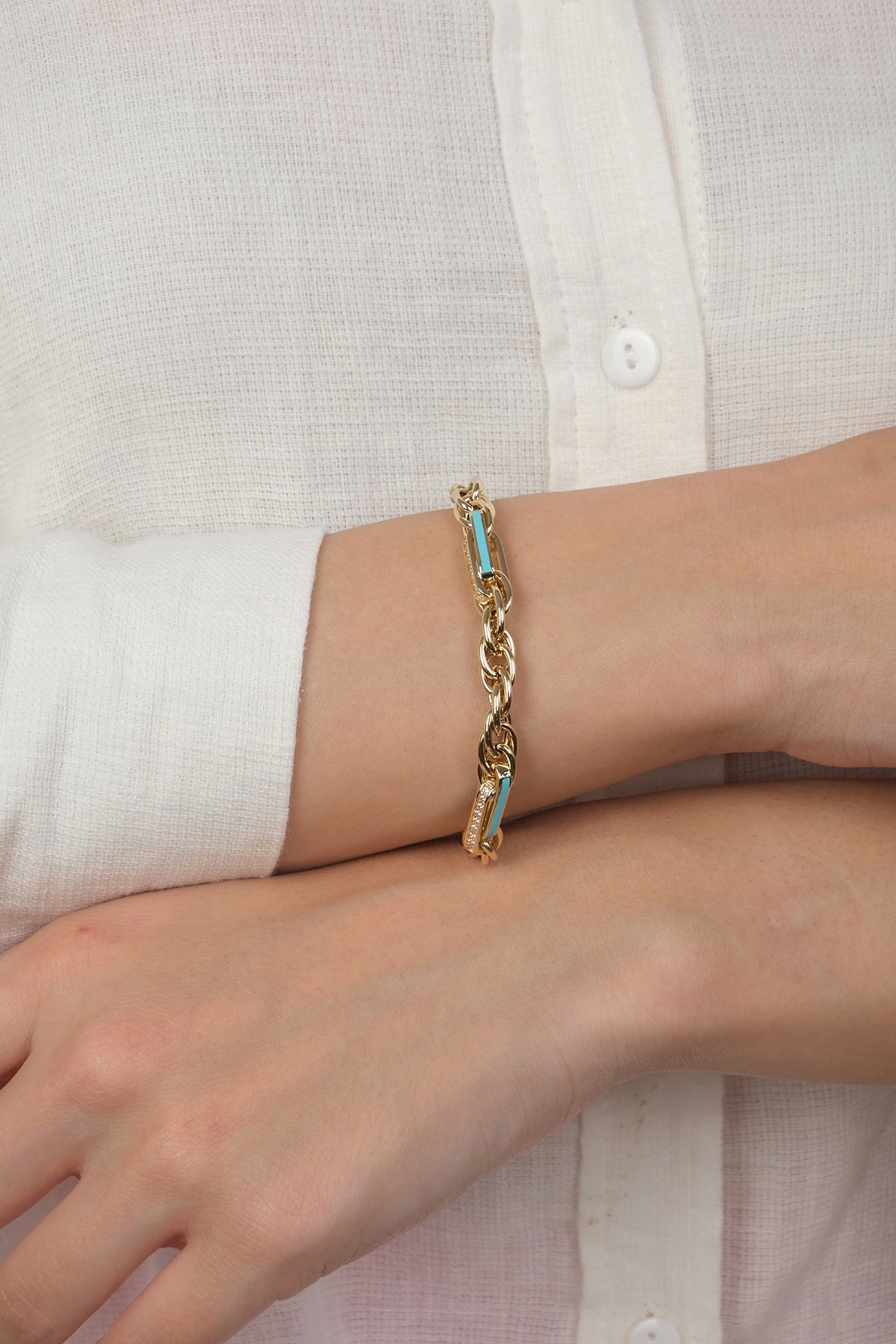 14 Ayar Altın Cetaş Mavi Mineli Zincir Bileklik 423