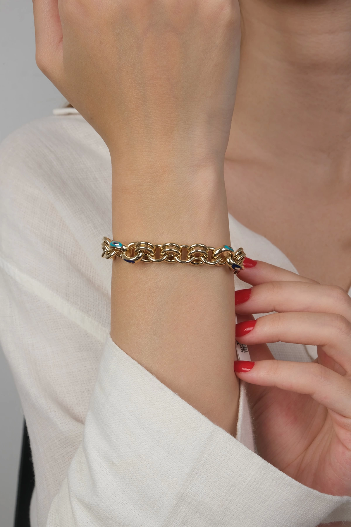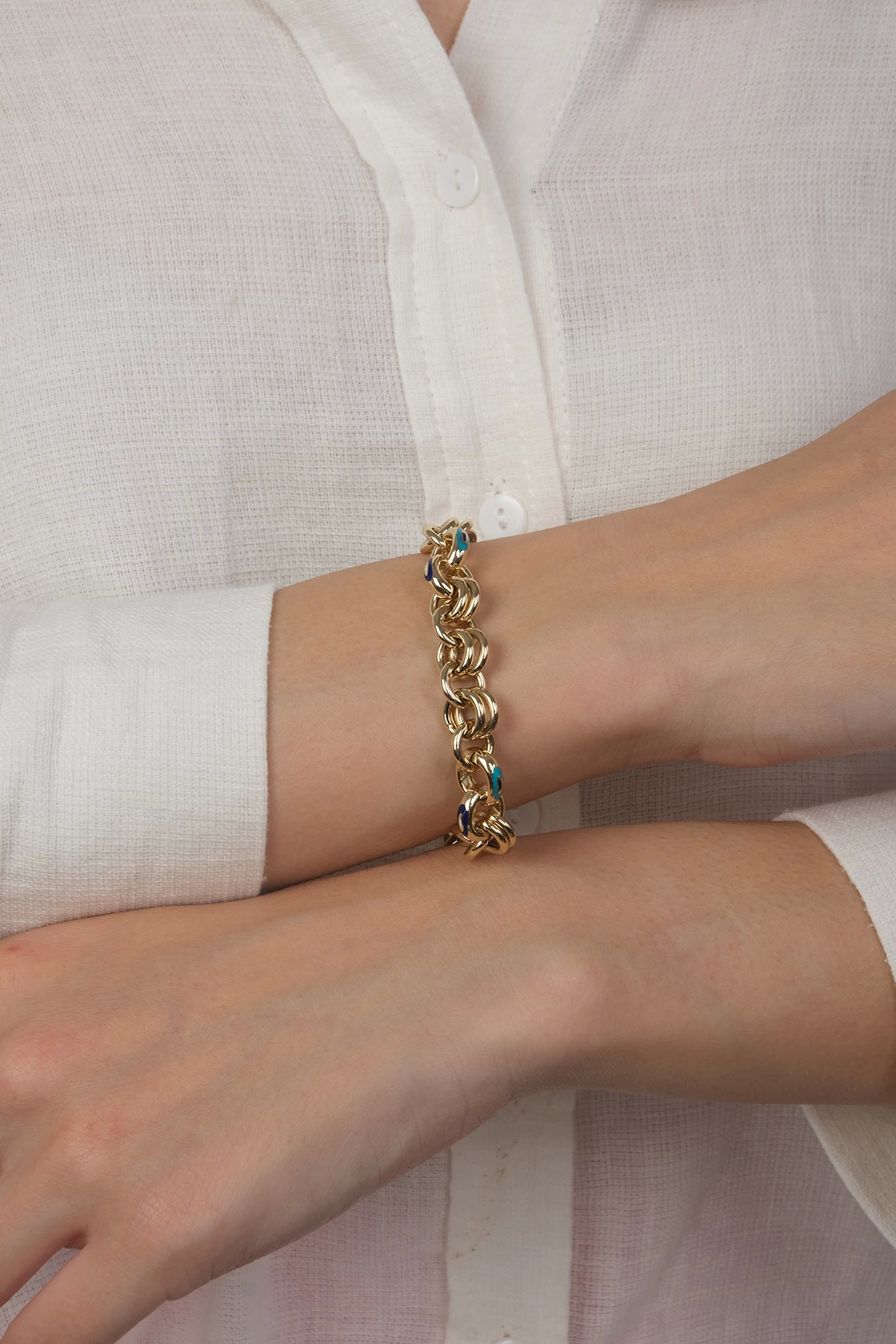14 Ayar Altın Cetaş Mavi Mineli Zincir Bileklik 423
