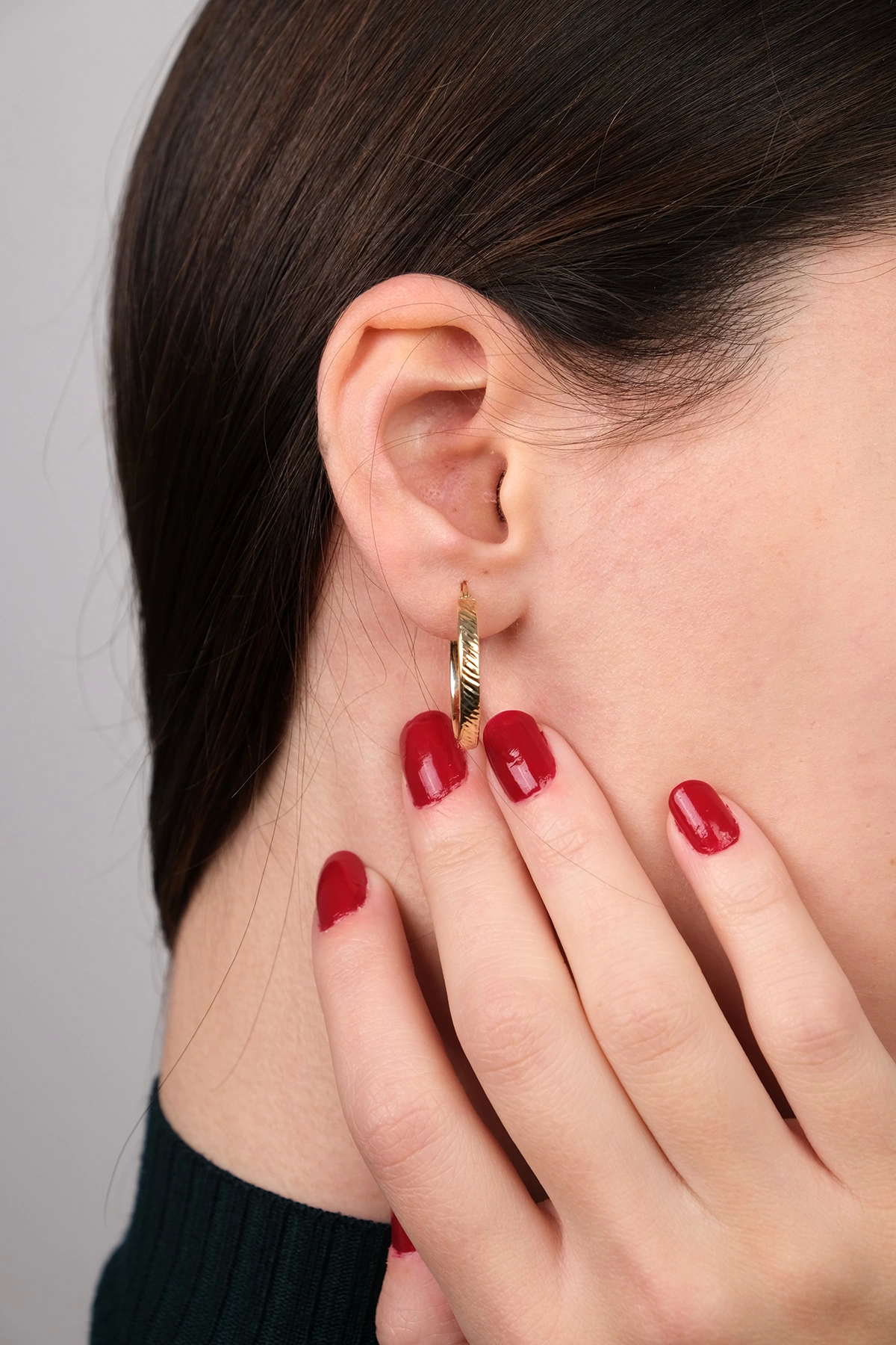 14 Ayar Altın Çizgi Desen Halka Küpe 319
