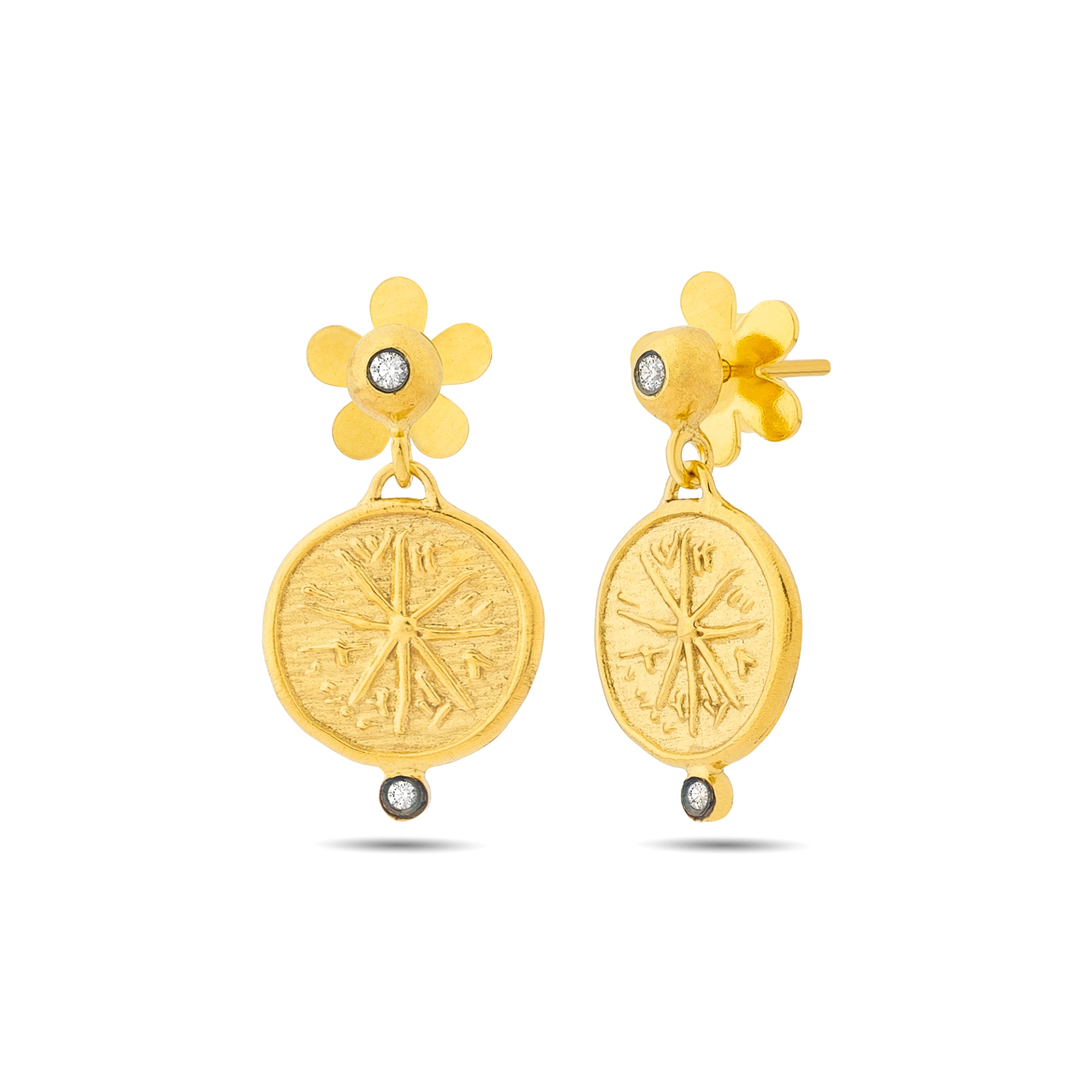 14 Ayar Altın Compas Küpe 1091