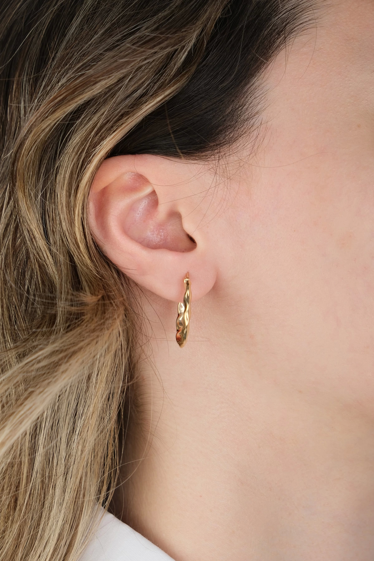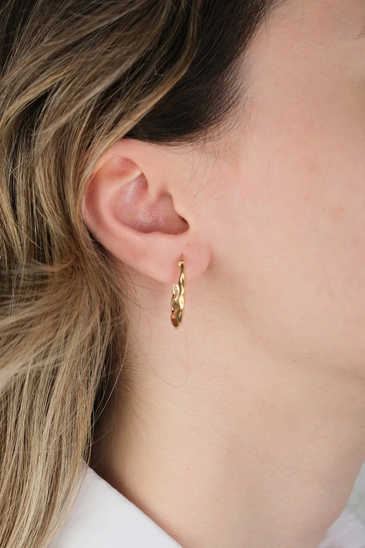 14 Ayar Altın Dalgalı Elips Küpe 469