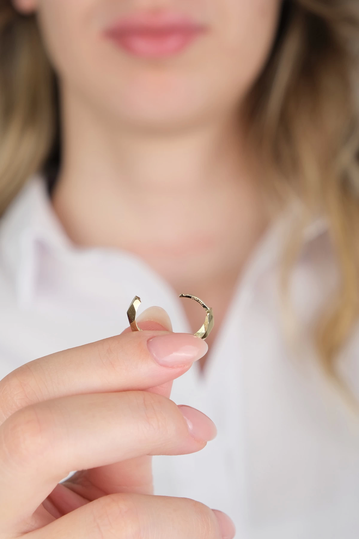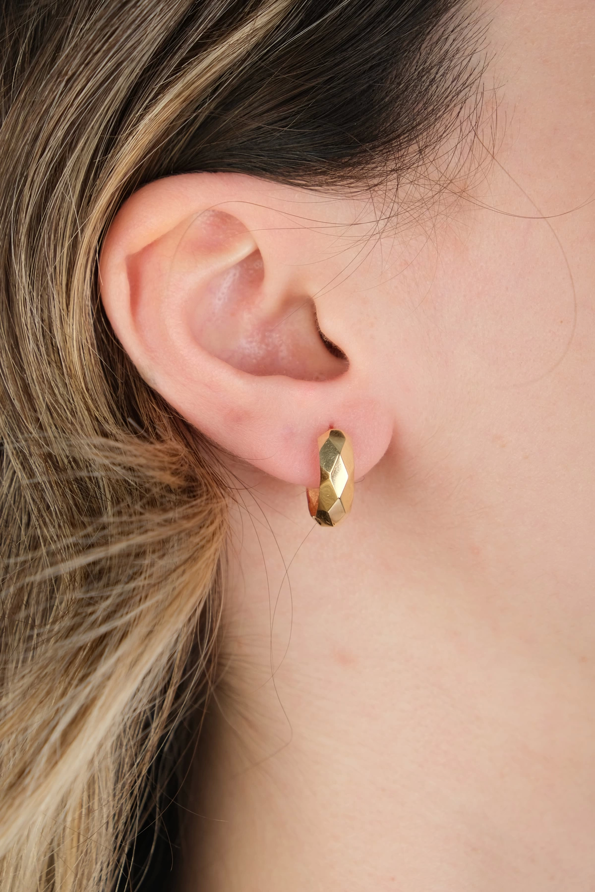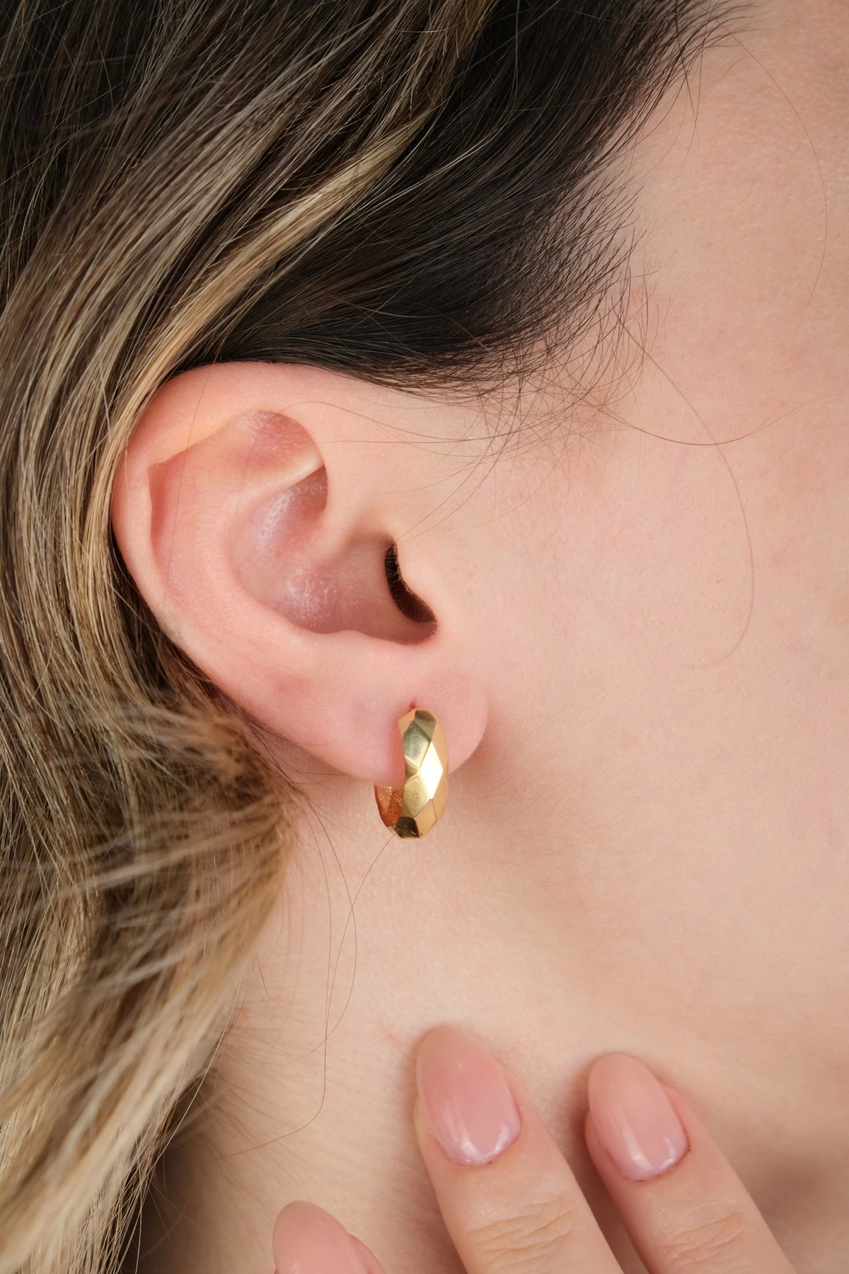 14 Ayar Altın Dörtgen Desen Halka Küpe 573