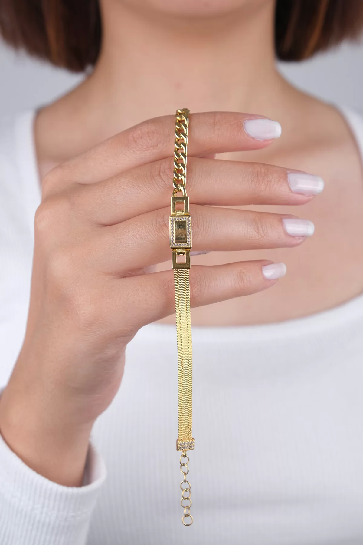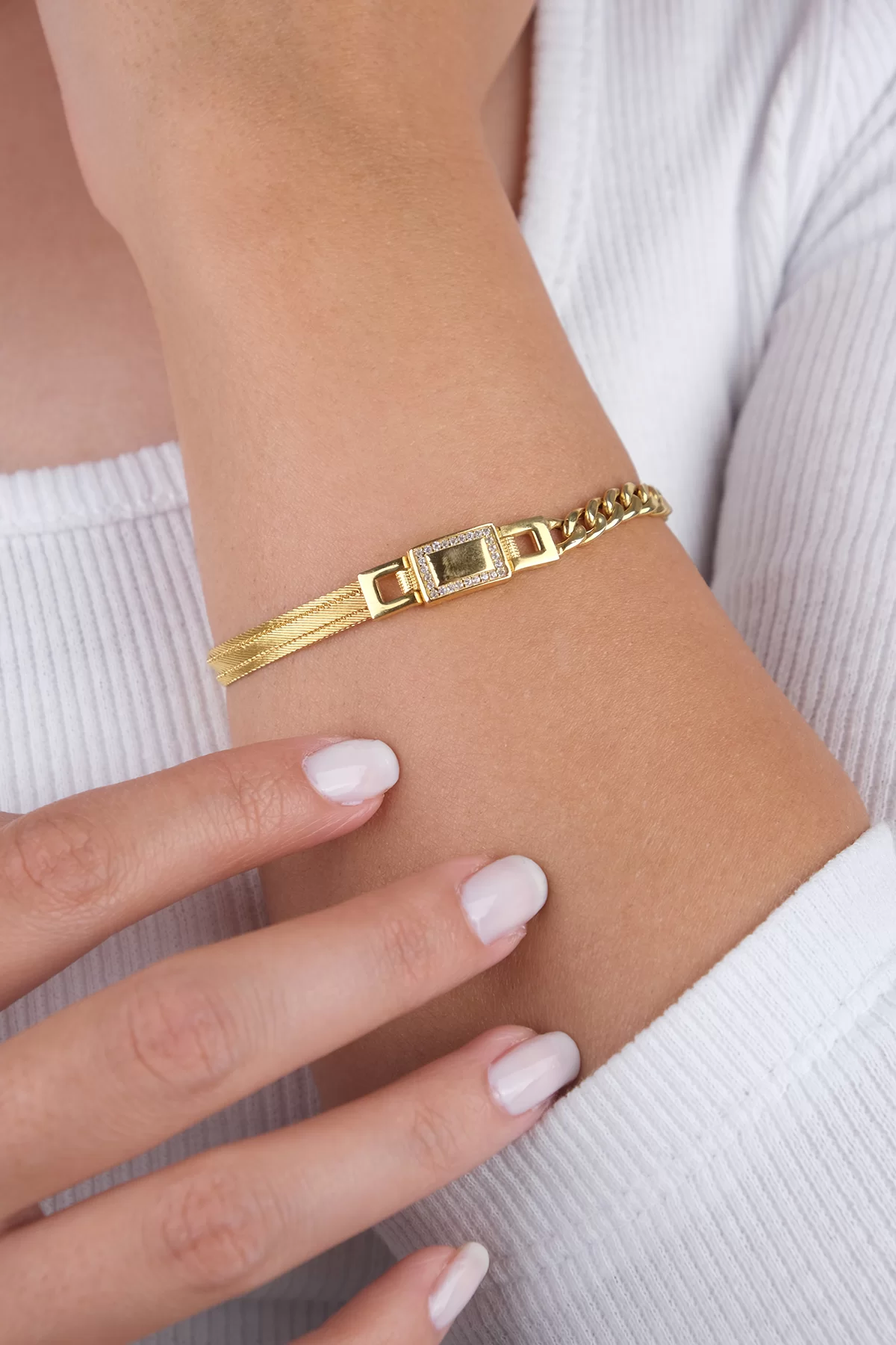 14 Ayar Altın Hasır Desenli Zincir Bileklik 82