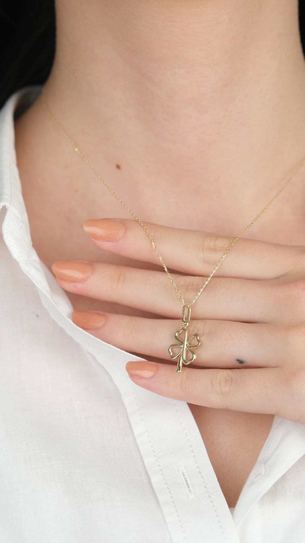 14 Ayar Altın İçi Boş Yonca Kolye Ucu 482