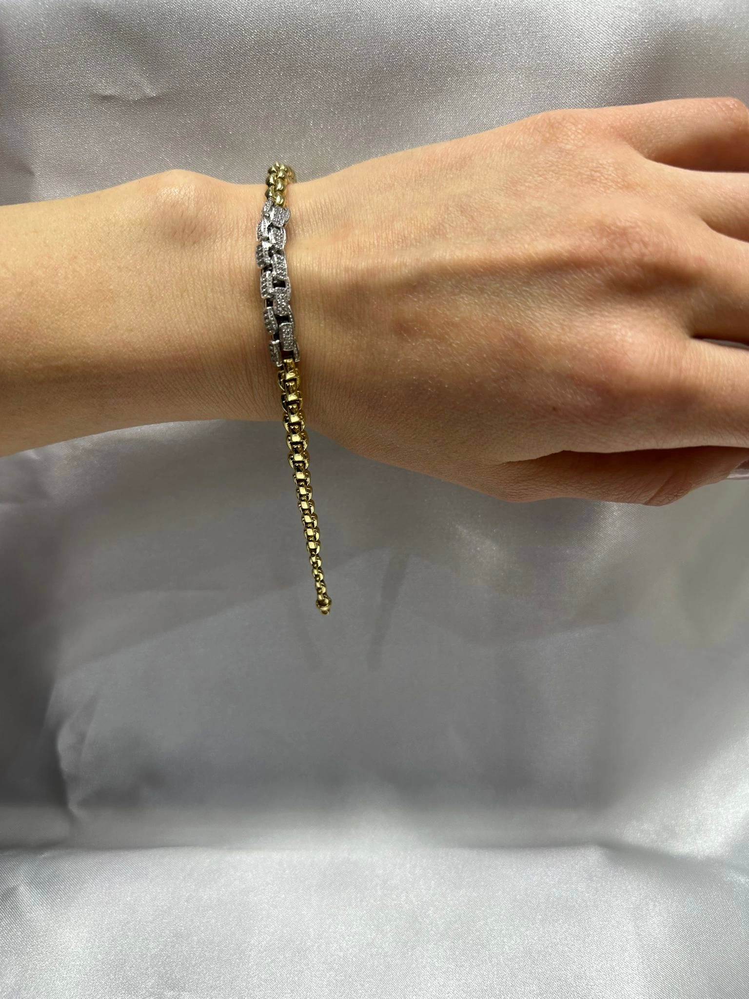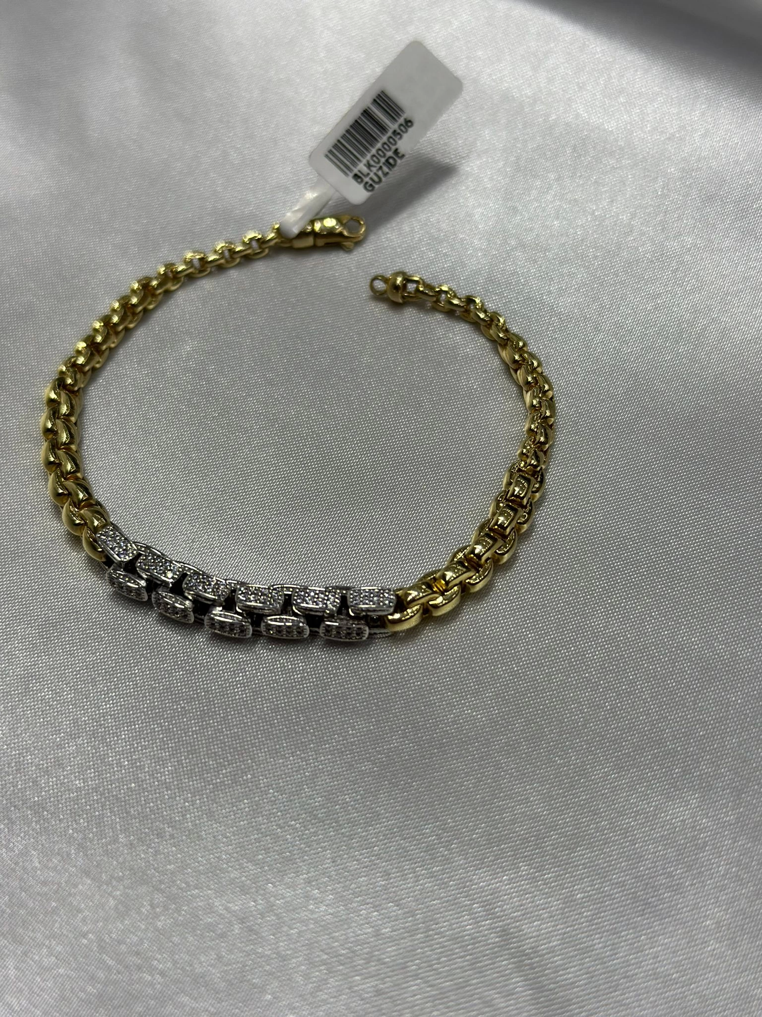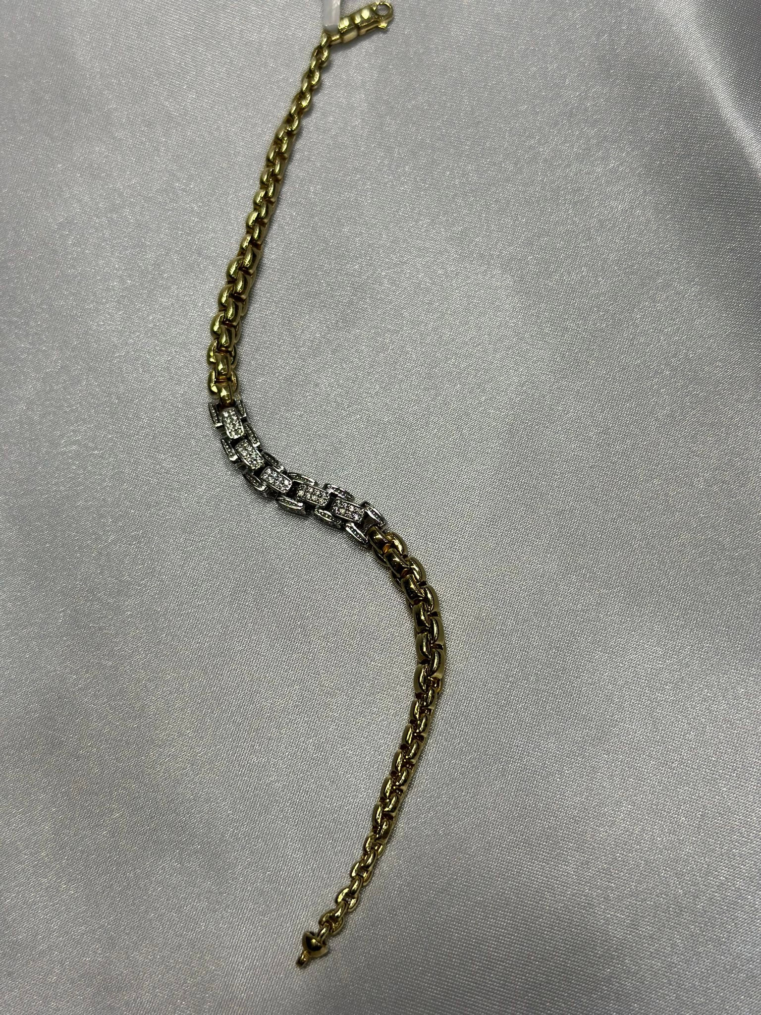 14 Ayar Altın İki Renk Taşlı Süzme Zincir Bileklik 506