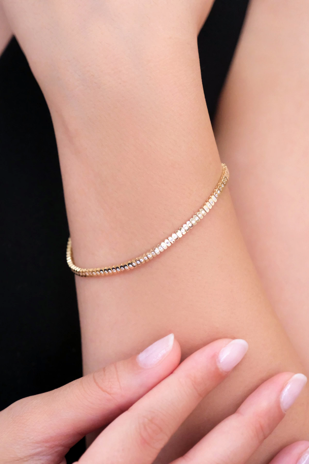 14 Ayar Altın İtalyan Zincir Sıra Taşlı Bileklik 716