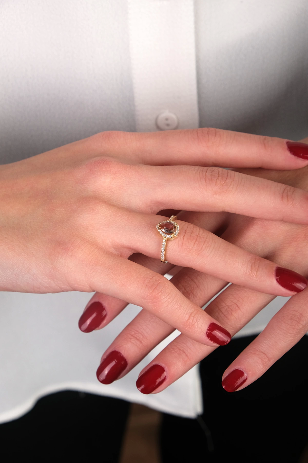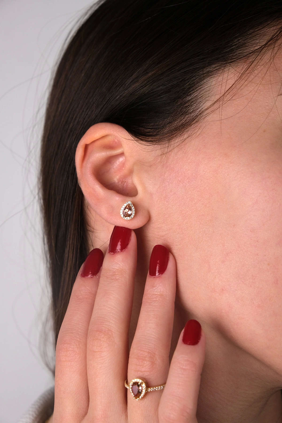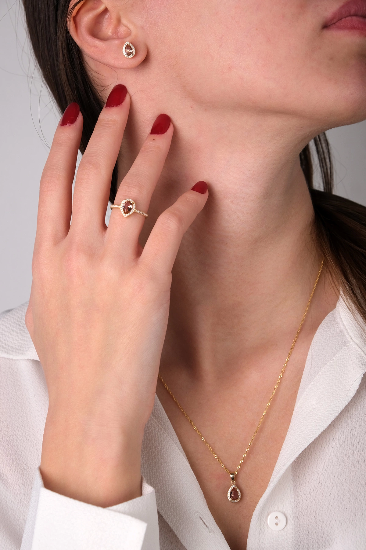 14 Ayar Altın Kahverengi Damla Taşlı Set 45