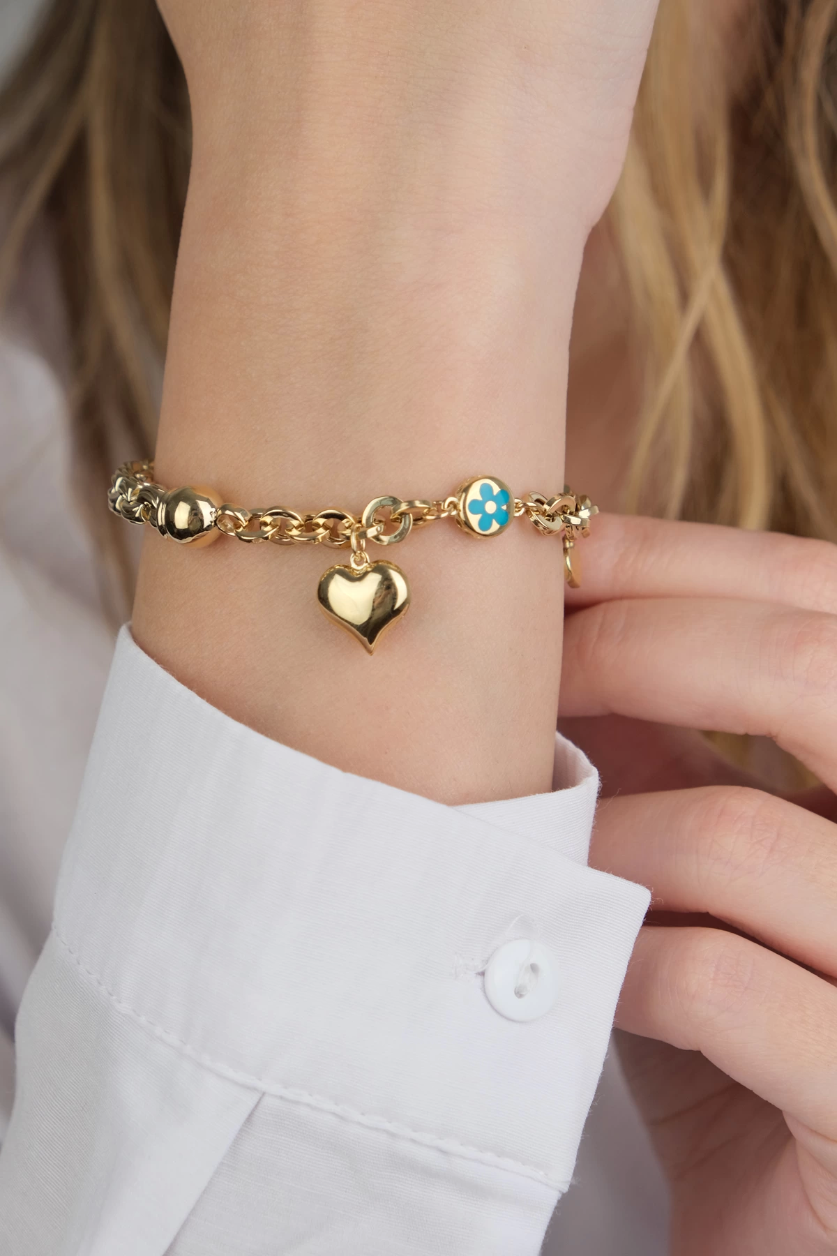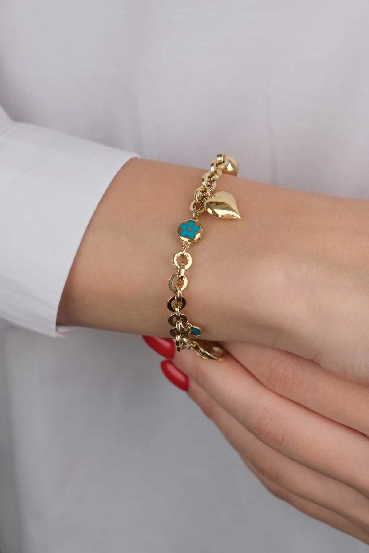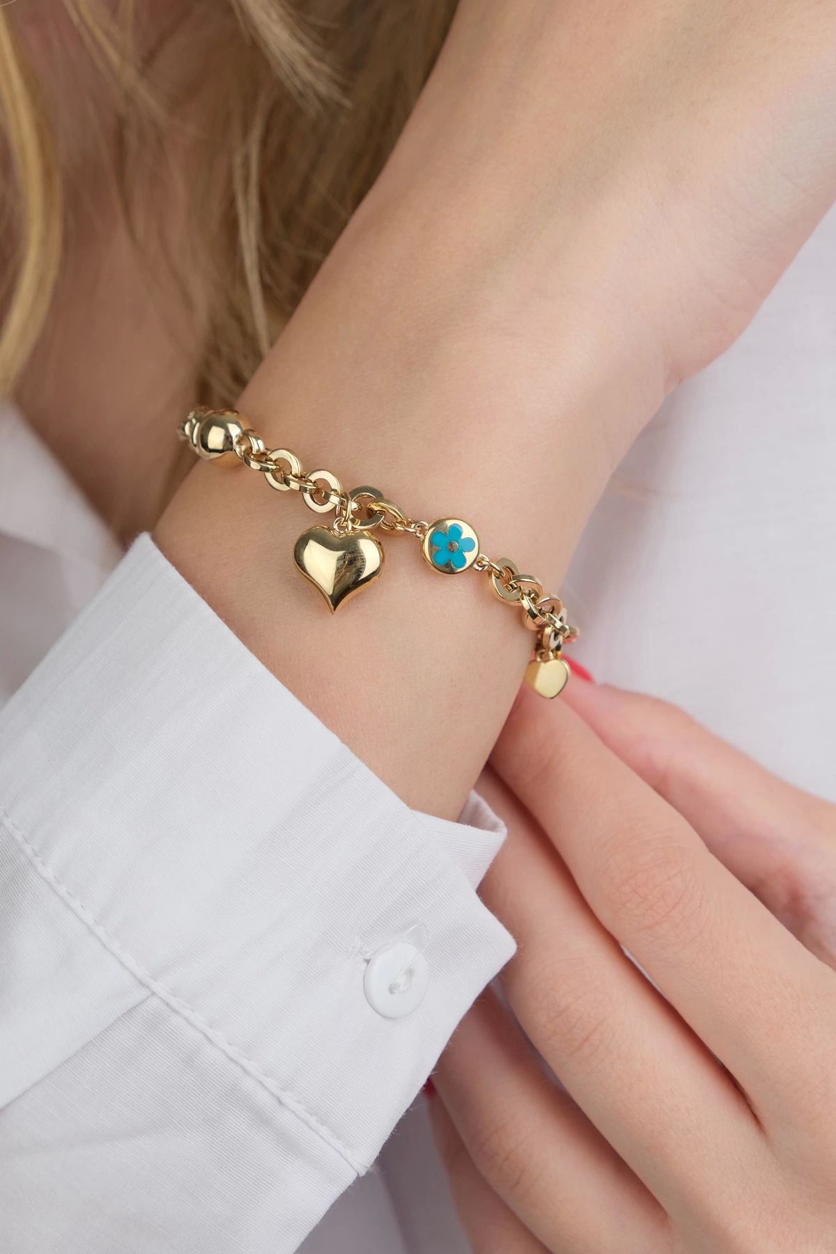 14 Ayar Altın Kalp Sallantılı Bileklik 641