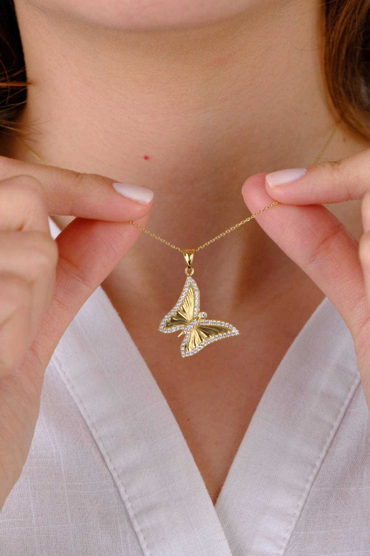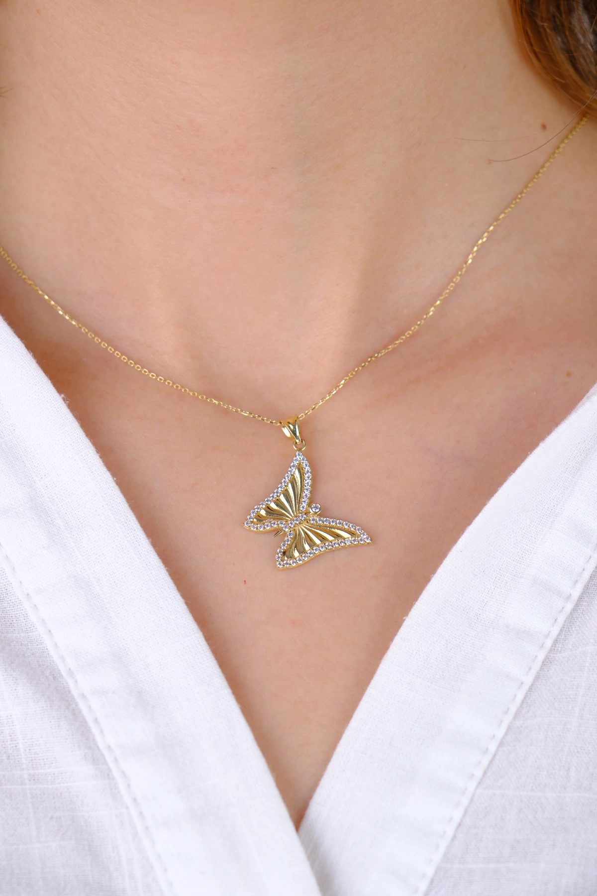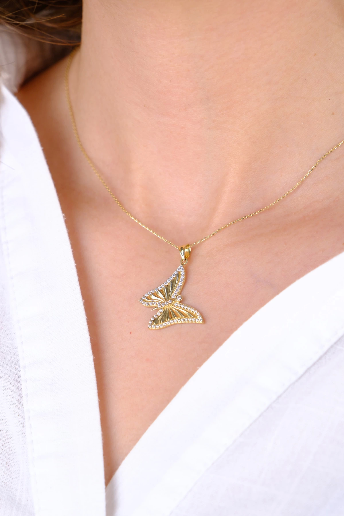 14 Ayar Altın Kelebekli Kolye Ucu 244