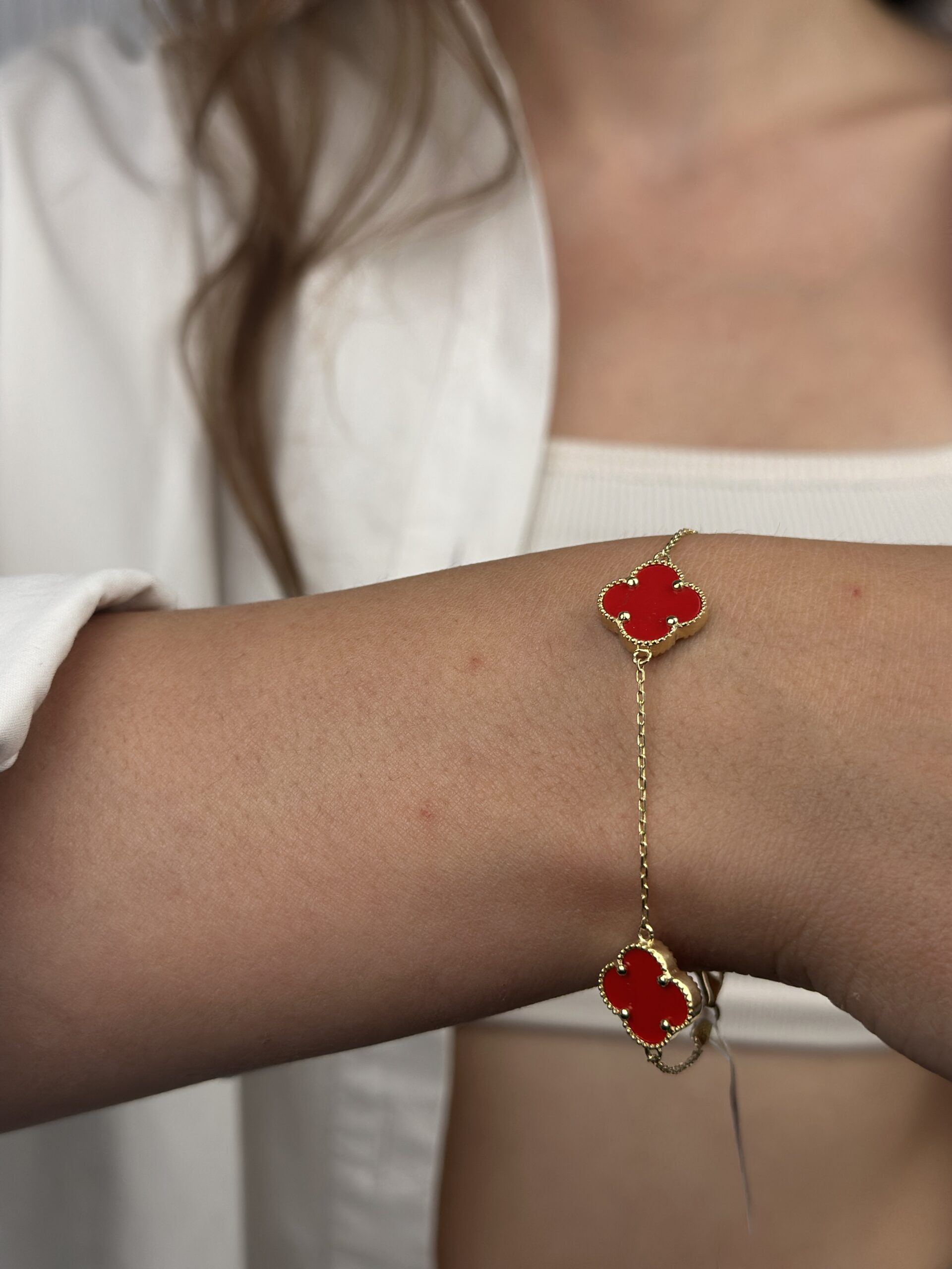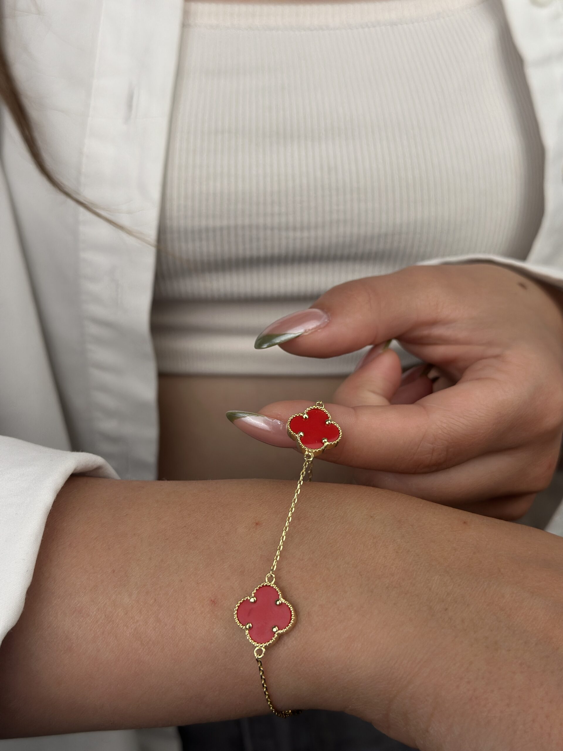 14 Ayar Altın Kırmızı Yonca Bileklik 1017
