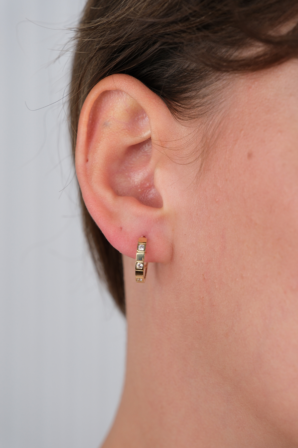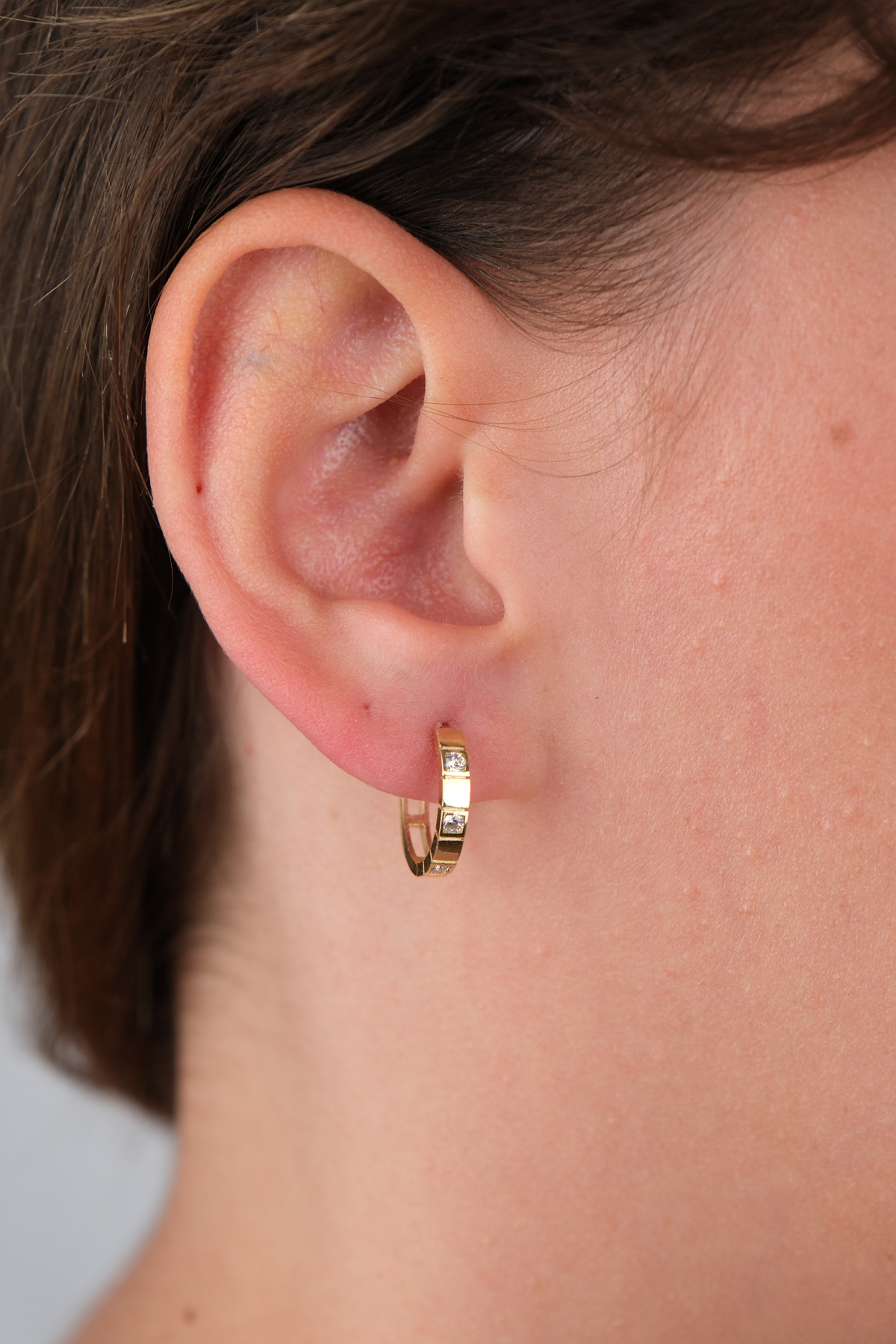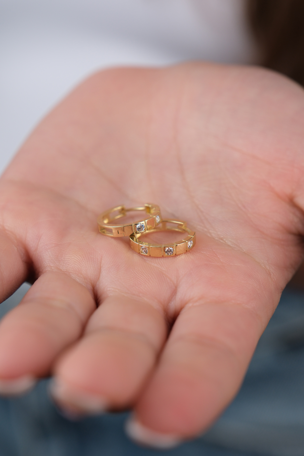 14 Ayar Altın Küçük Taşlı Halka Küpe 709