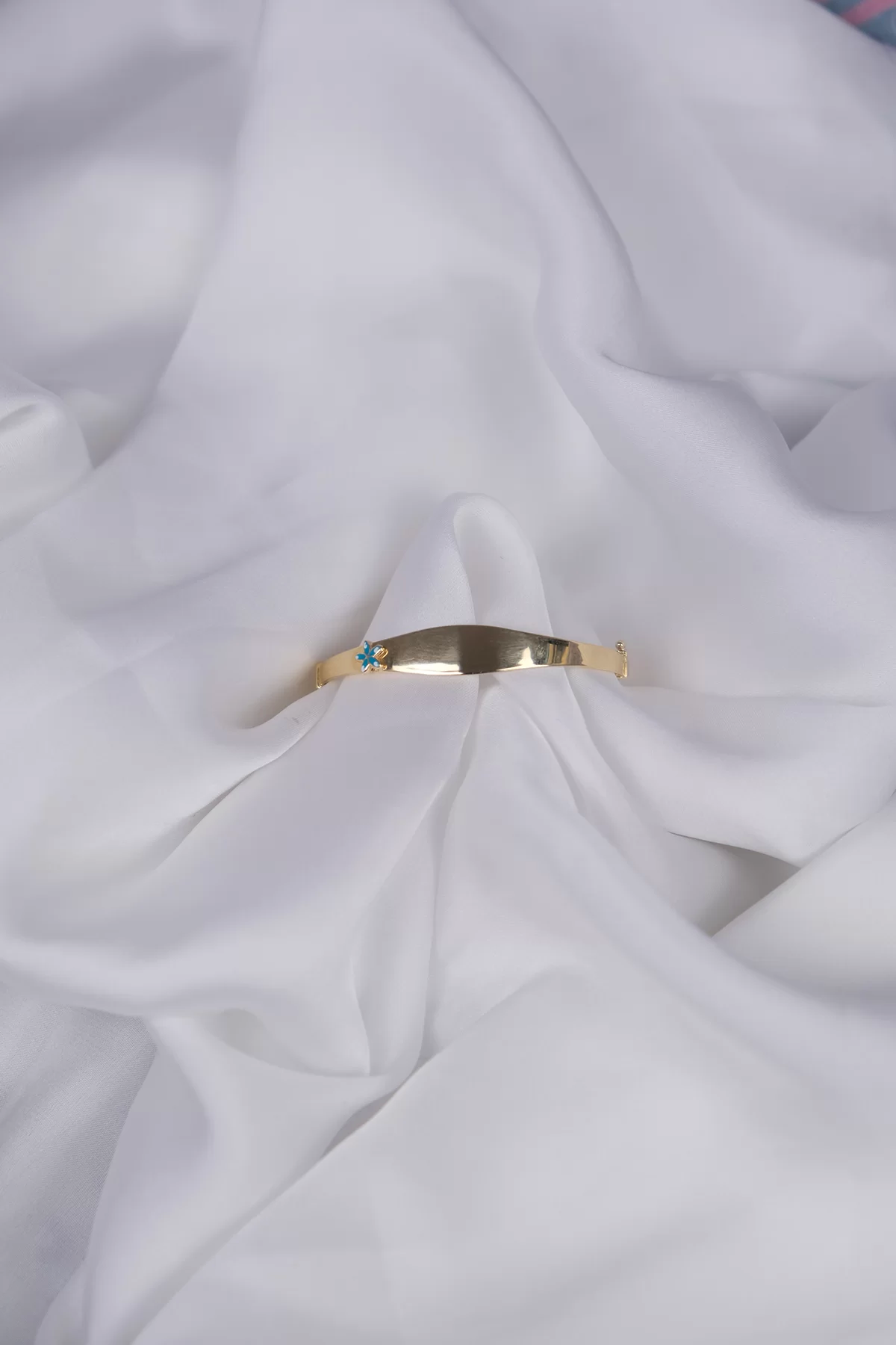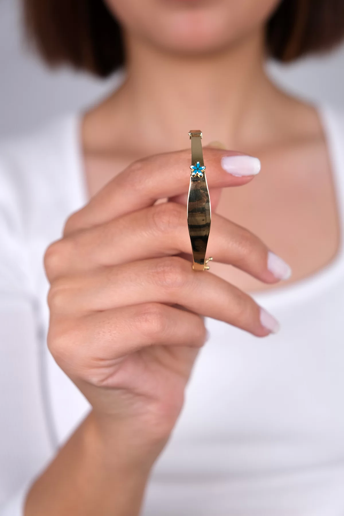 14 Ayar Altın Mavi Çiçekli Çocuk Kelepçesi 17