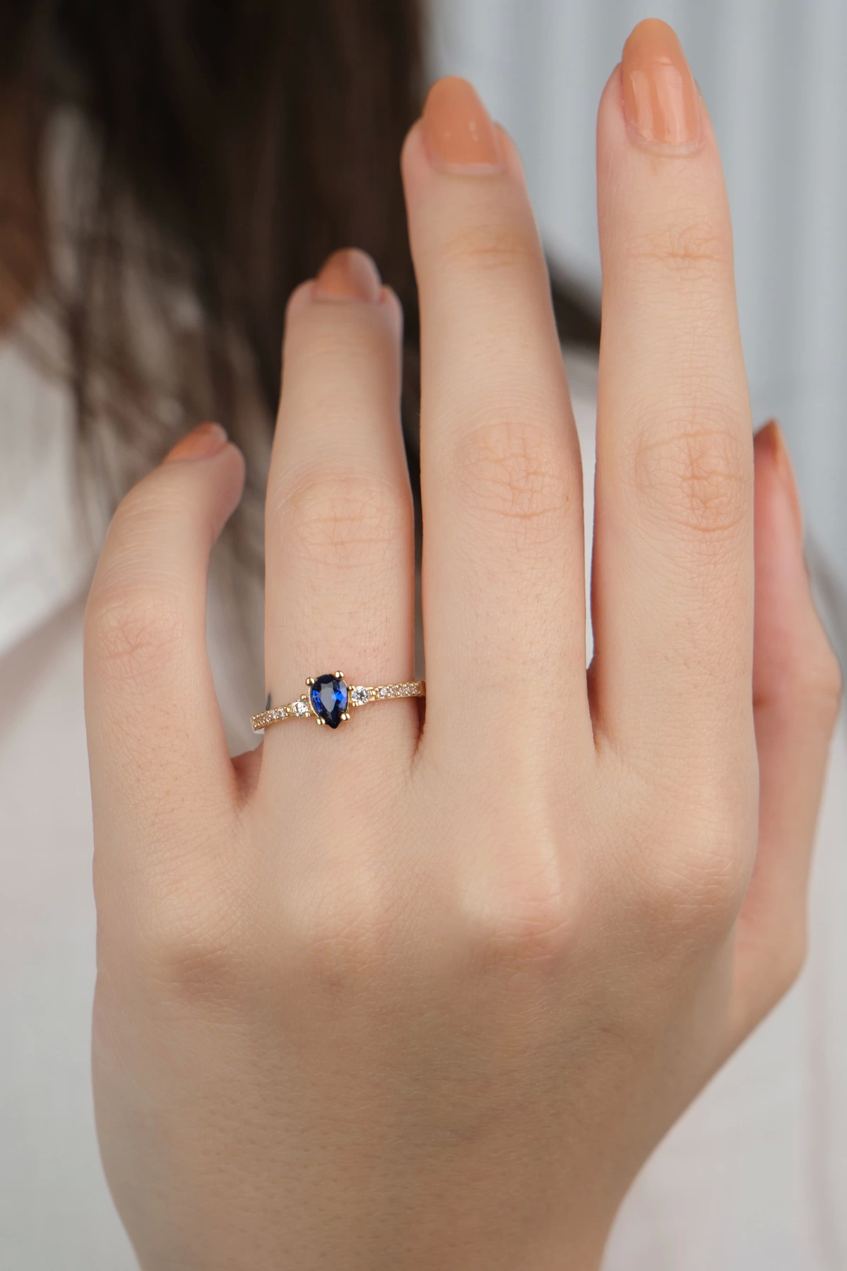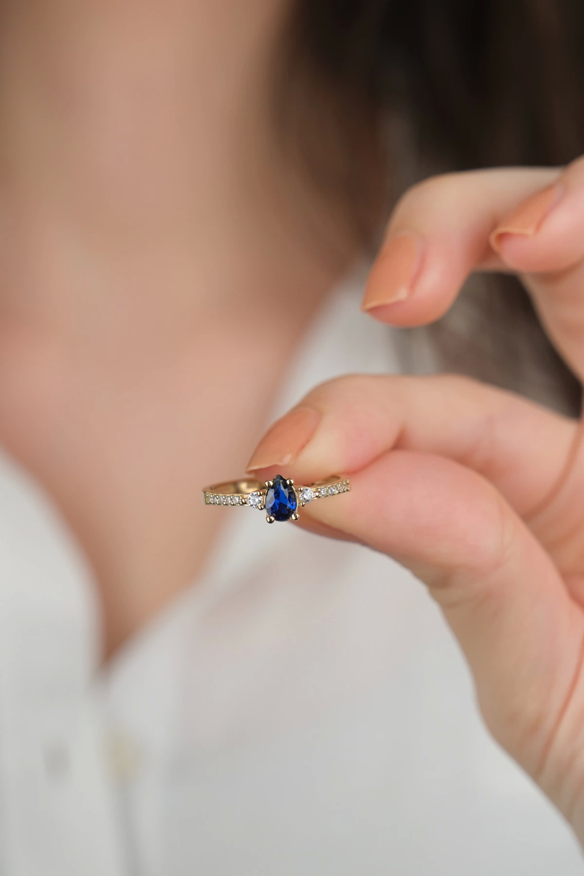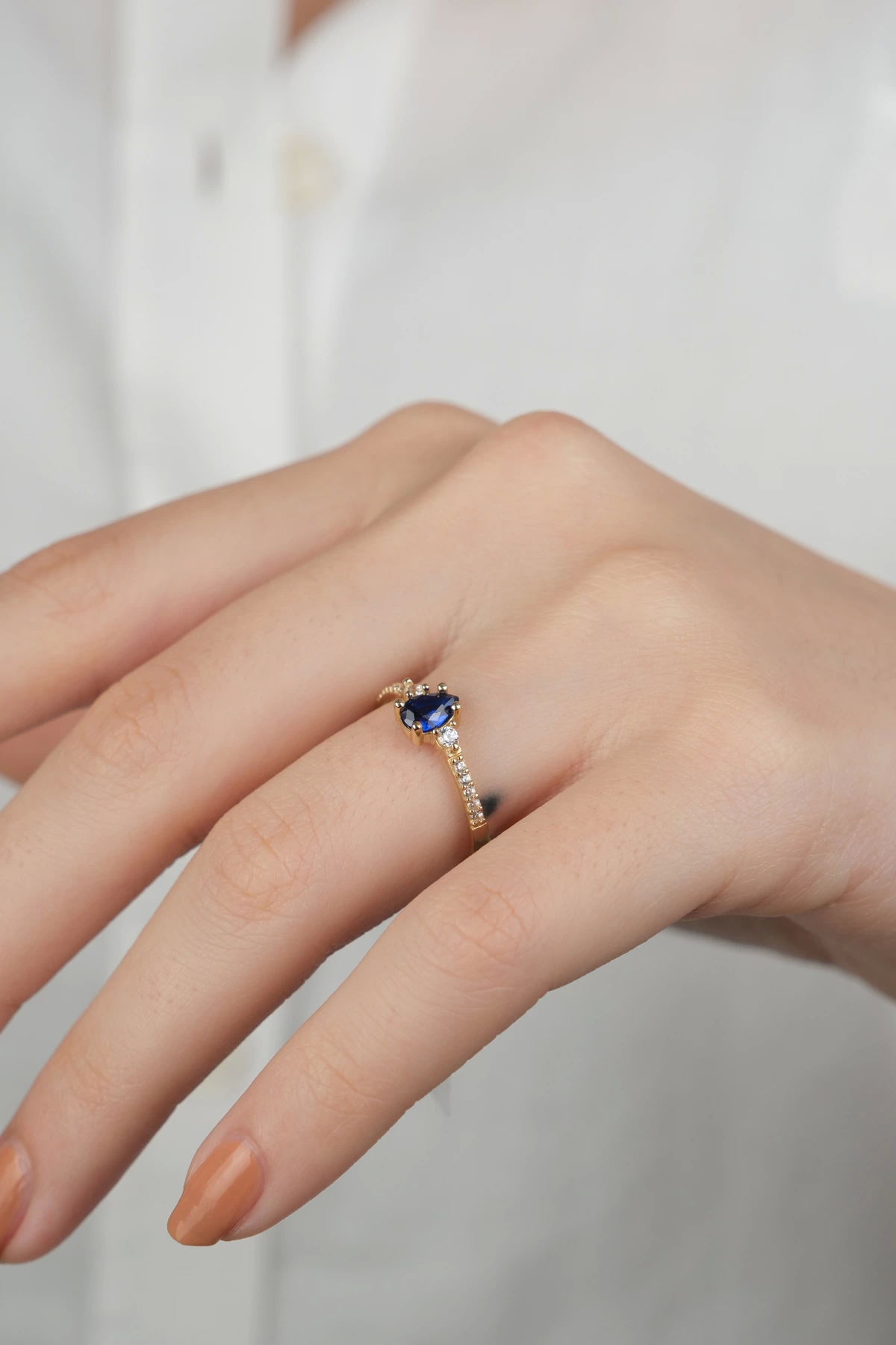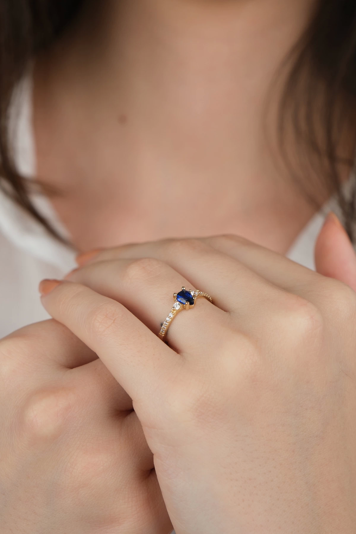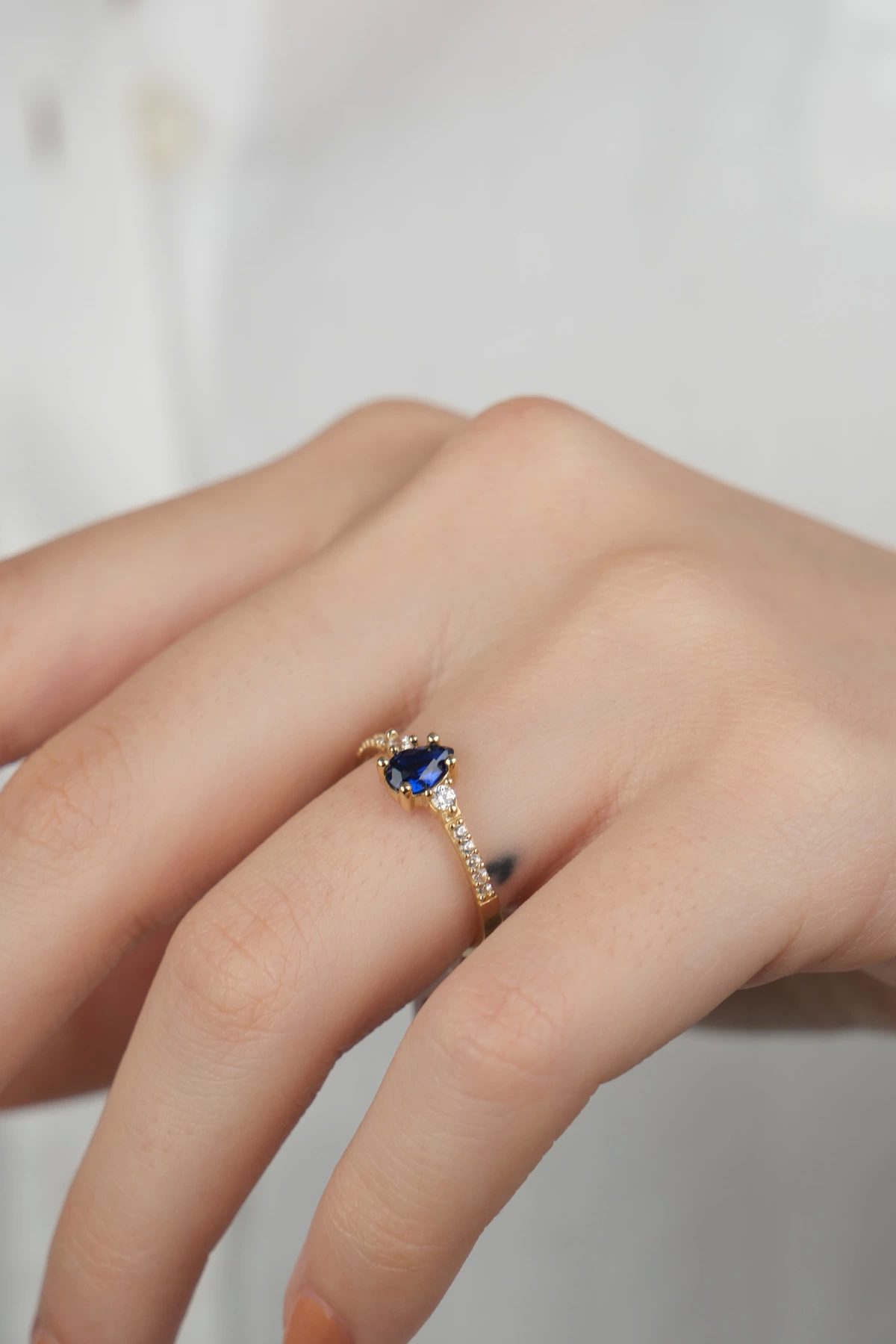 14 Ayar Altın Mavi Damla Taşlı Yüzük 881