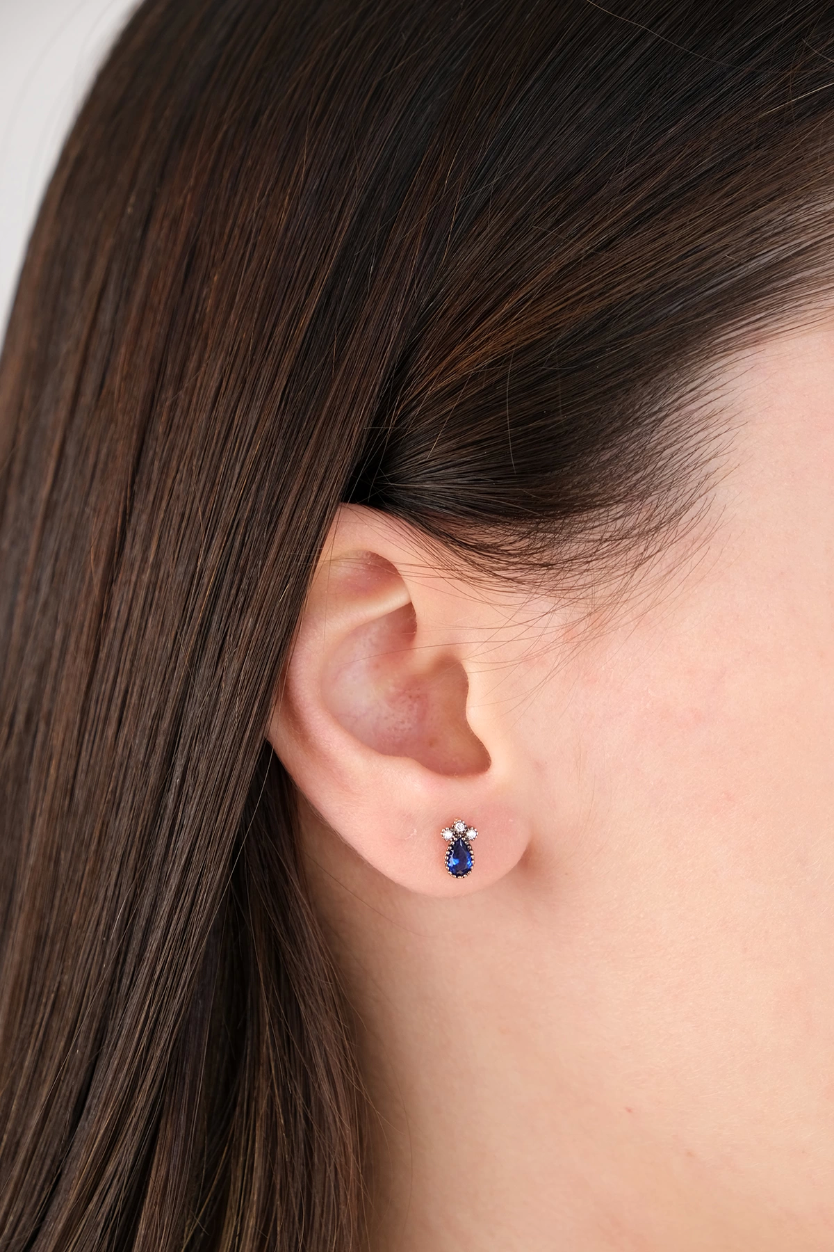 14 Ayar Altın Mavi Taşlı Damla Küpe 186