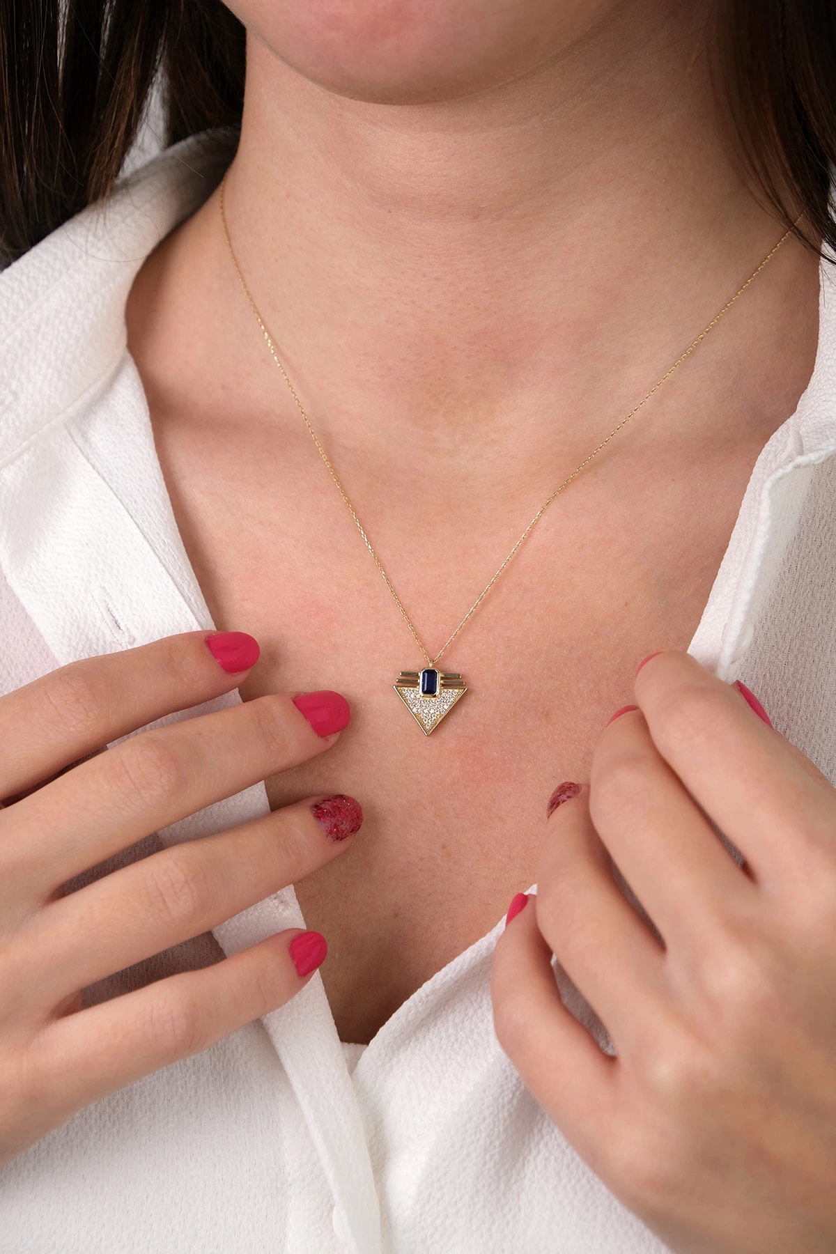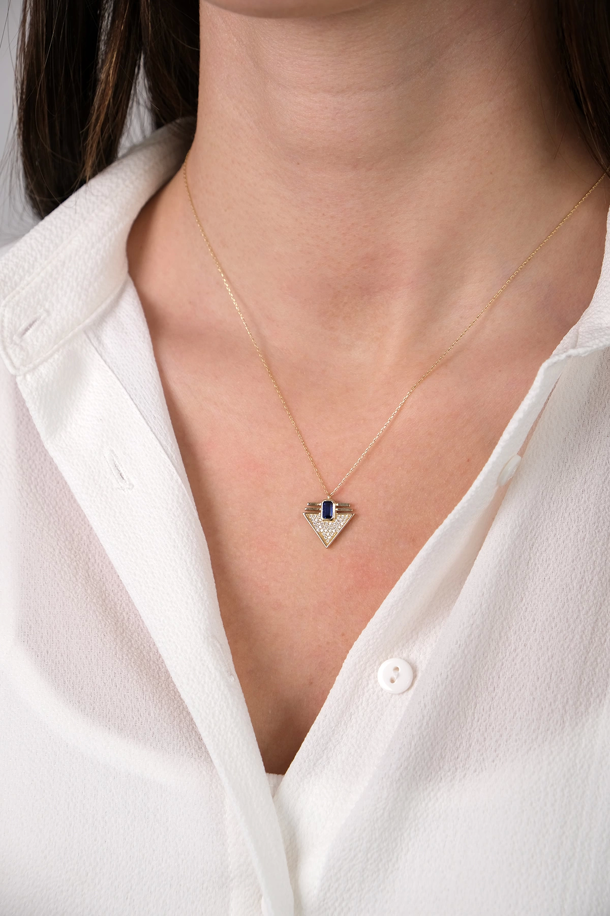 14 Ayar Altın Mavi Taşlı Kolye 302