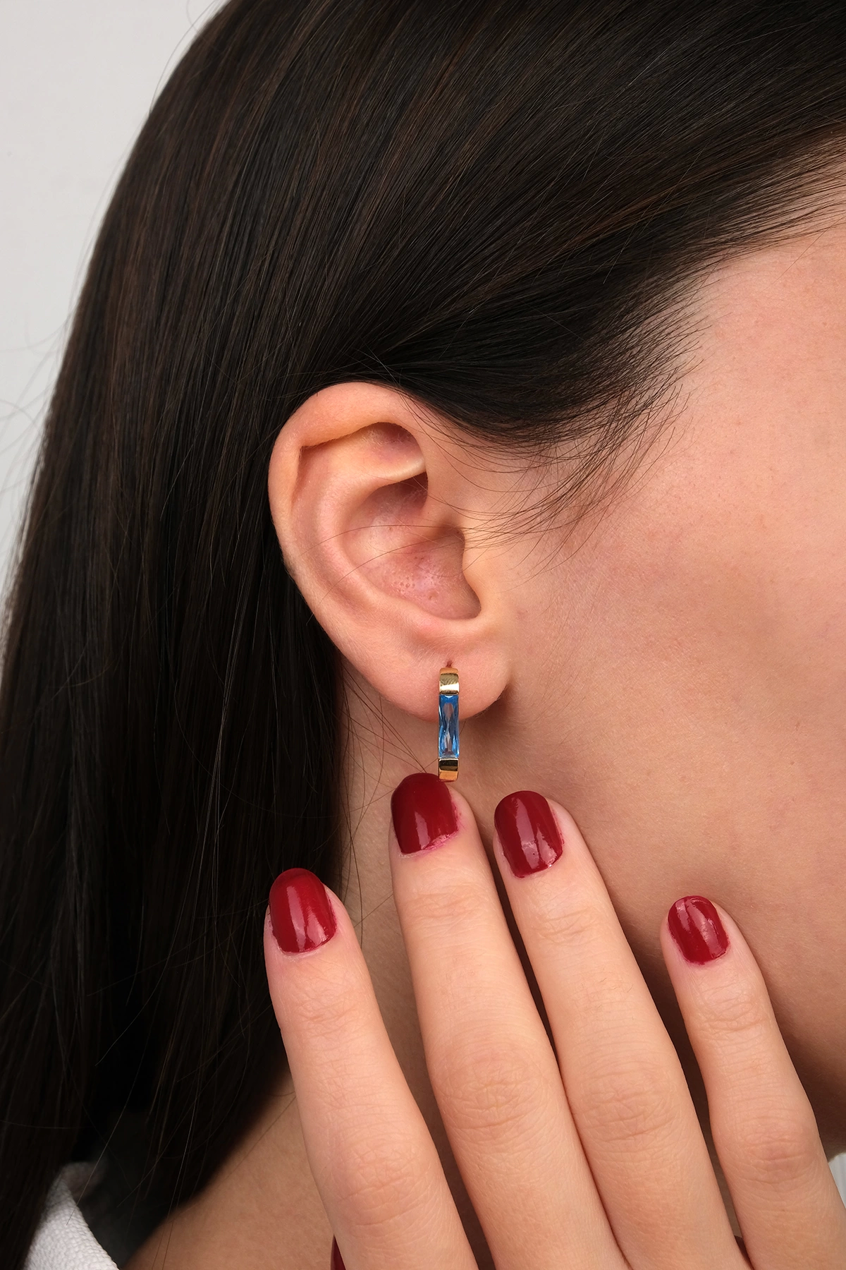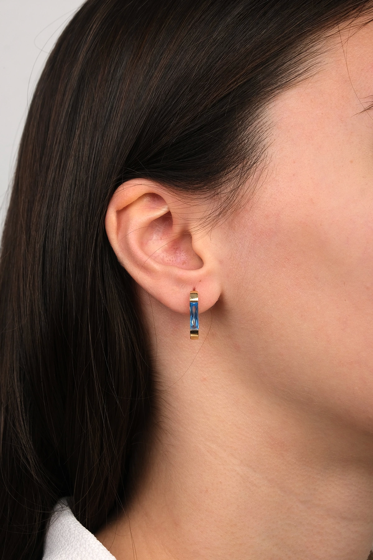 14 Ayar Altın Mavi Taşlı Küpe 152