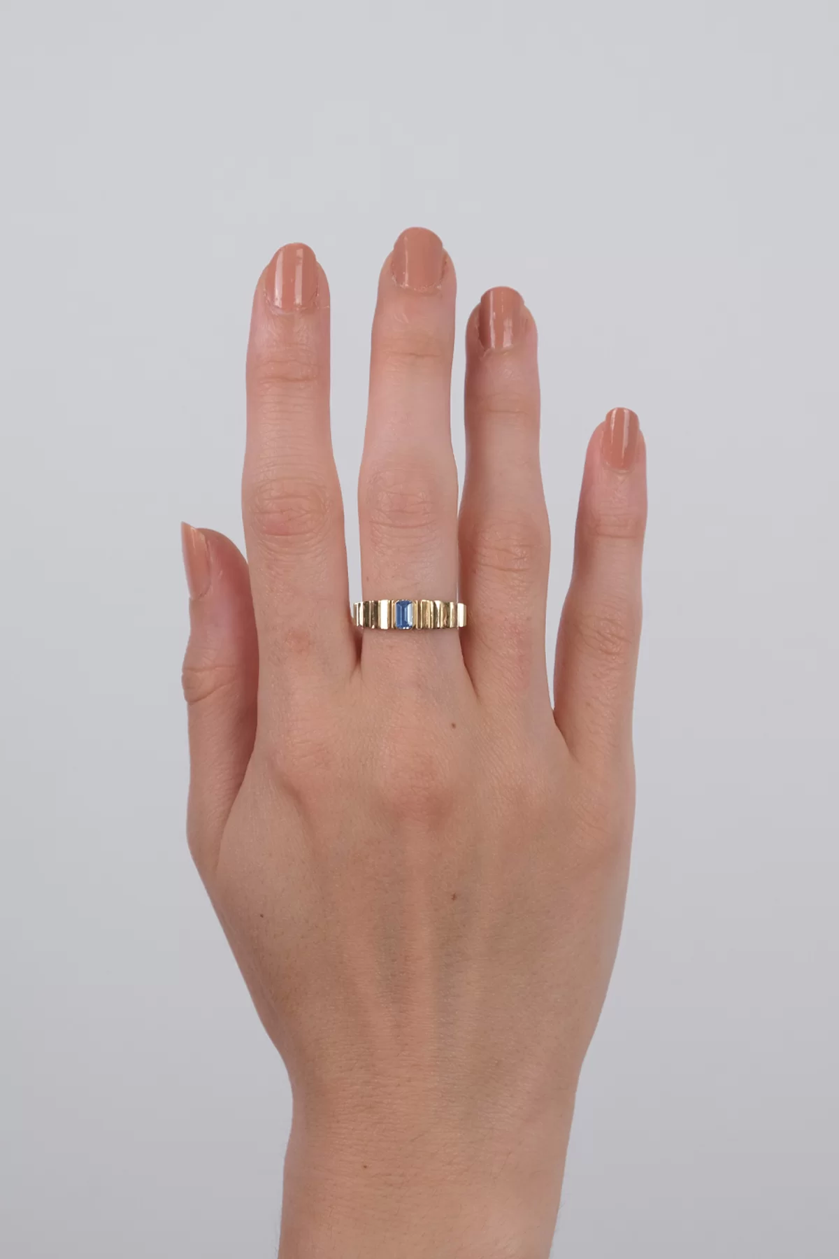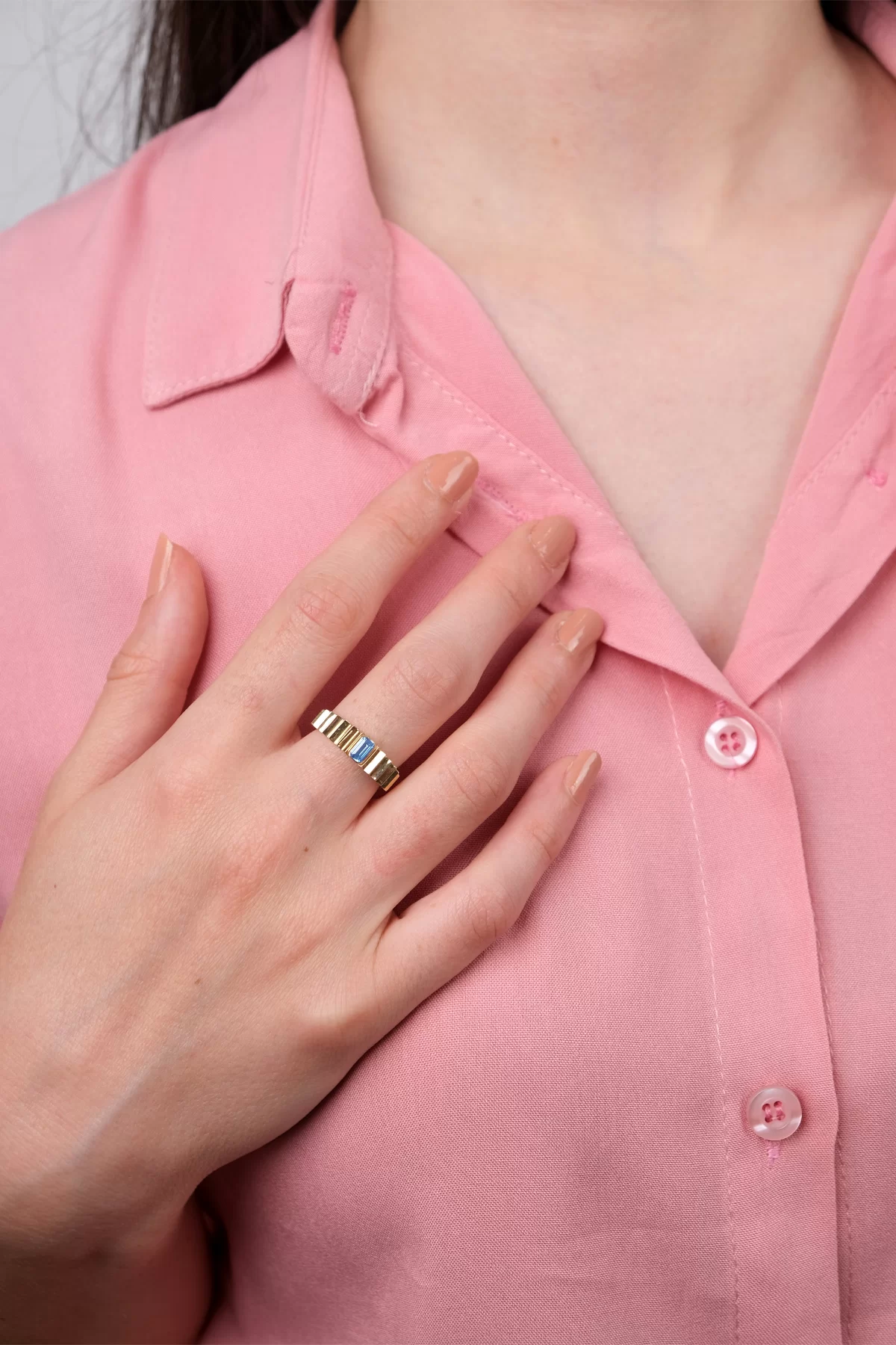 14 Ayar Altın Mavi Taşlı Retro Yüzük 99