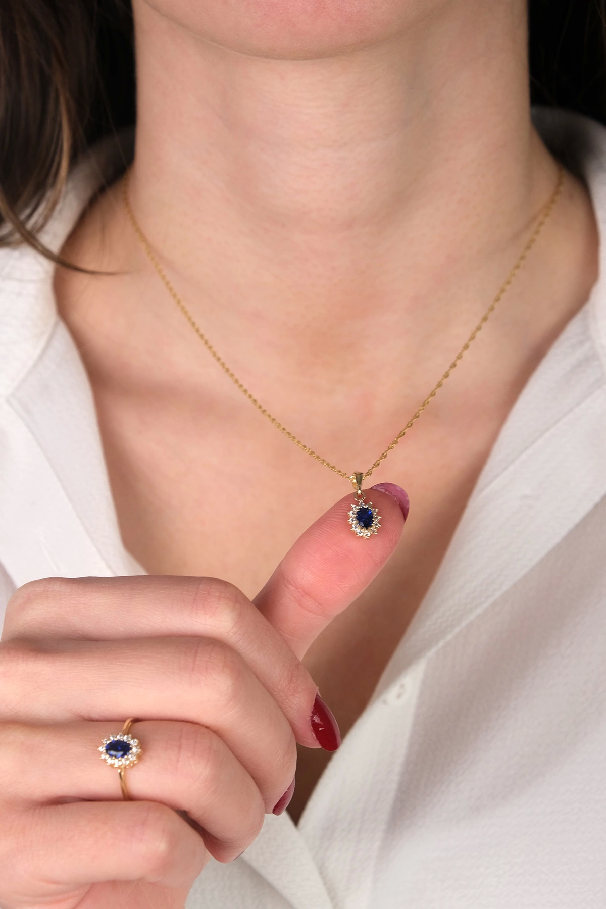 14 Ayar Altın Mavi Taşlı Set 44
