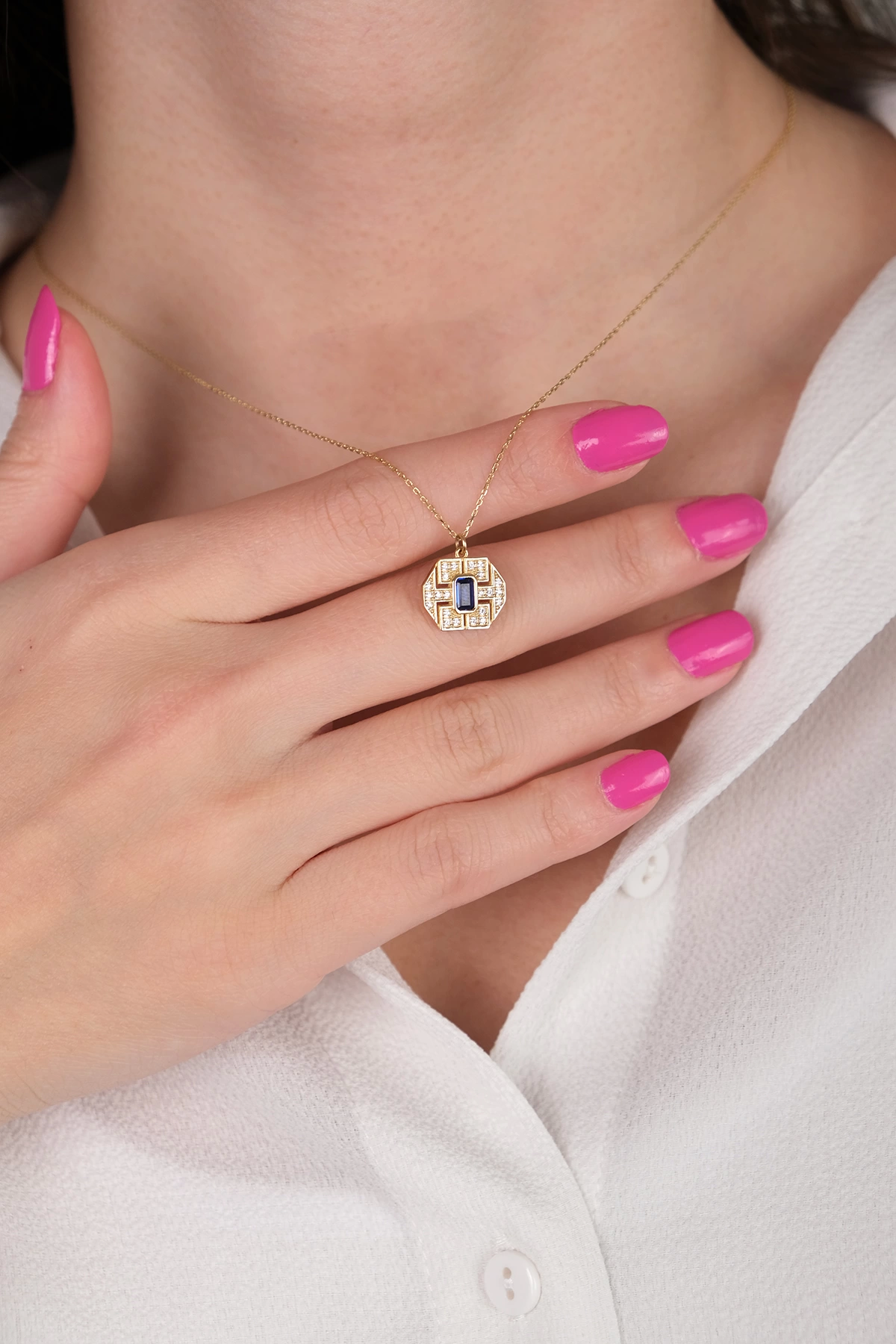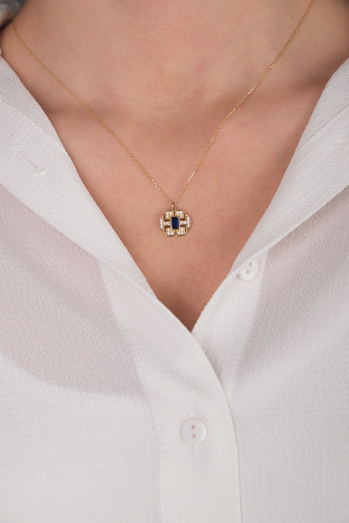 14 Ayar Altın Mavi Taşlı Yılan Göz Kolye 10