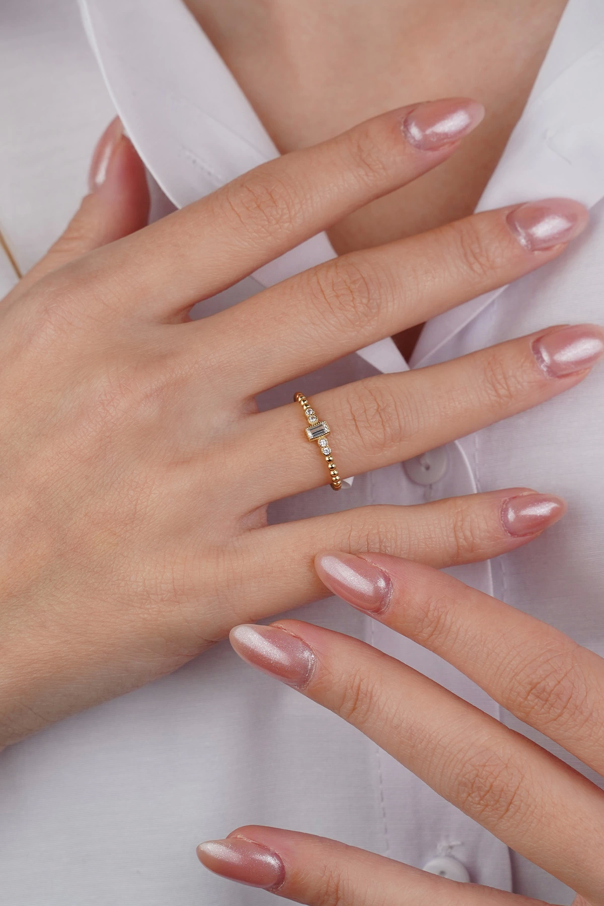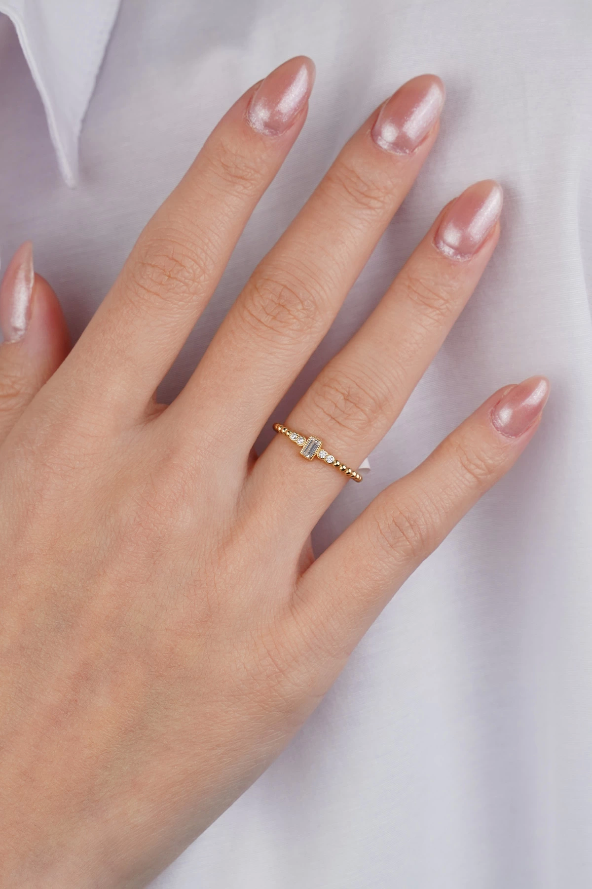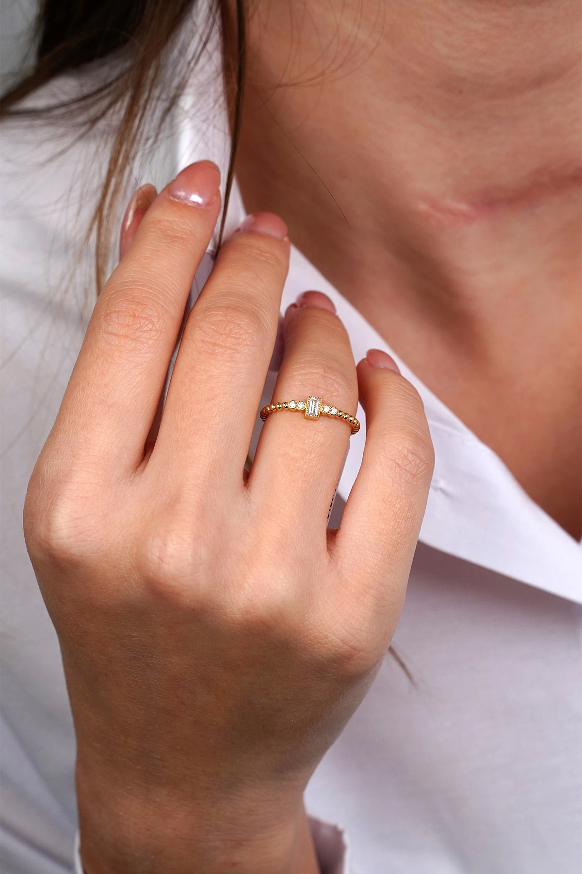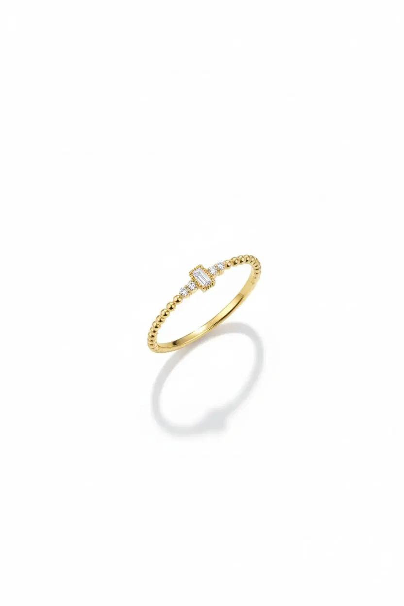 14 Ayar Altın Minimal Baget Taşlı Yüzük 618