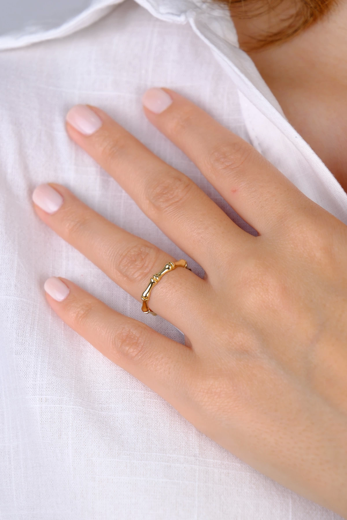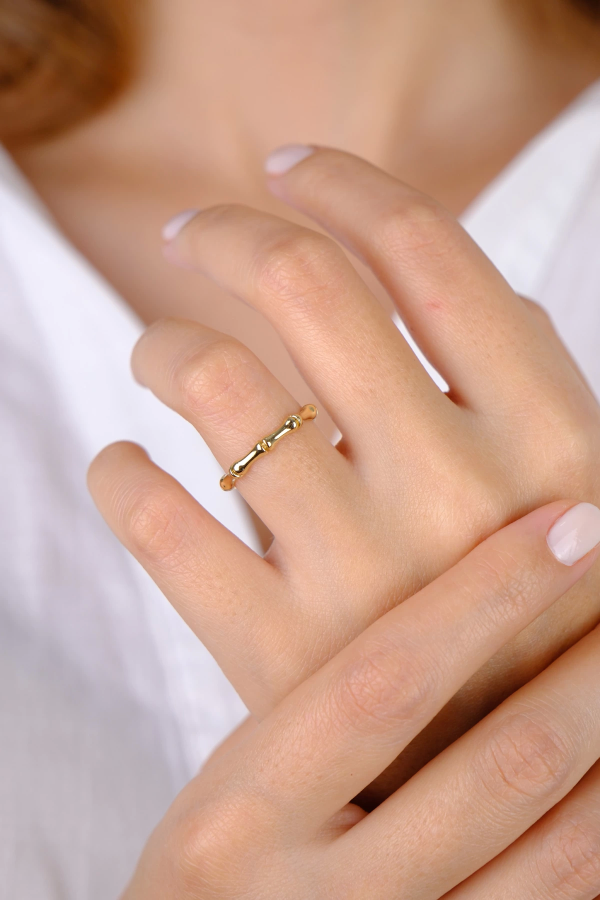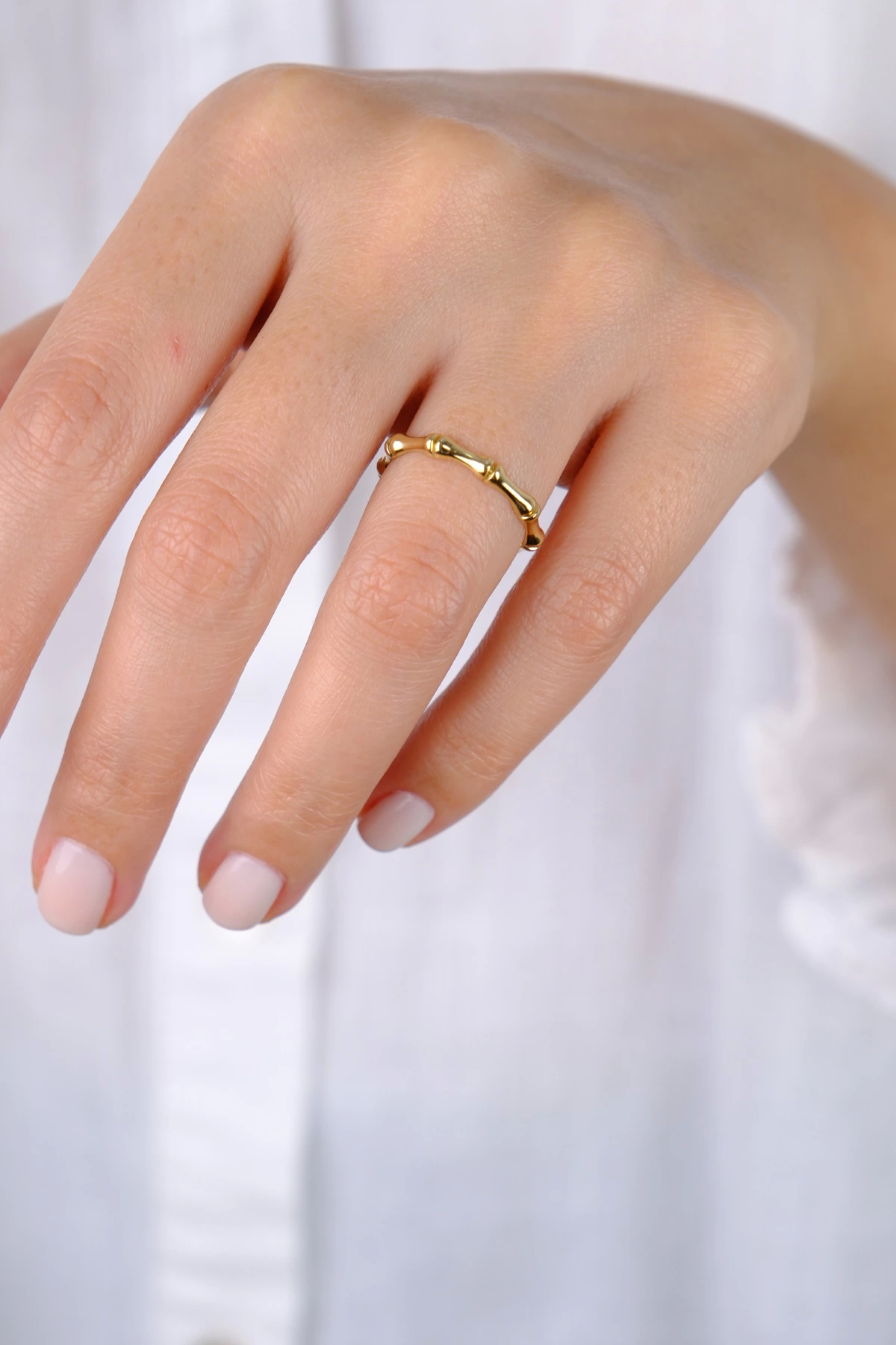 14 Ayar Altın Minimal Damlalı Sade Yüzük 779