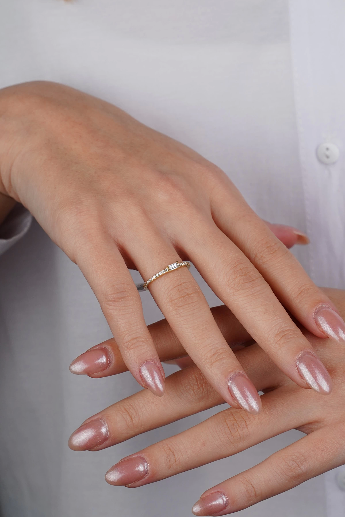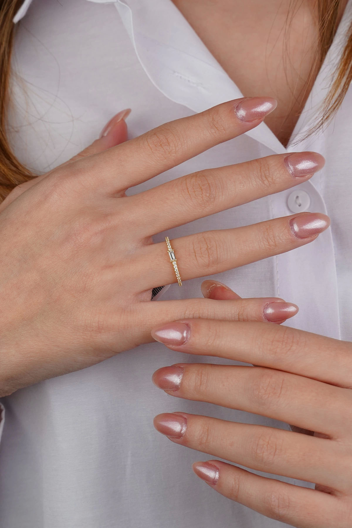 14 Ayar Altın Minimal Baget Taşlı Yüzük 618