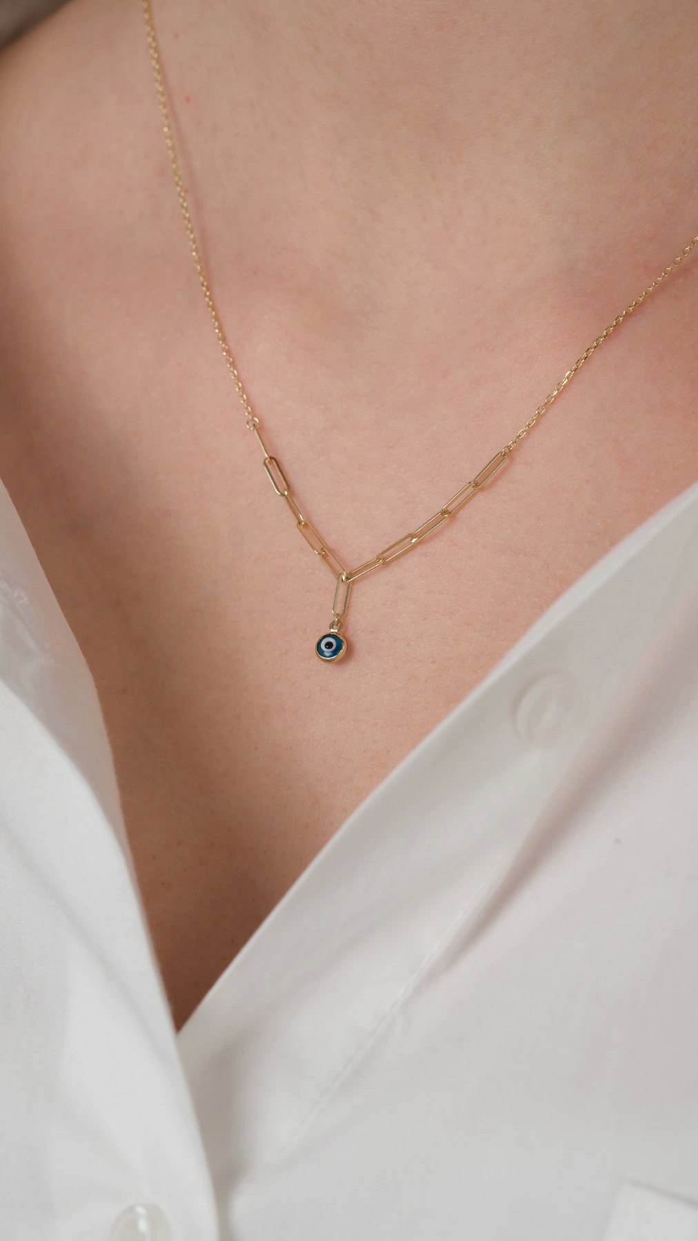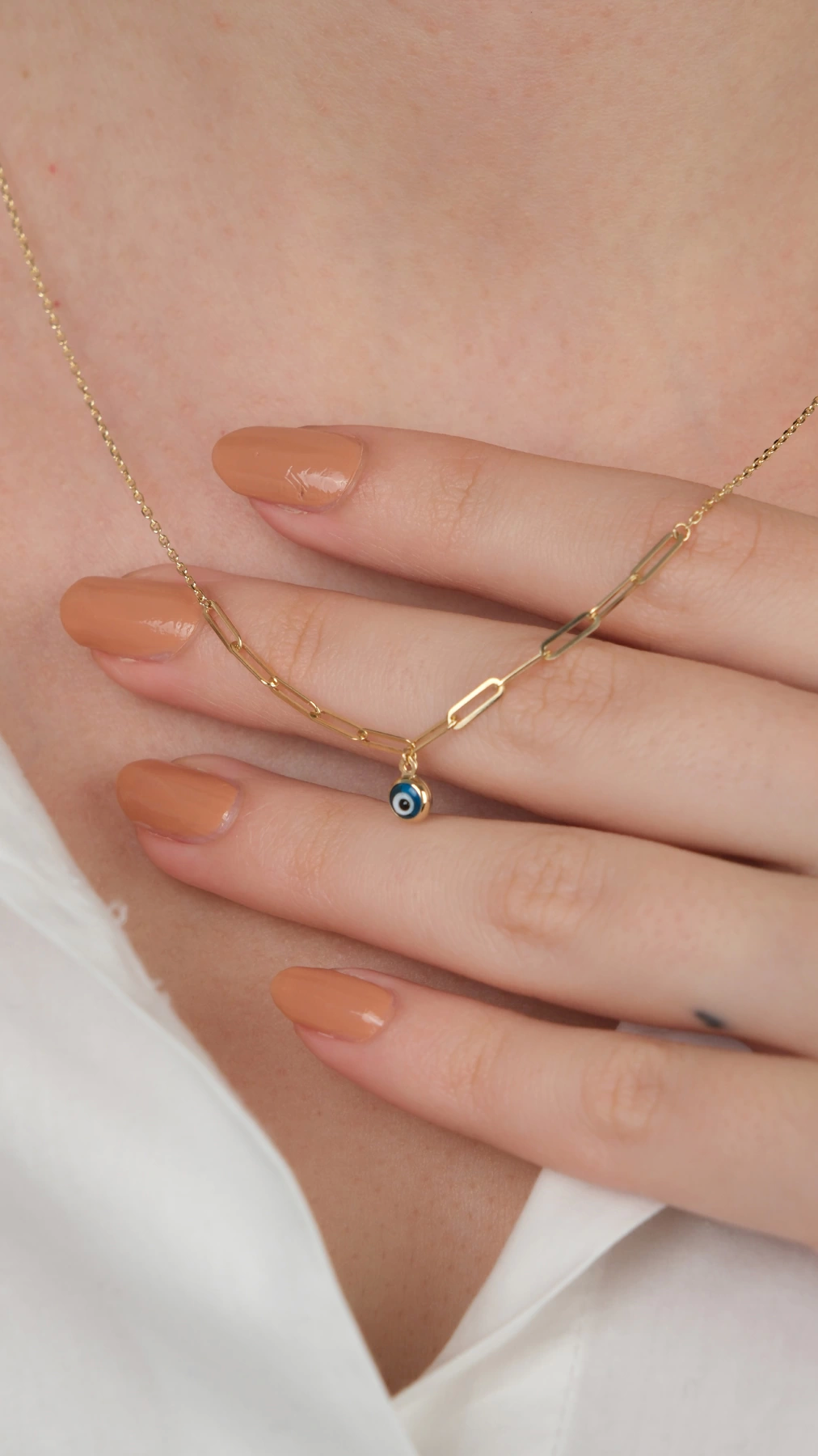 14 Ayar Altın Nazar Boncuklu Ataç Zincirli Kolye