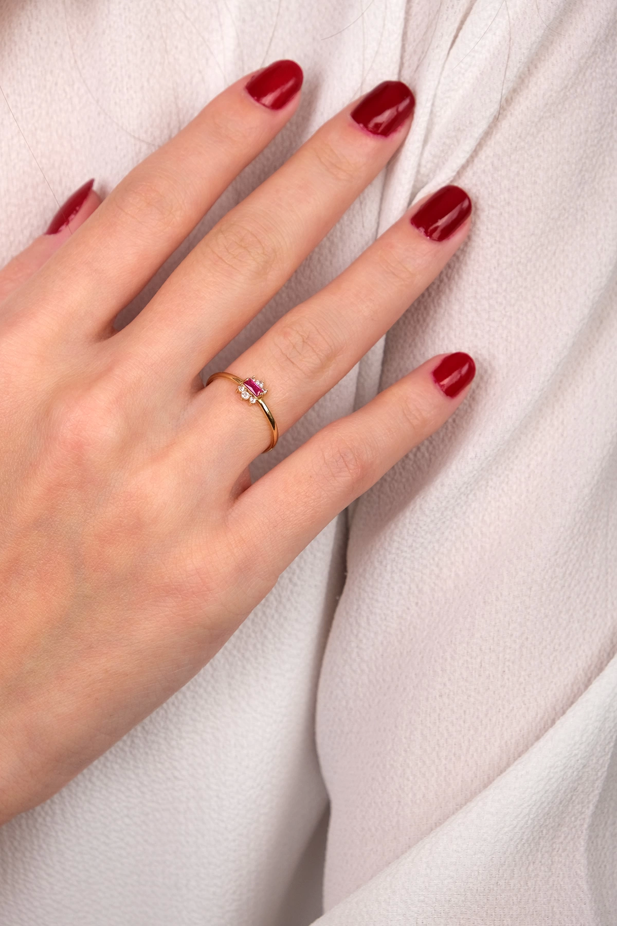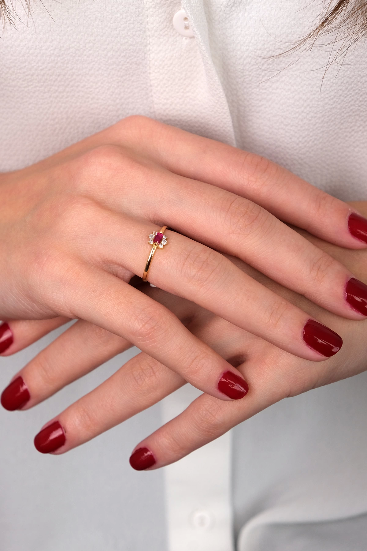 14 Ayar Altın Pembe Taşlı Yüzük 112