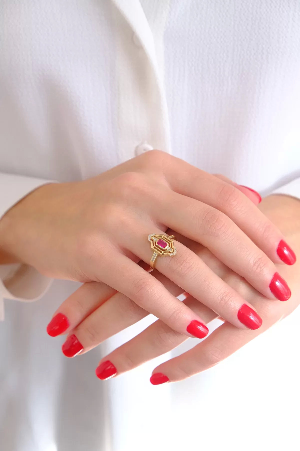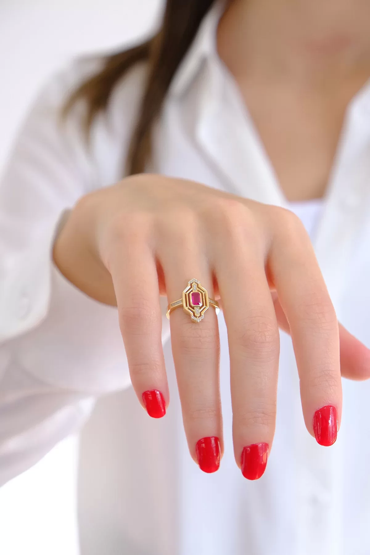 14 Ayar Altın Pembe Taşlı Yüzük 339