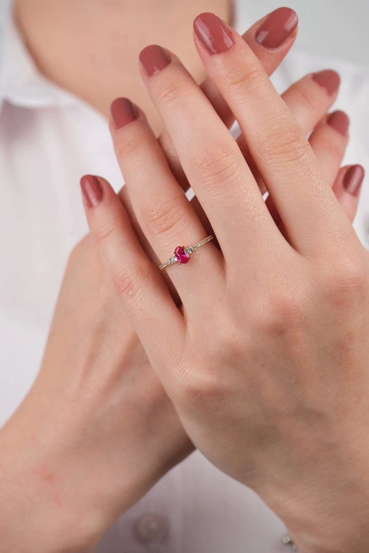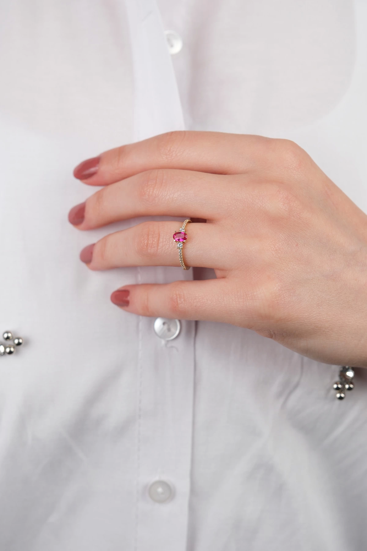 14 Ayar Altın Pembe Taşlı Yüzük 717