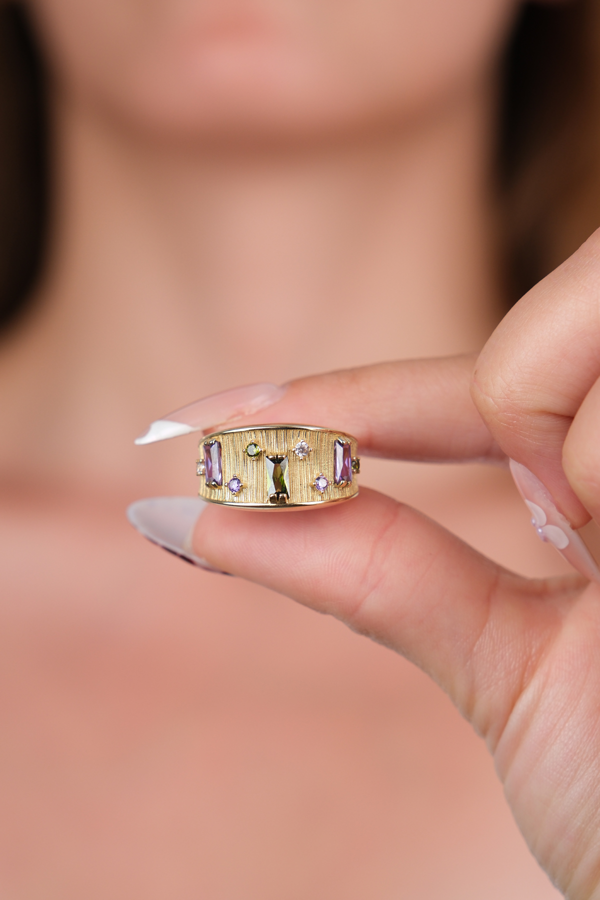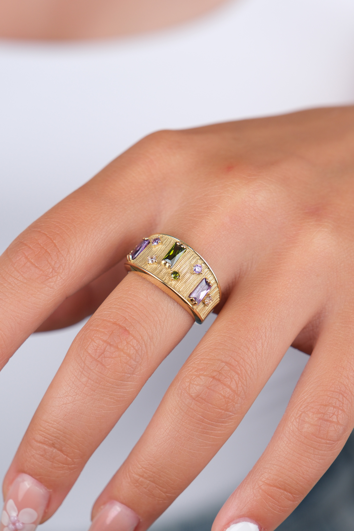 14 Ayar Altın Renkli Taşlı Yüzük 909