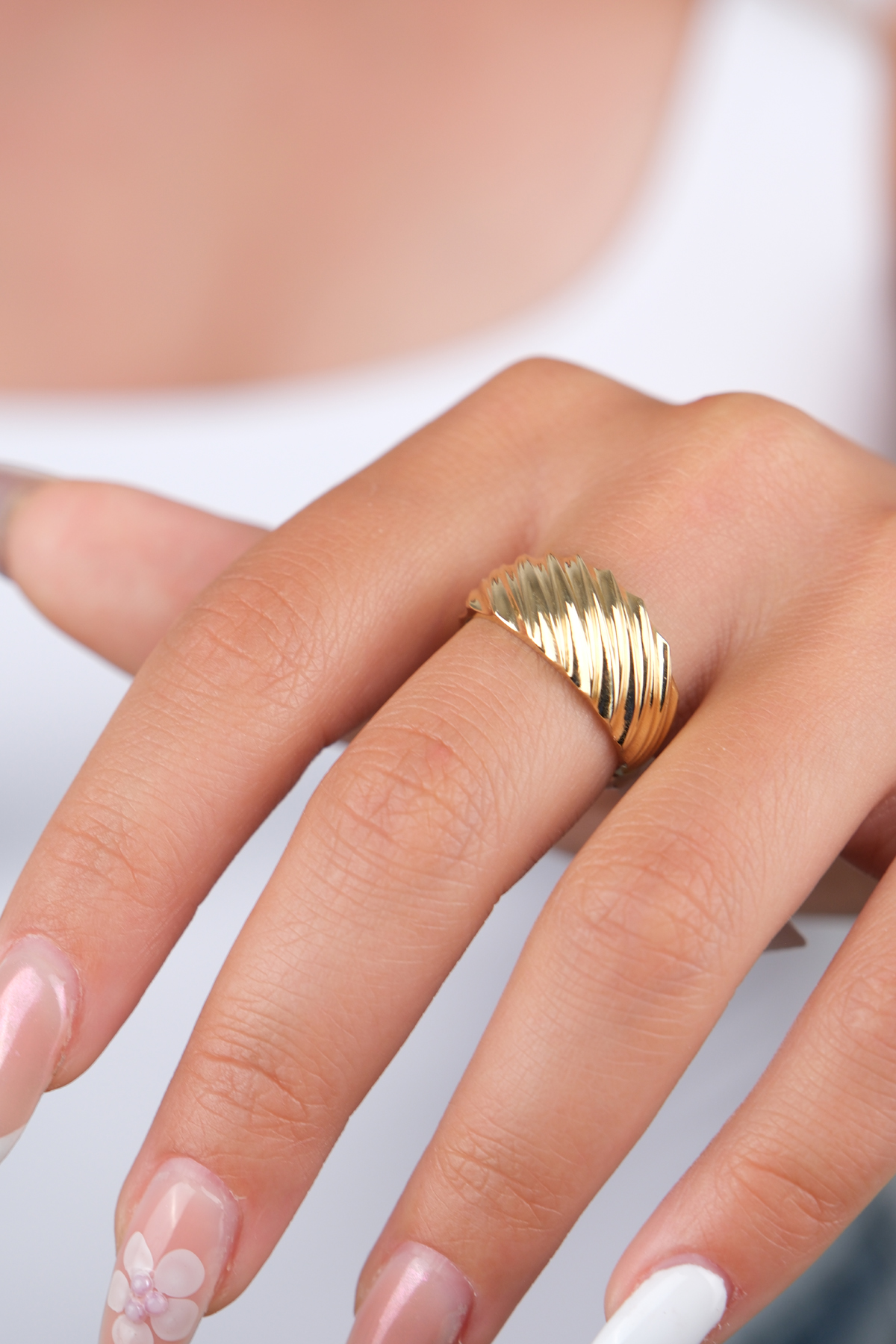 14 Ayar Altın Top Detay Yüzük 877