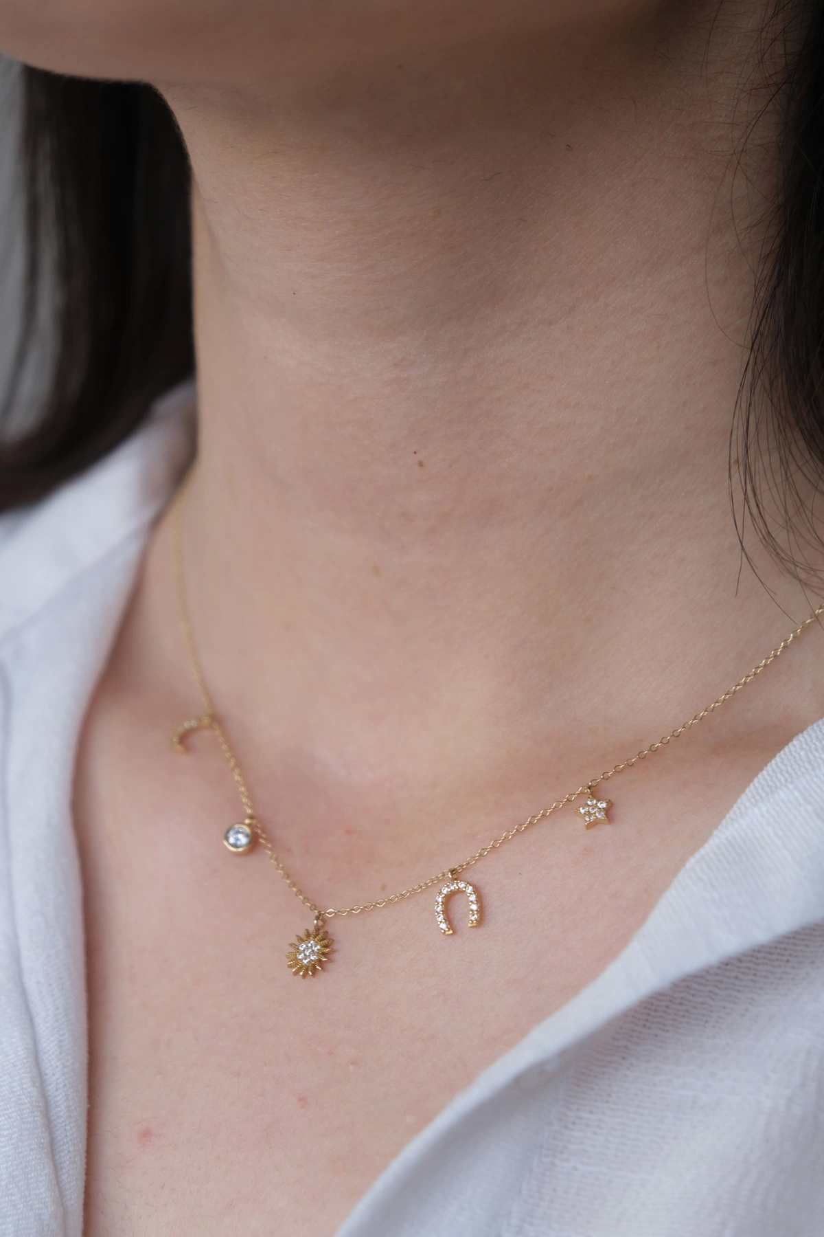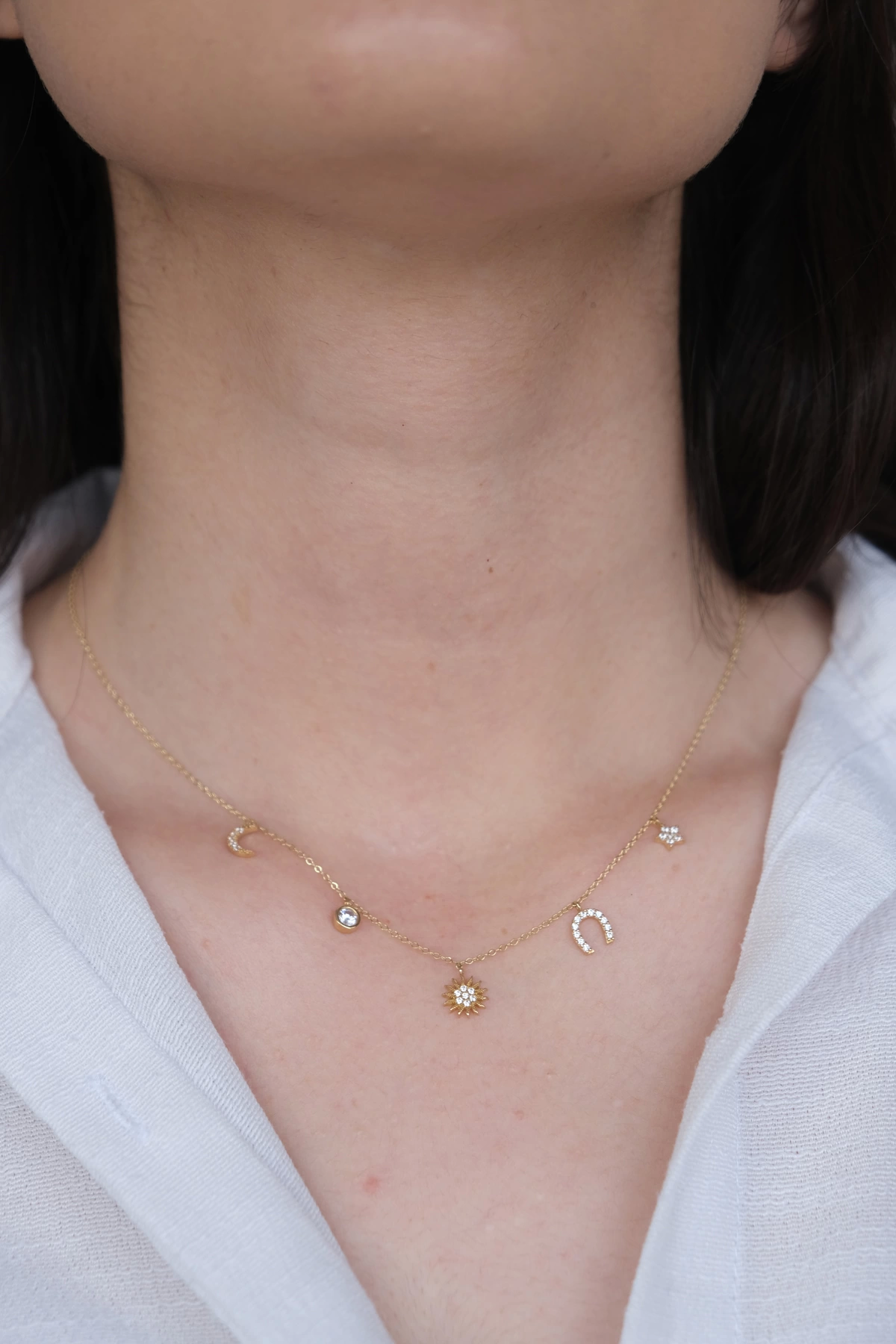 14 Ayar Altın Pembe Taşlı Yonca Kolye 455