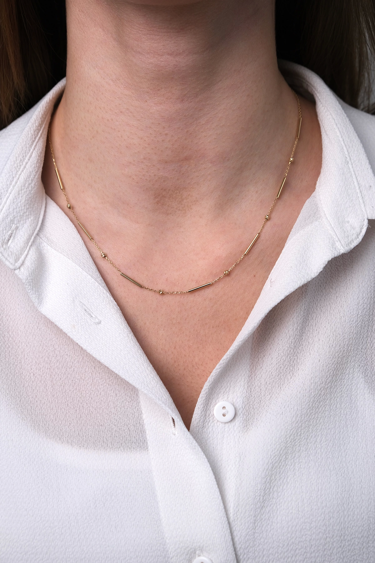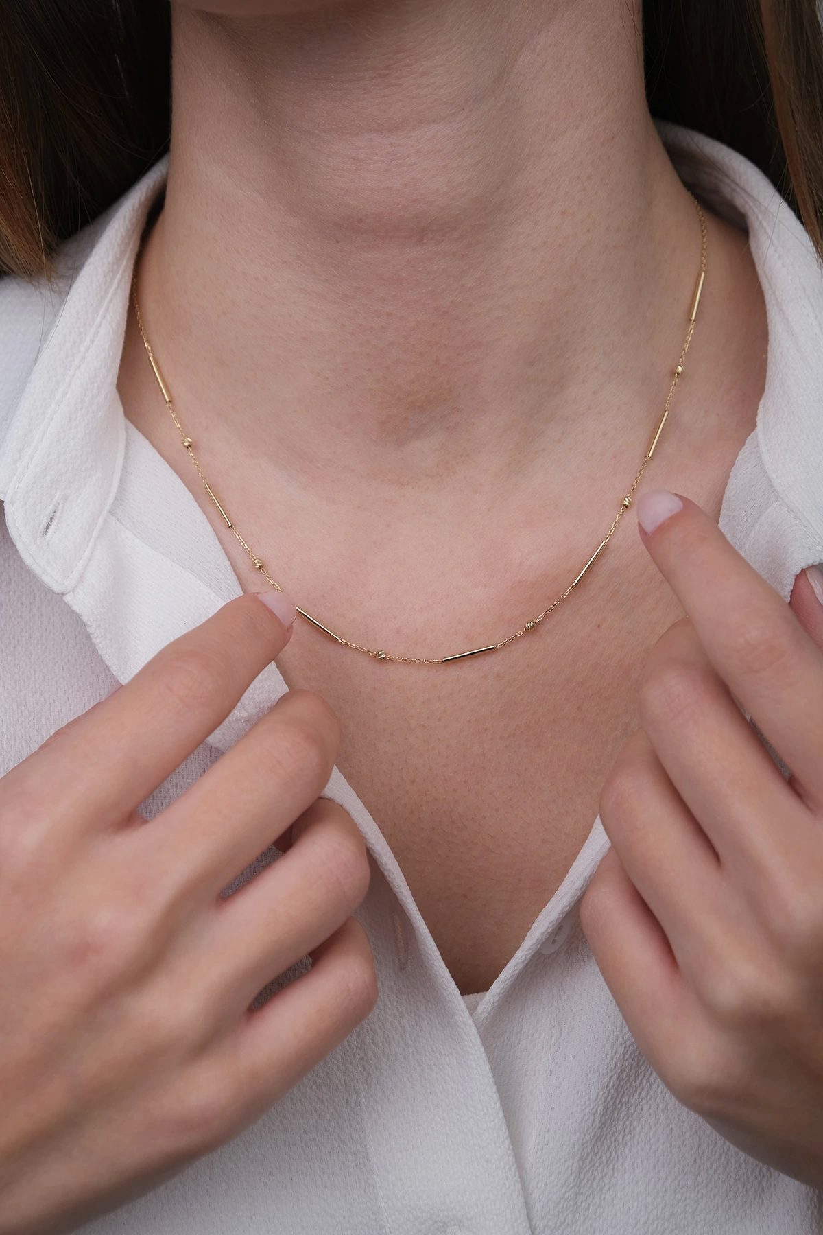 14 Ayar Altın Silindir Sıralı Kolye 329