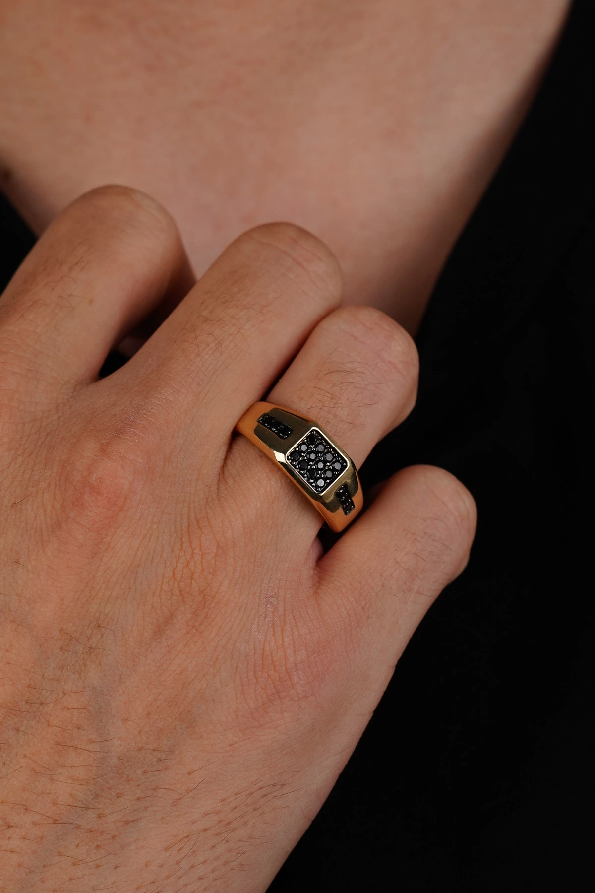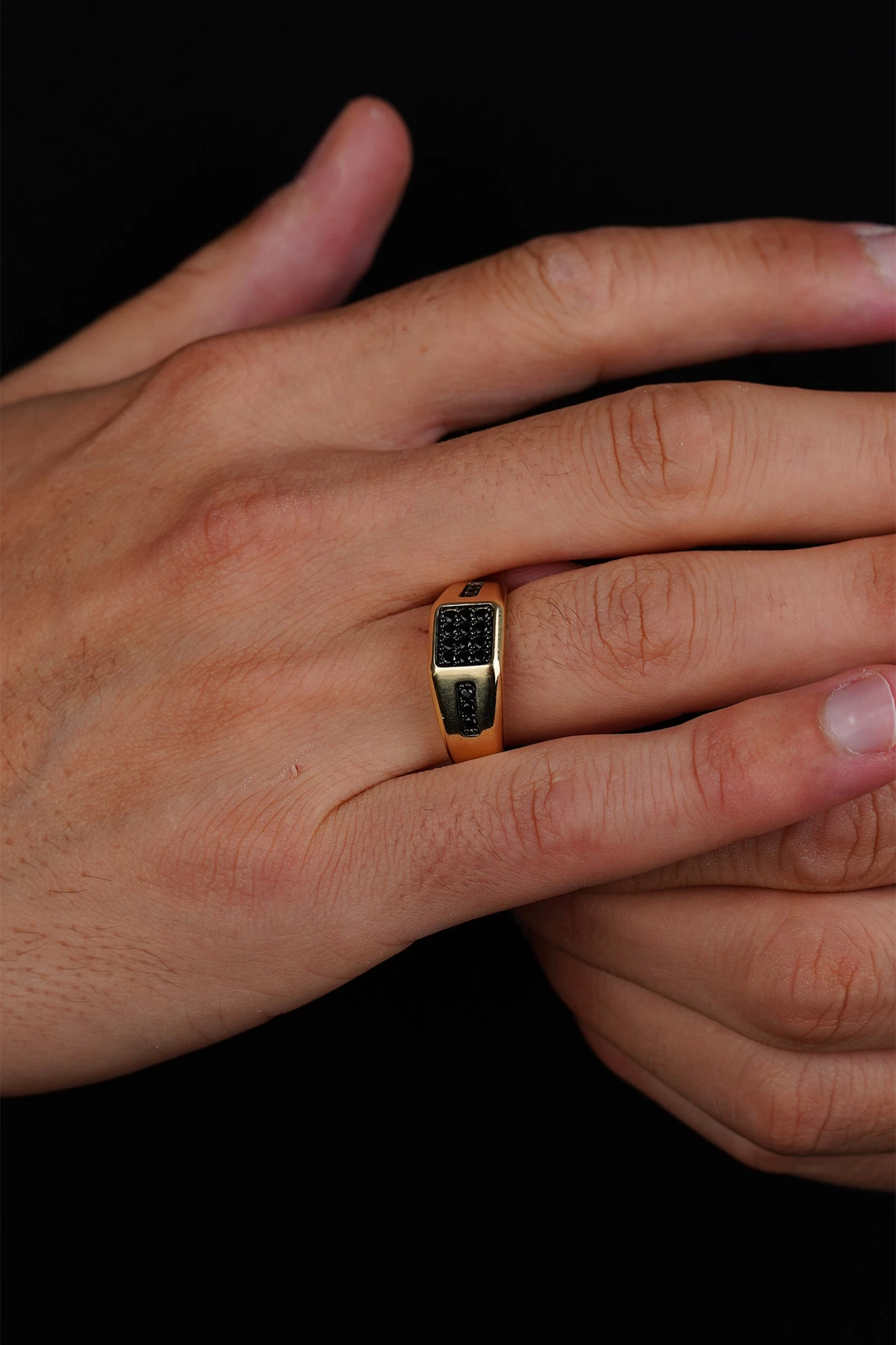 14 Ayar Altın Siyah Taşlı Erkek Yüzük 621