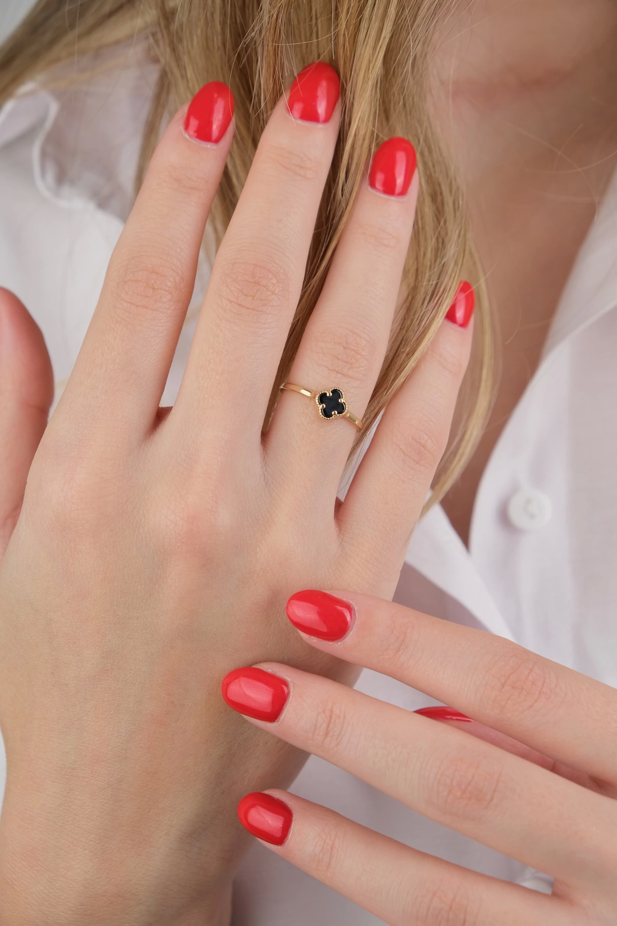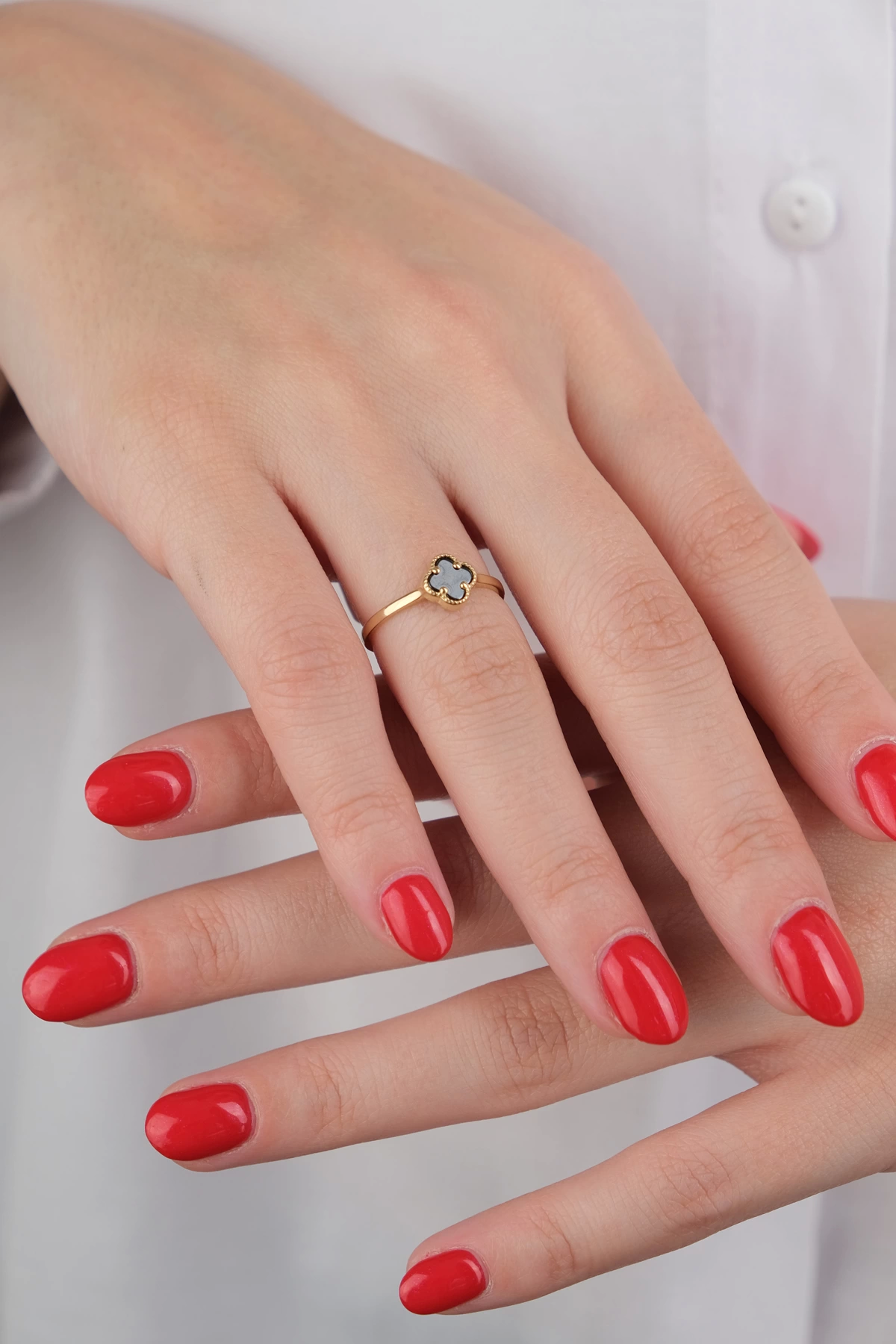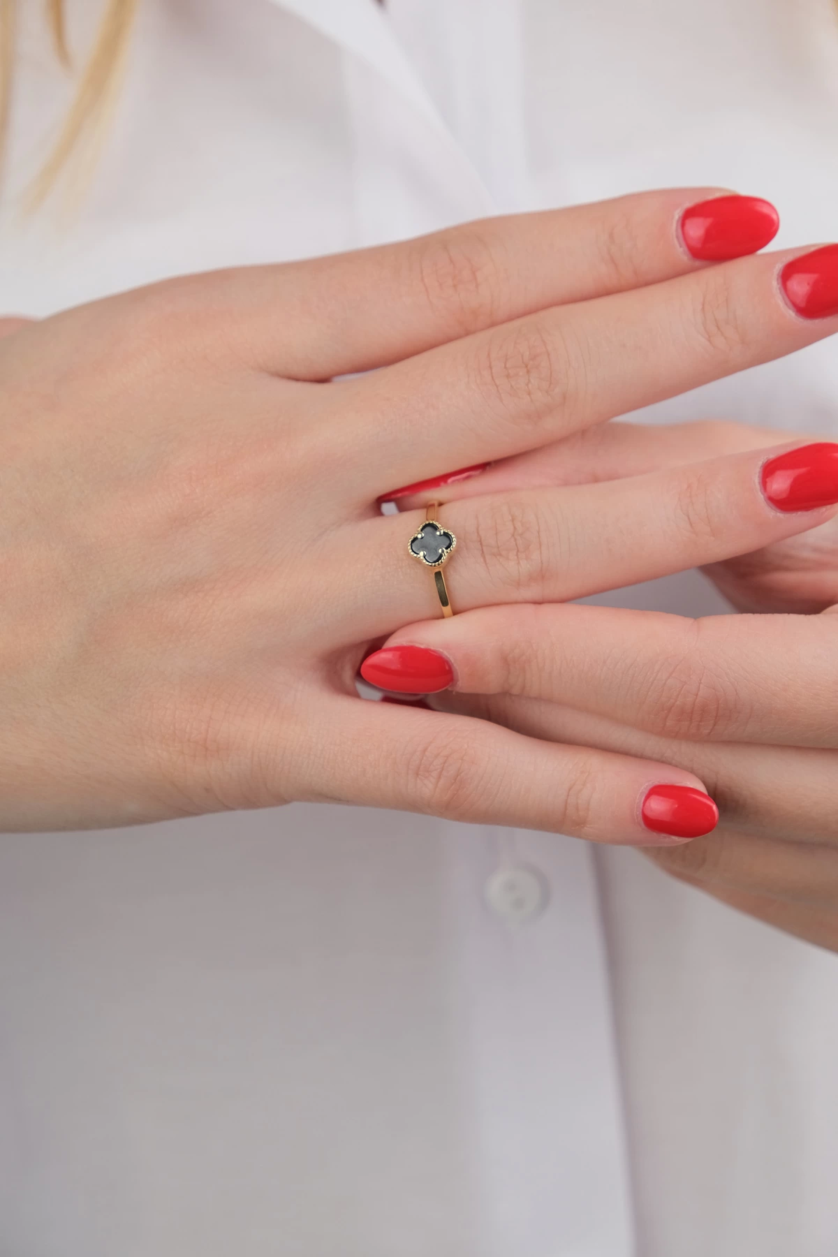 14 Ayar Altın Siyah Yonca Yüzük 687