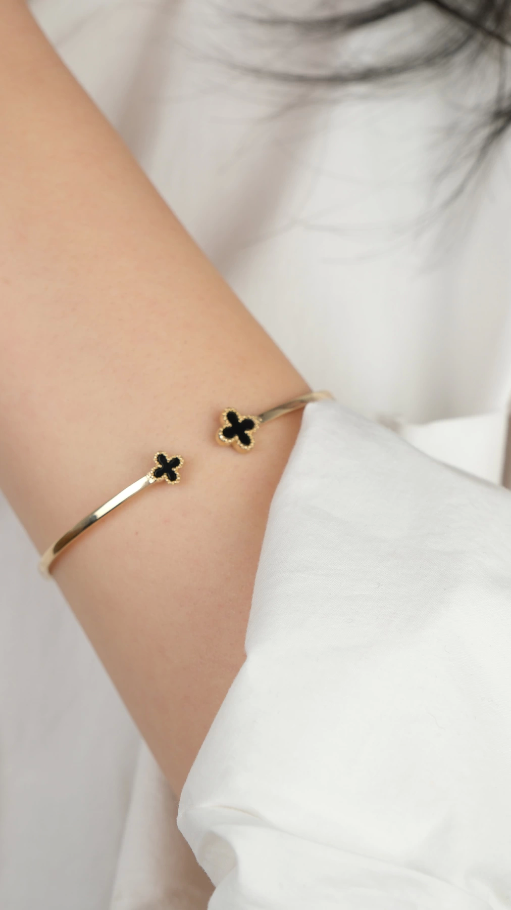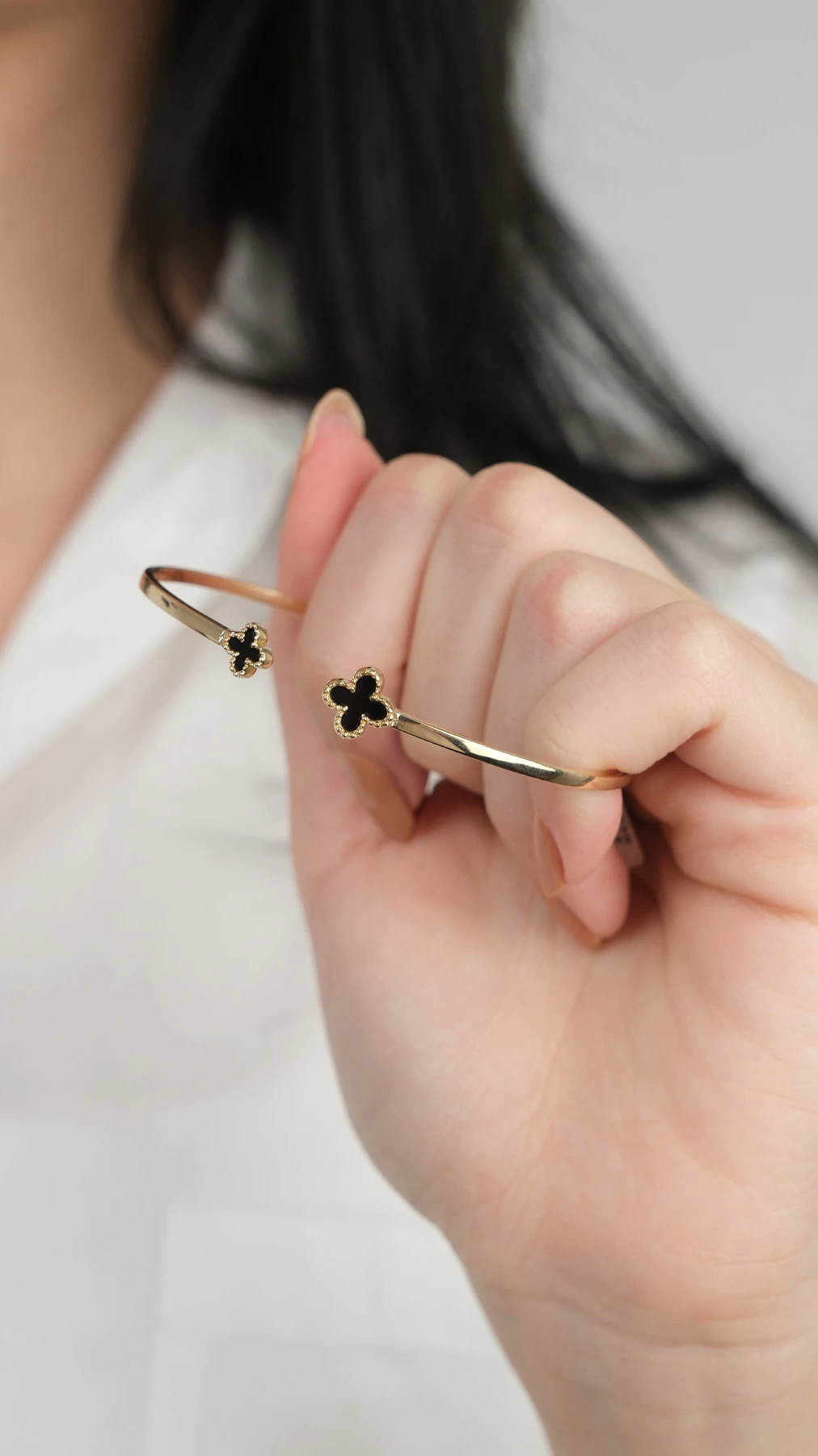 14 Ayar Altın Siyah Yoncalı Kelepçe