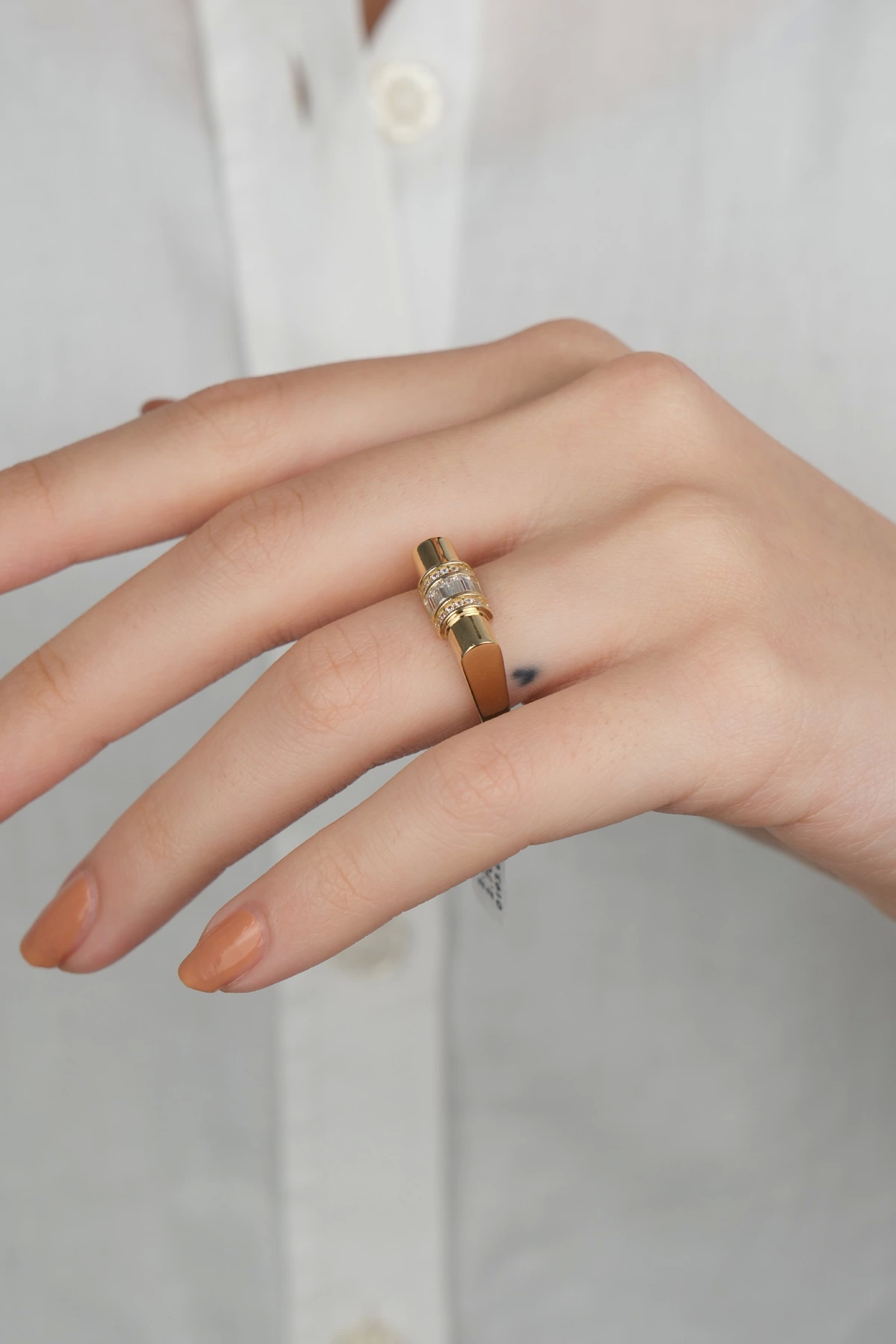 14 Ayar Altın Taş Detaylı Tasarım Yüzük 903