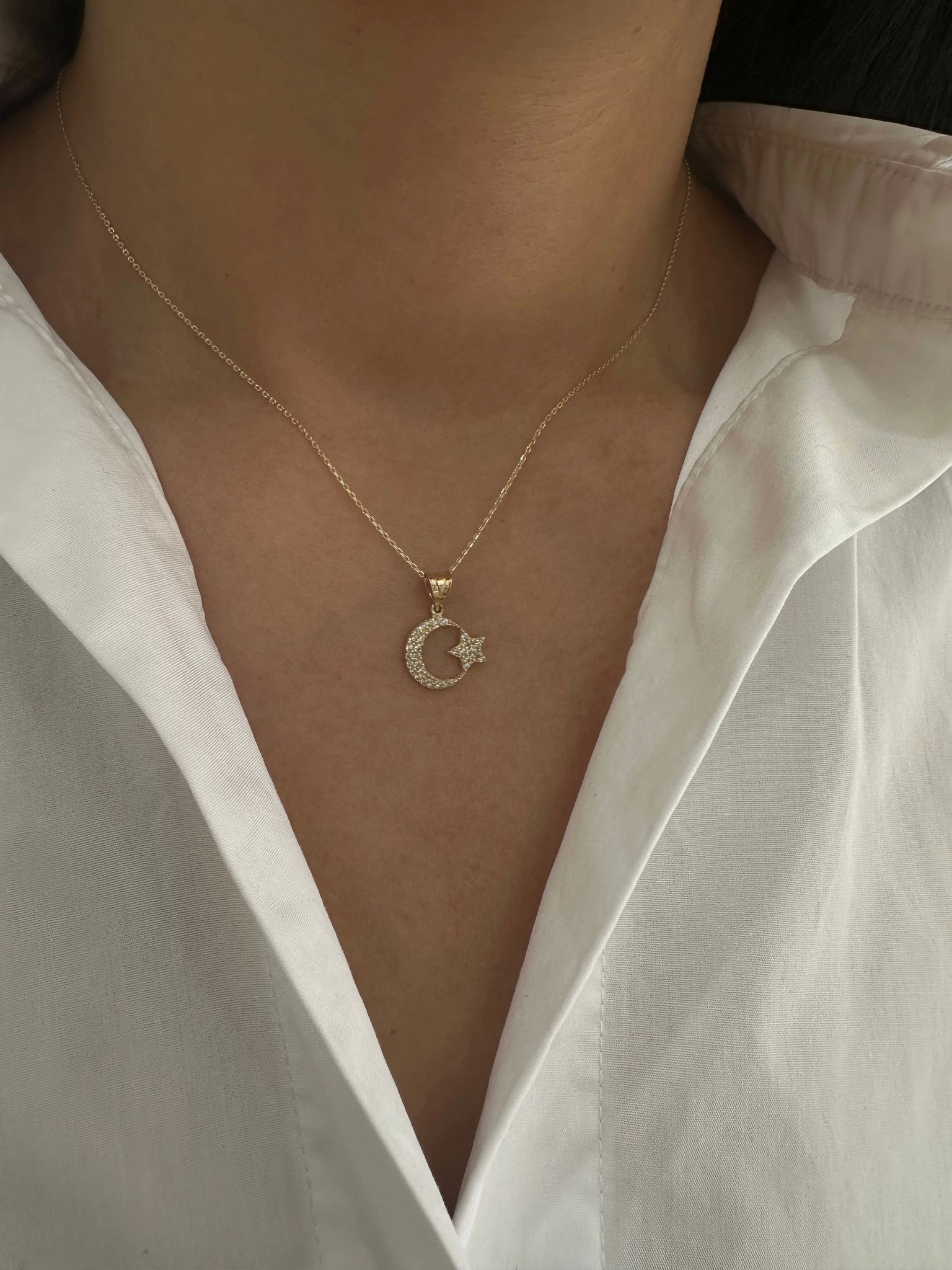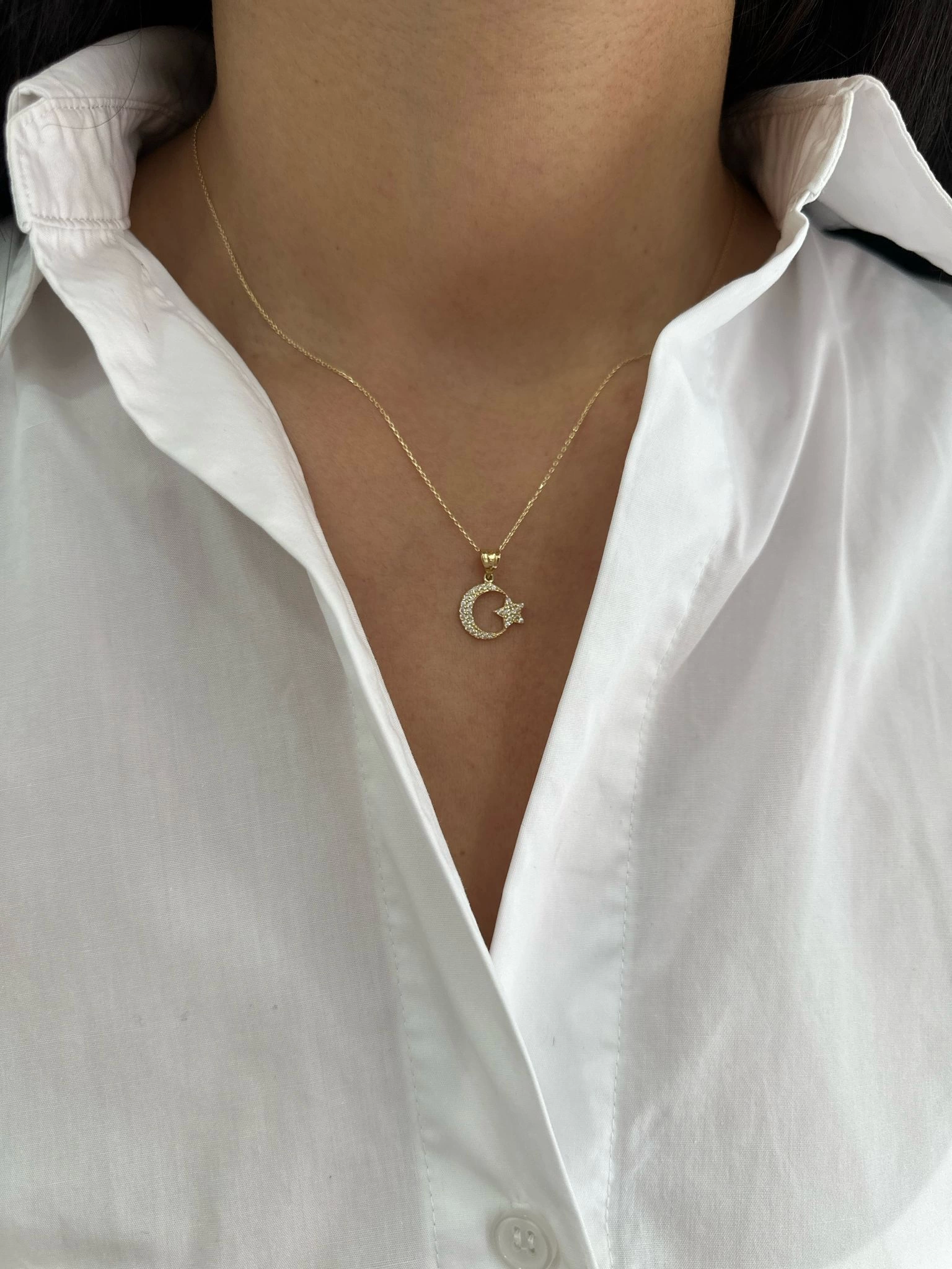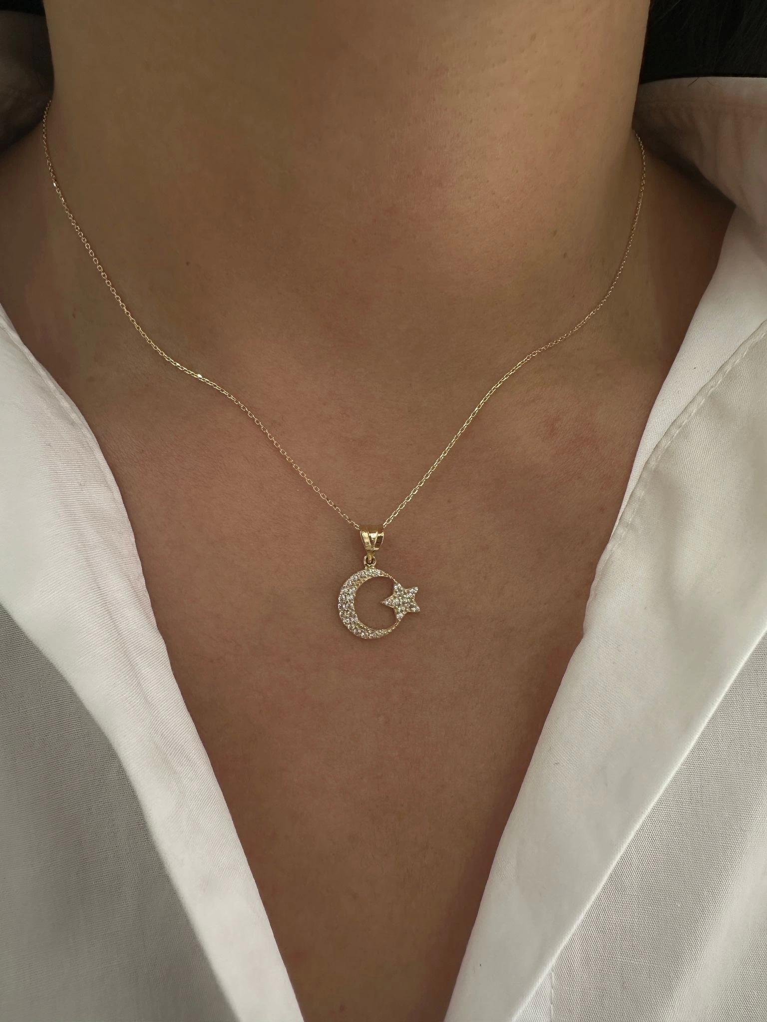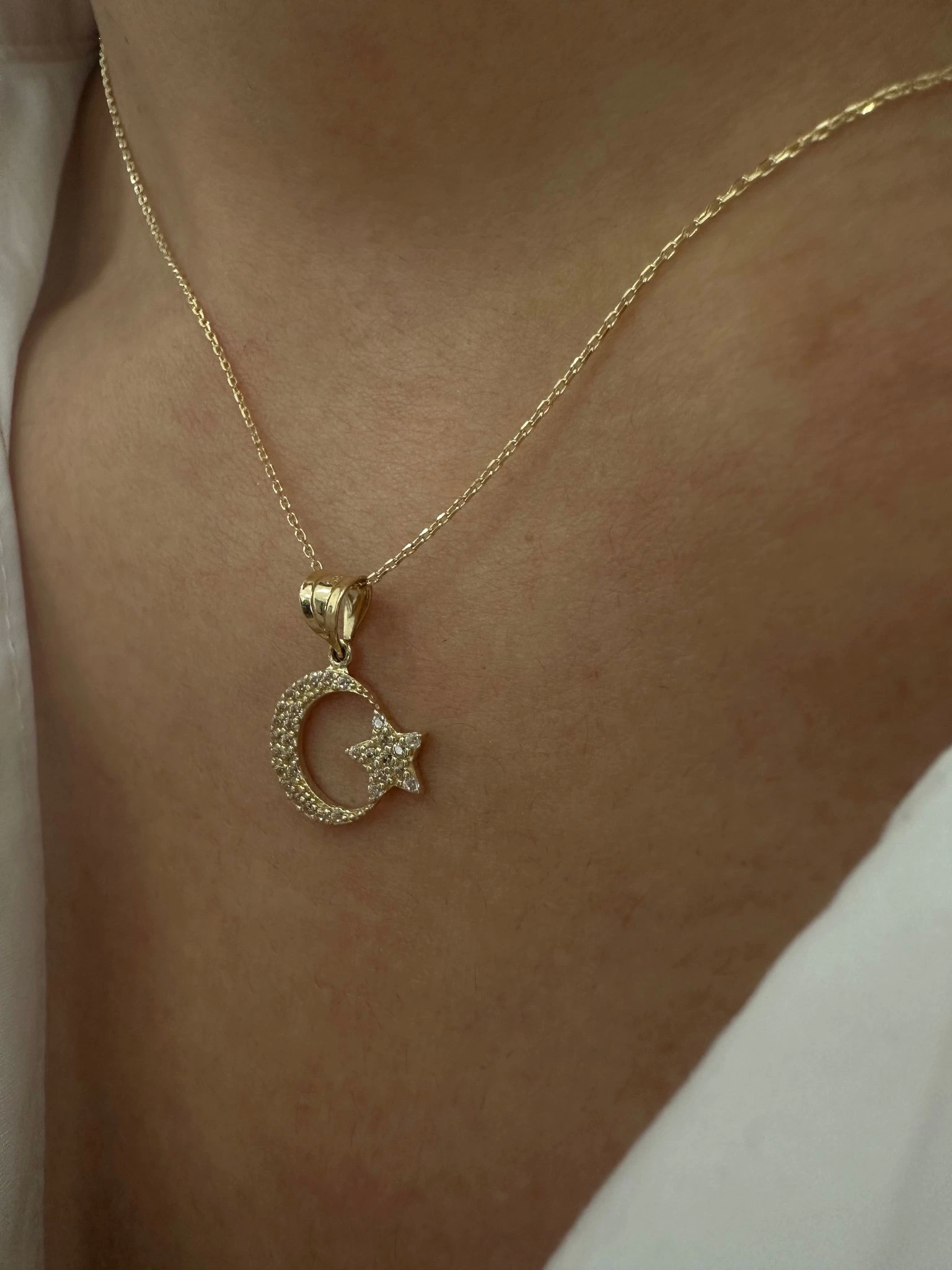 14 Ayar Altın Ay Yıldızlı Kolye Ucu 507