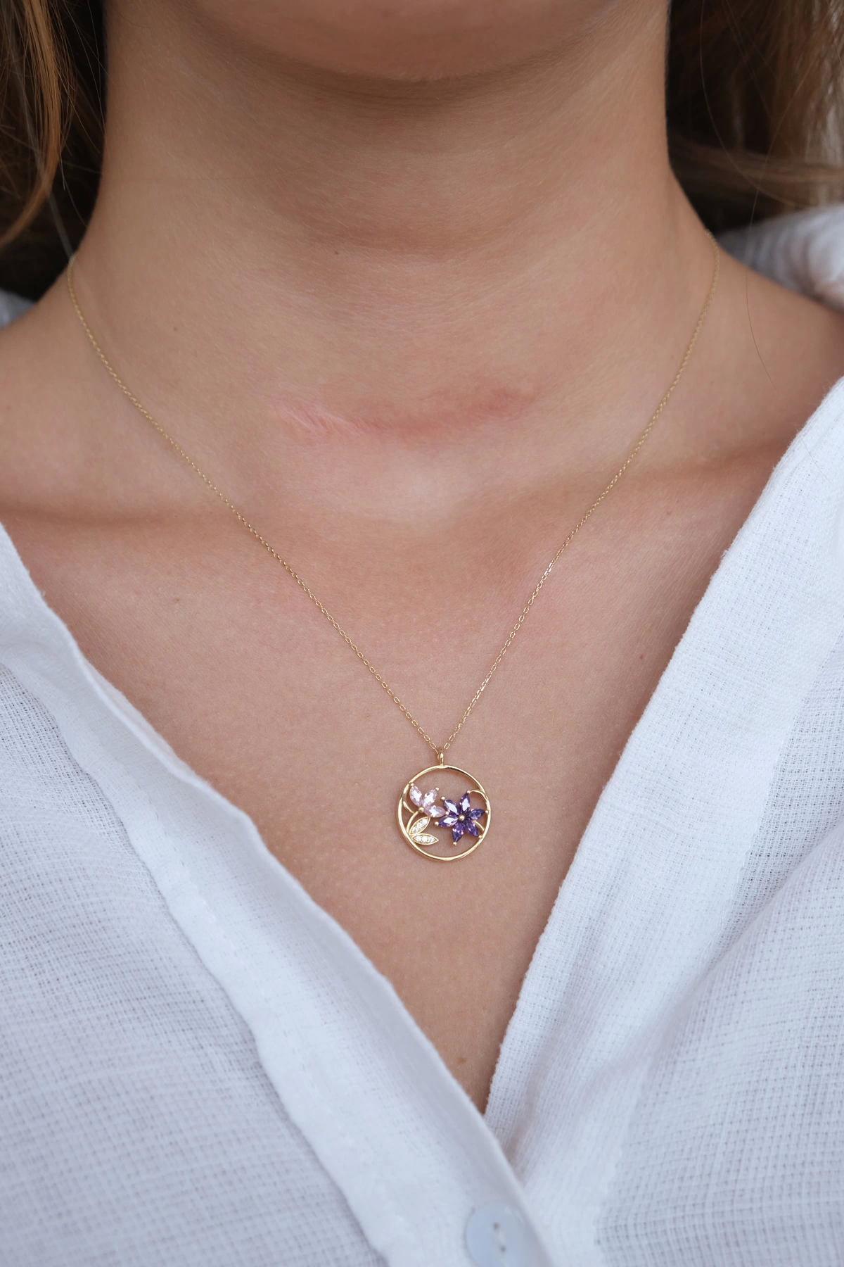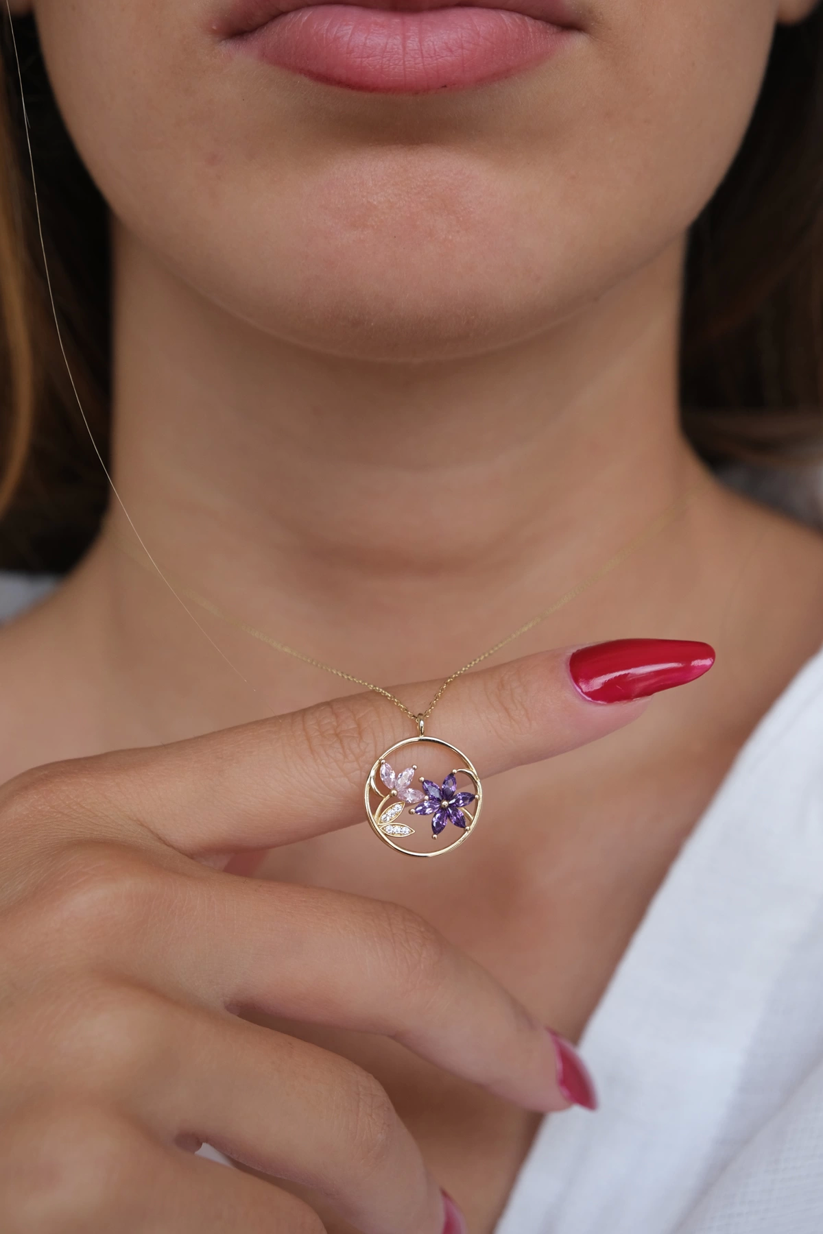 14 Ayar Altın Taşlı Çiçek Kolye 440