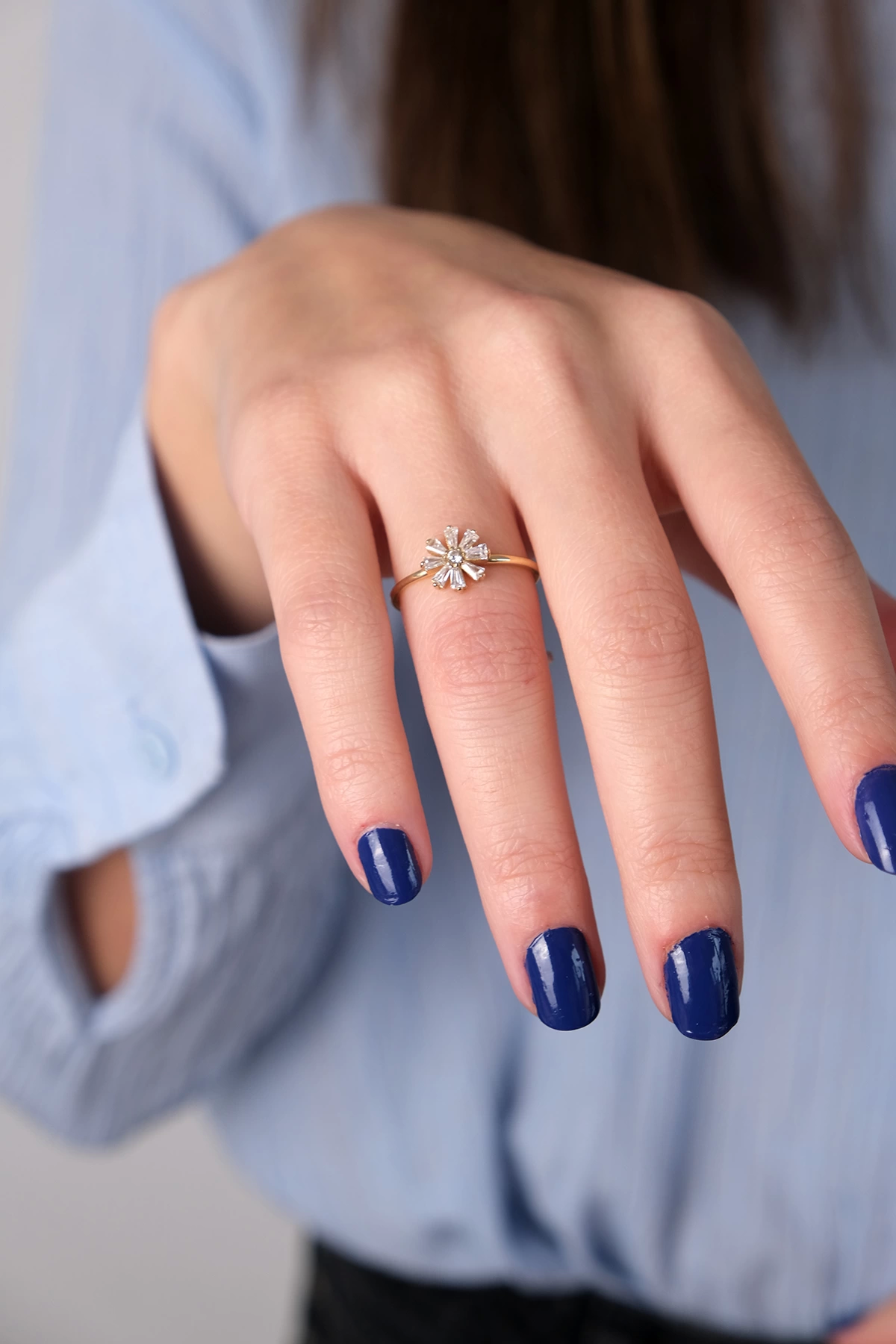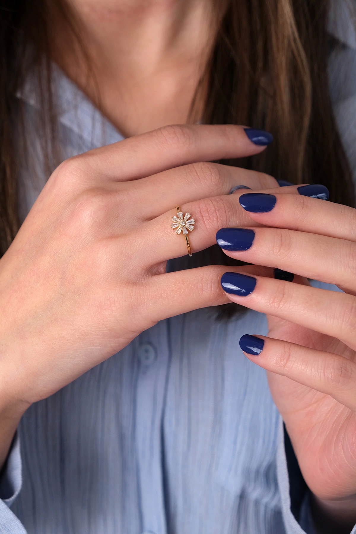 14 Ayar Altın Taşlı Çiçek Yüzük 242